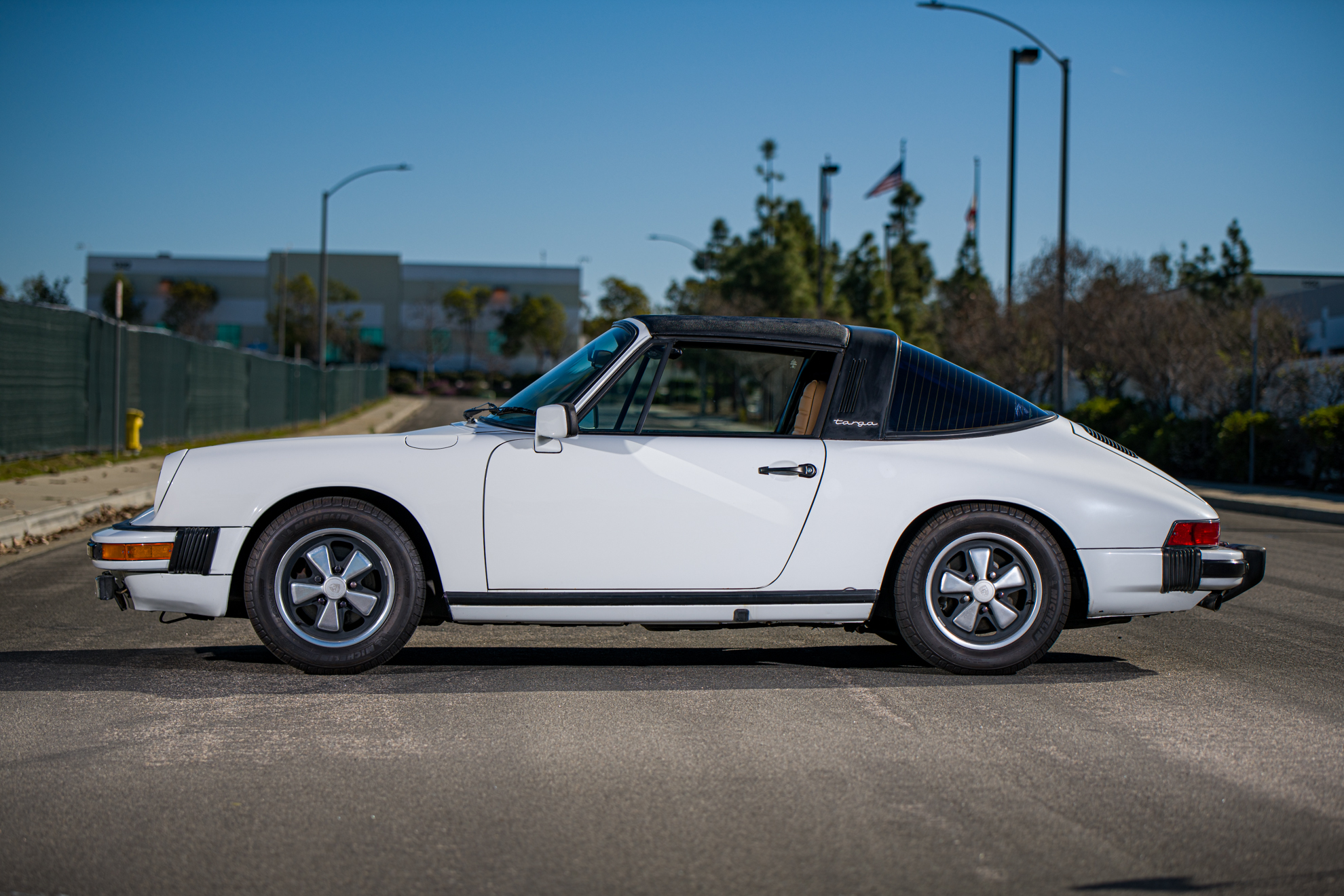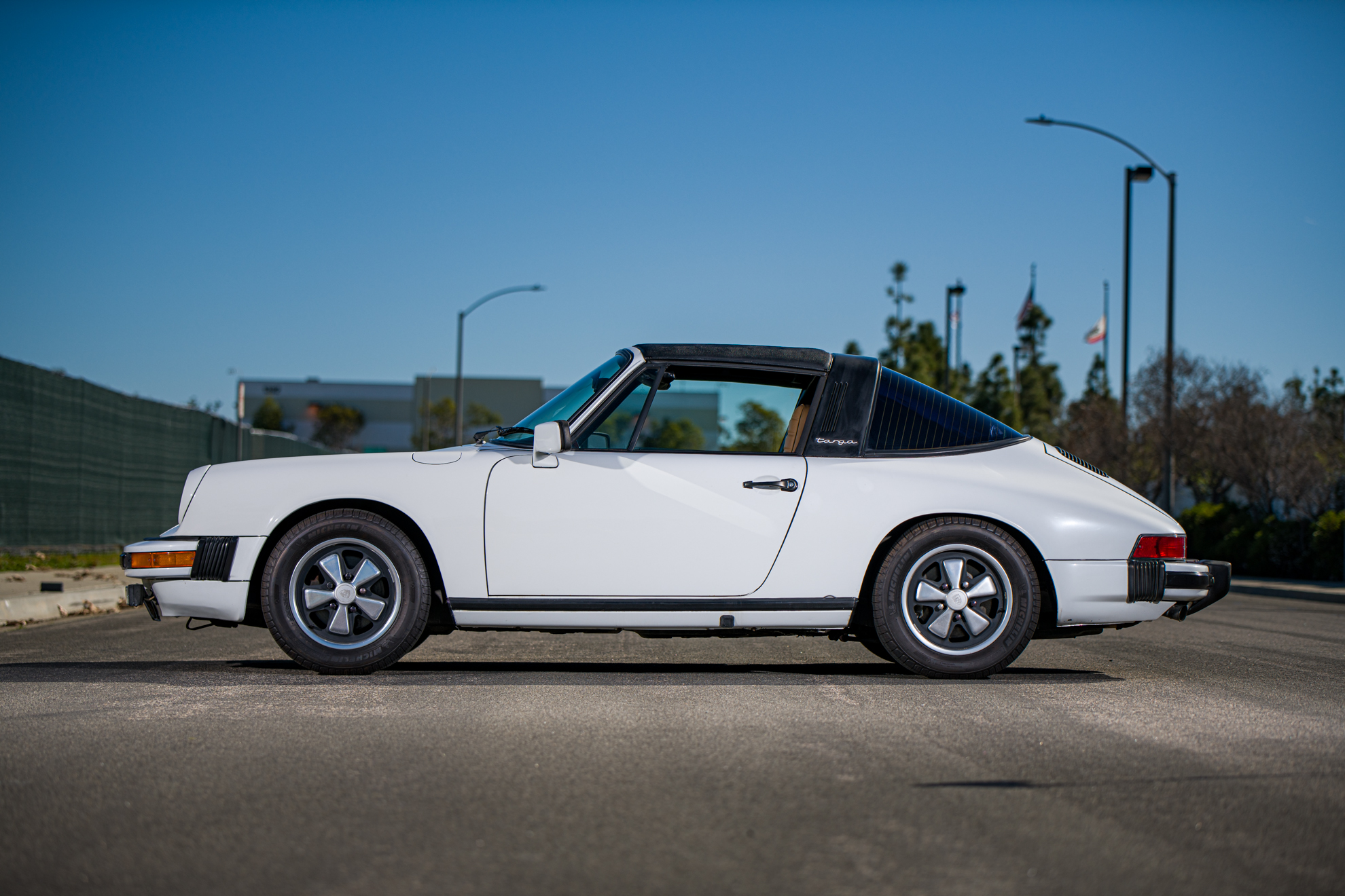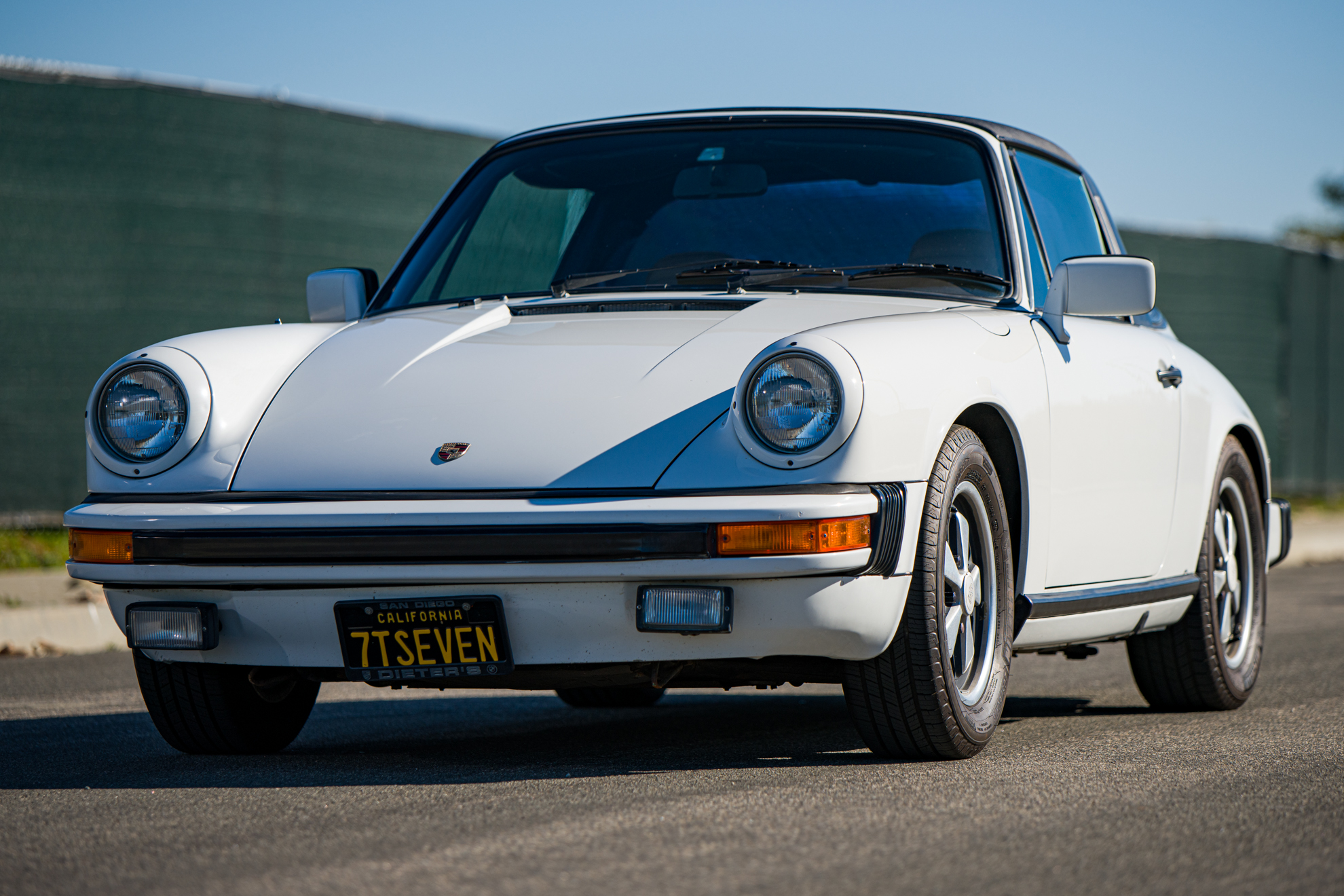15″ Fuchs wheels were fitted with Michelin Defender tires measuring 205/60 in 2018. The collapsible targa panel received a replacement headliner and side seals in 2006 and is shown removed from the car in the image gallery.
