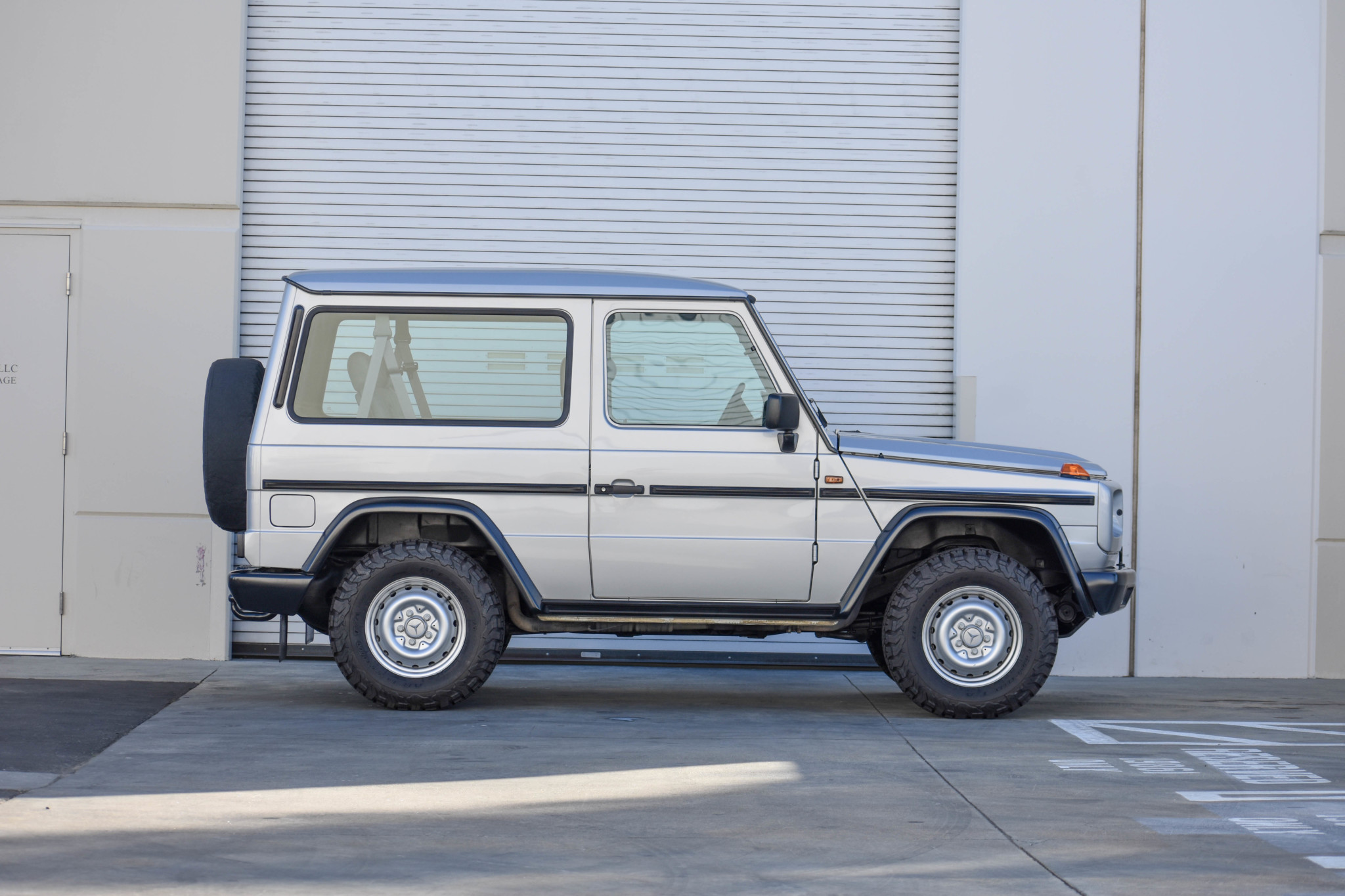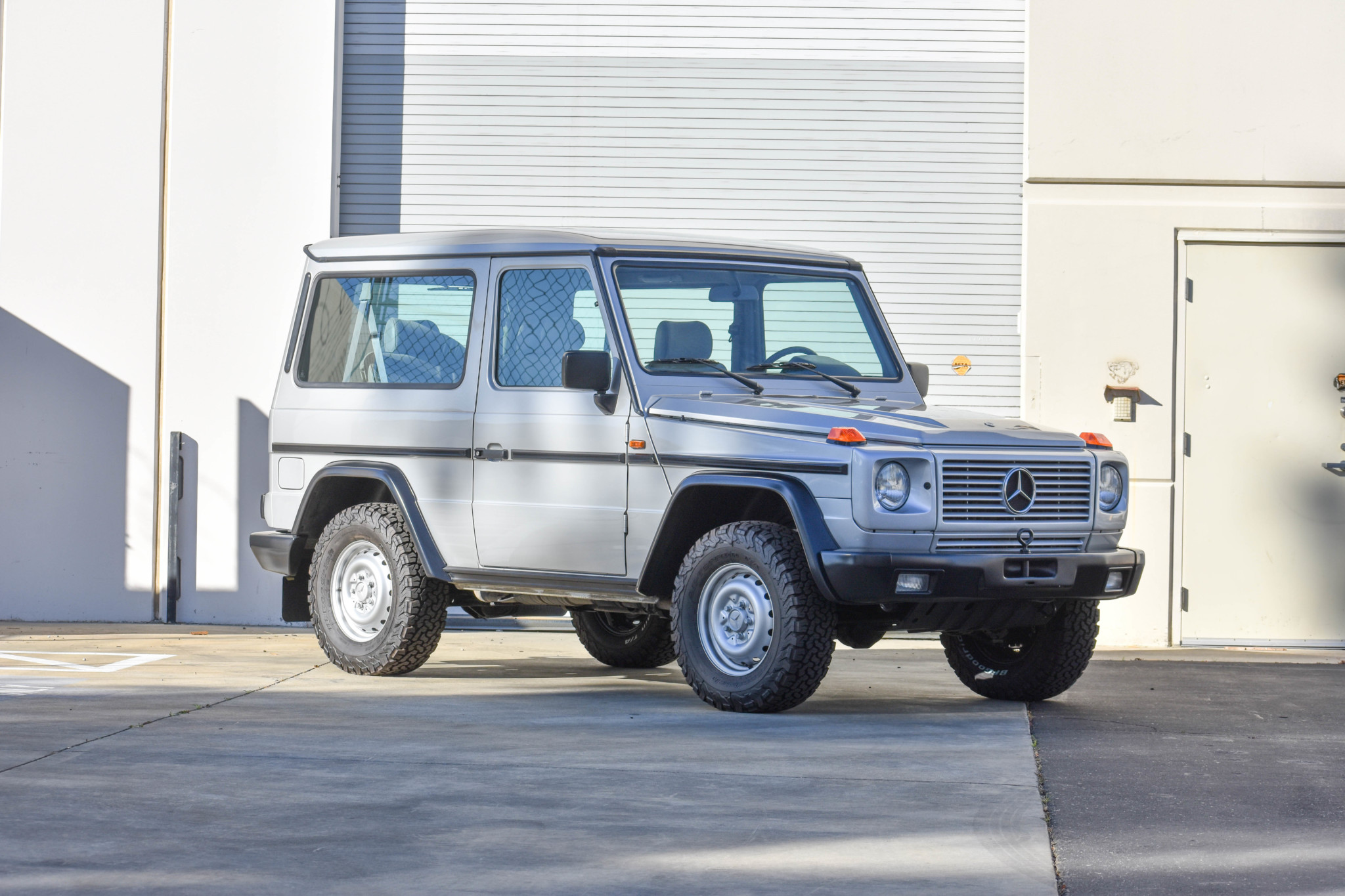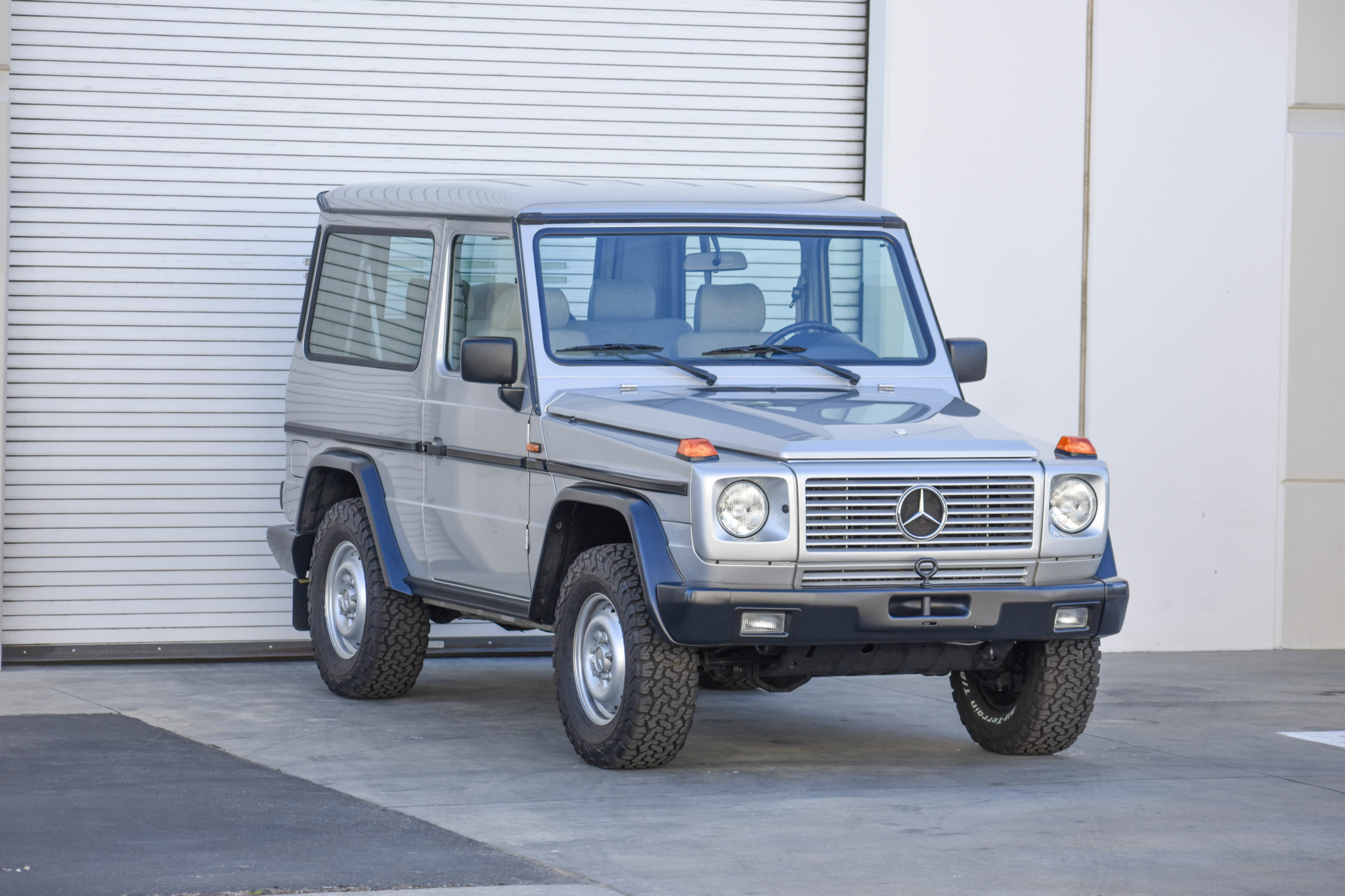 The owner sourced a set of factory 16″ steel wheels with Mercedes center caps and lug bolts through the Mercedes-Benz Classic Center and mounted a set of BF Goodrich All-Terrain T/A tires measuring 255/70. A set of later-model 18″ wheels are included along with a second set of new, un-mounted factory alloy wheels.