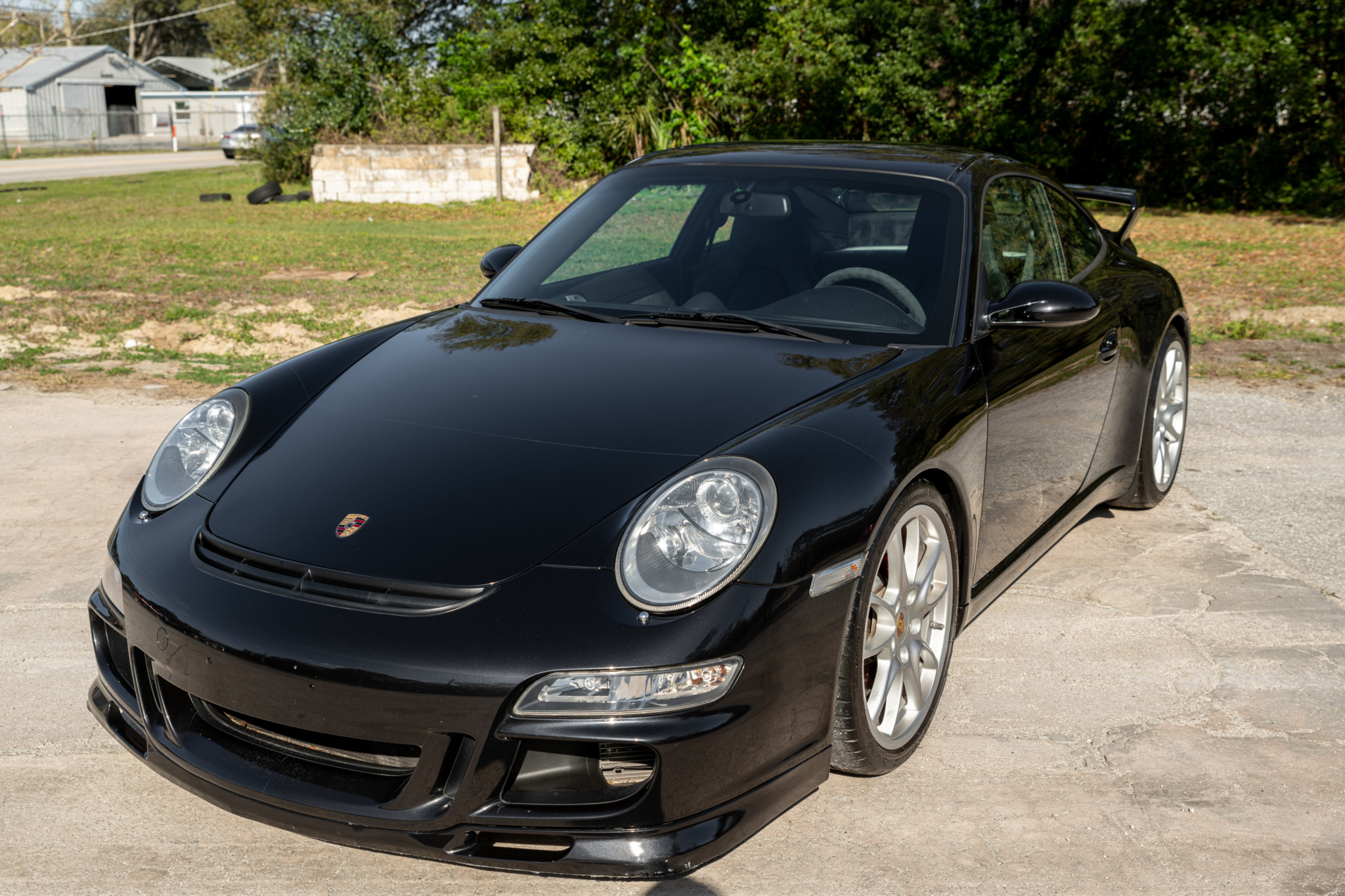 Silver 19” alloy wheels wear Michelin Pilot Sport Cup 2 tires measuring 235/35 up front and 305/30 at the rear. Standard equipment includes Porsche Active Suspension Management (PASM), traction control, red six- and four-piston calipers paired with cross-drilled rotors, and tire pressure monitoring. The seller dealer notes the rear tires are in need of replacement.