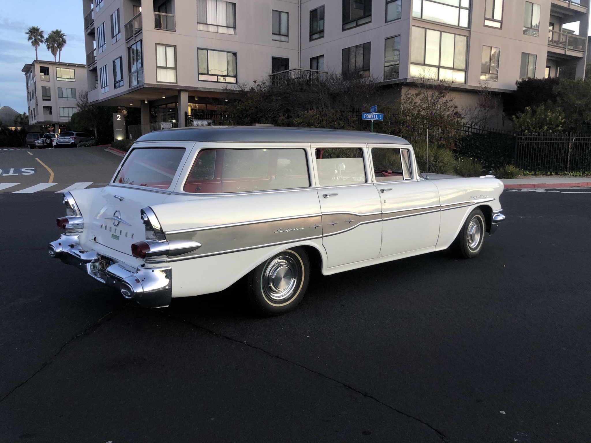 Steel wheels are fitted with factory covers and Hercules MRX whitewall tires installed under prior ownership.