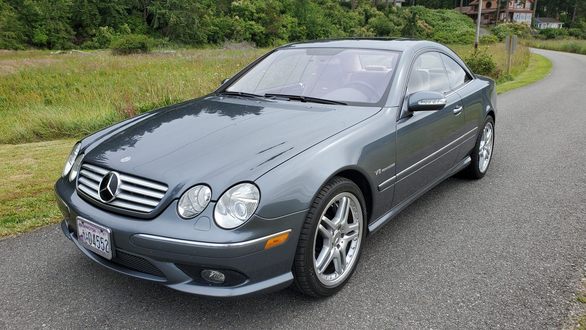 Staggered-width 19″ AMG wheels wear Michelin Pilot Sport A/S 3+ tires with 2016 date codes. The seller notes curb rash on the driver-side wheels. Additional equipment includes xenon headlamps with washers, fog lights, heated windshield washers, and parking sensors. Footage of the automatic trunk in operation is linked, and automatic windows can be seen here.