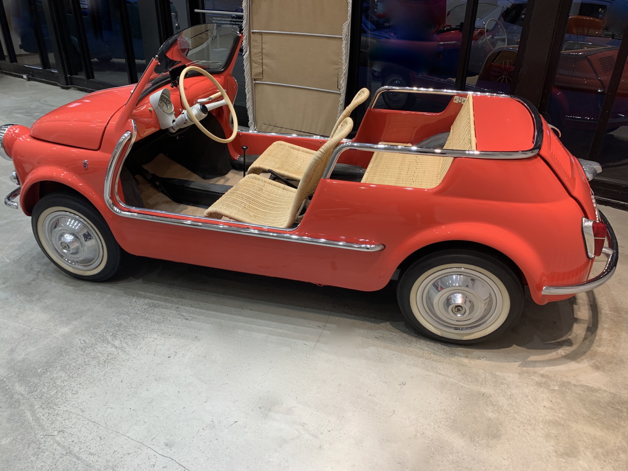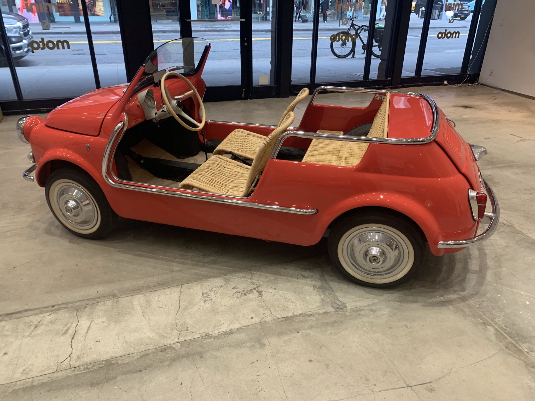 The seller replaced the prior green surrey top with a tan surrey top featuring white fringe trim, and the car is fitted with a set of slim chrome bumpers. Steel wheels are mounted with full covers and whitewall tires. The brakes were reportedly overhauled after the current engine was installed, and the windshield wiper assembly has been replaced.