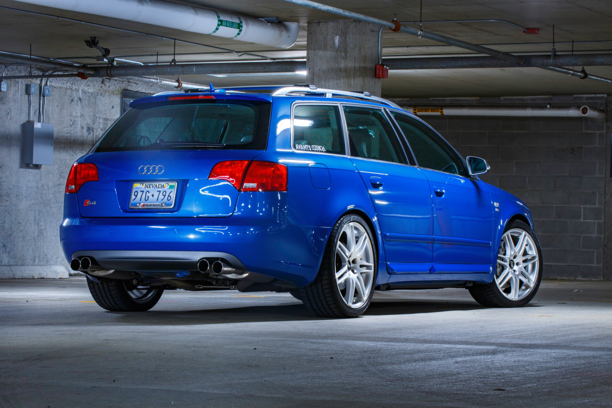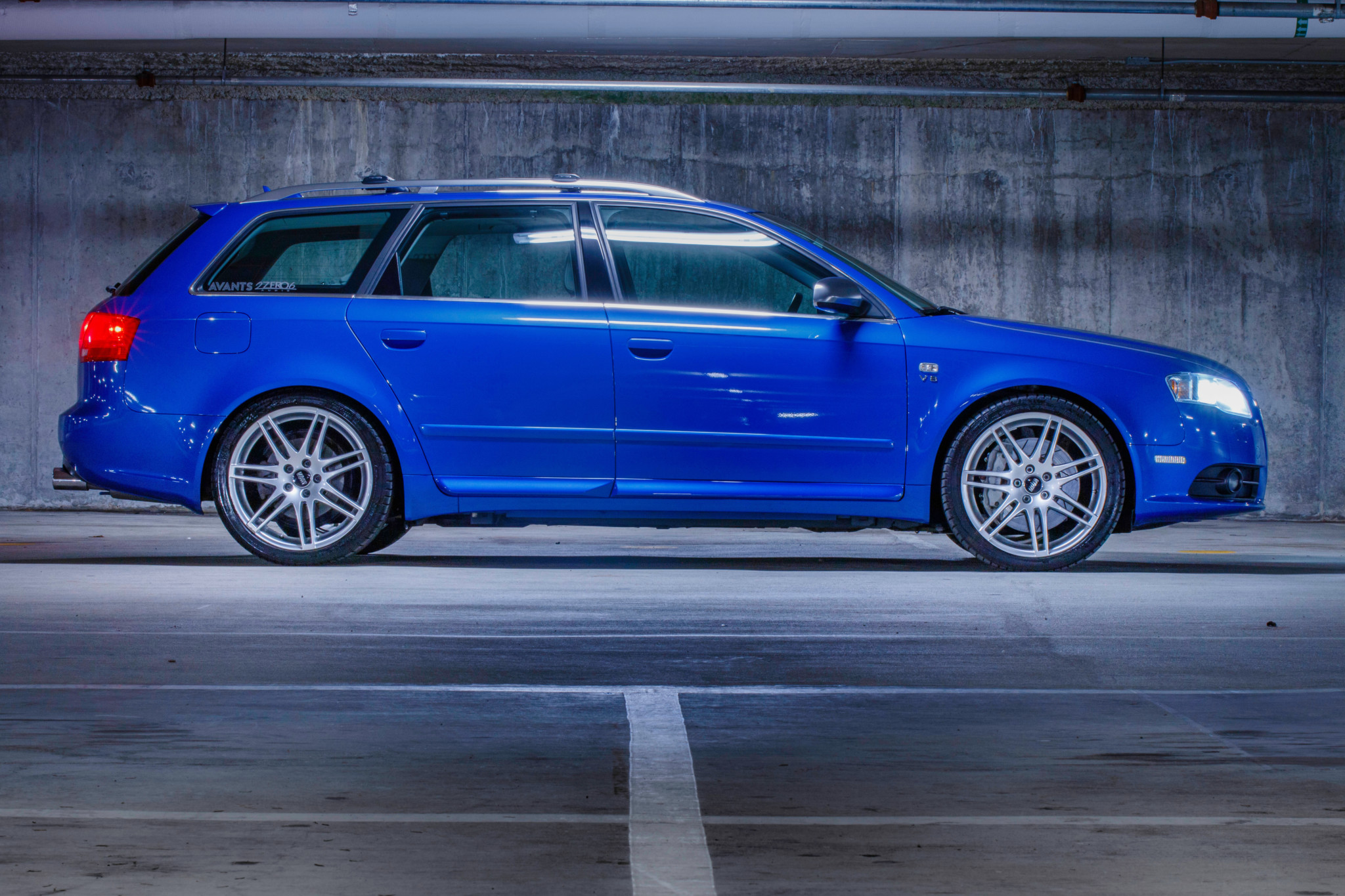 VMR 19″ alloy wheels are wrapped in 255/35 Michelin Pilot Sport A/S 3 tires that were mounted in September 2018. A wheel stud conversion kit has been installed, and the brake system has been upgraded with Brembo 18Z front calipers, slotted two-piece rotors from GiroDisc, and stainless steel lines. The seller installed new front control arms, inner tie rods and boots, front and rear subframe hardware, and RS4 jack pads.