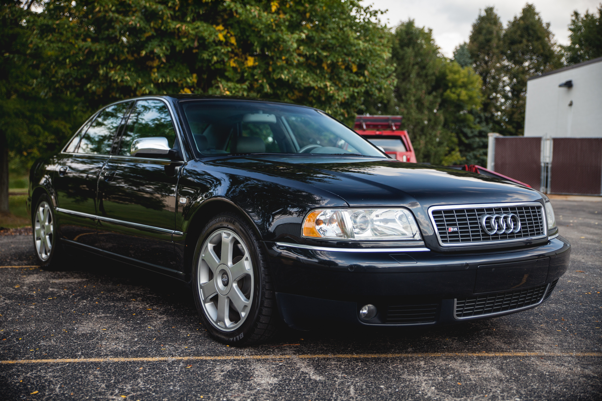 The aluminum monocoque rides on a 113.5″ wheelbase, and factory 18″ Avus alloy wheels have been retained. Bridgestone Blizzak tires are fitted, and a provided 2017 service invoice documents replacement of the brake rotors and pads at each corner.