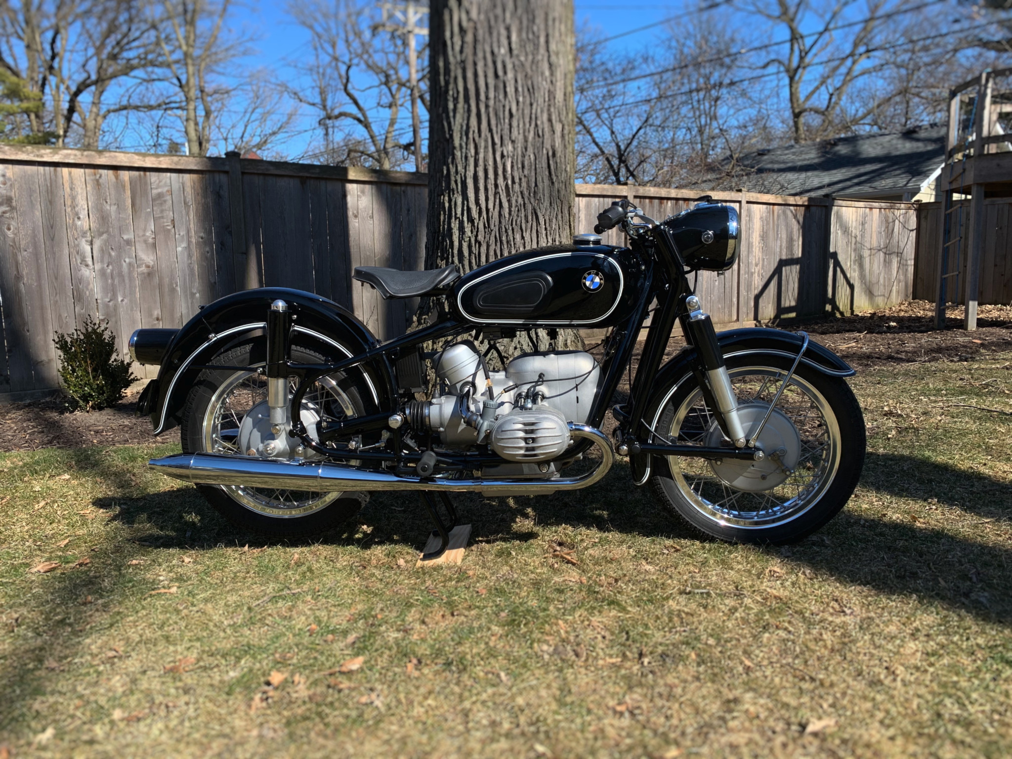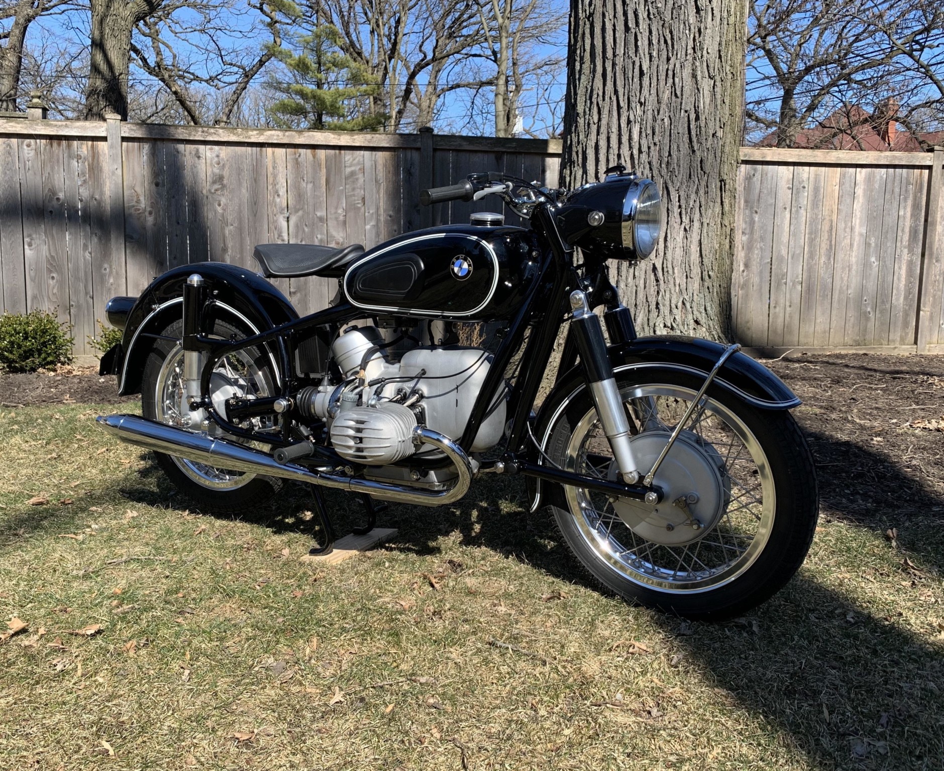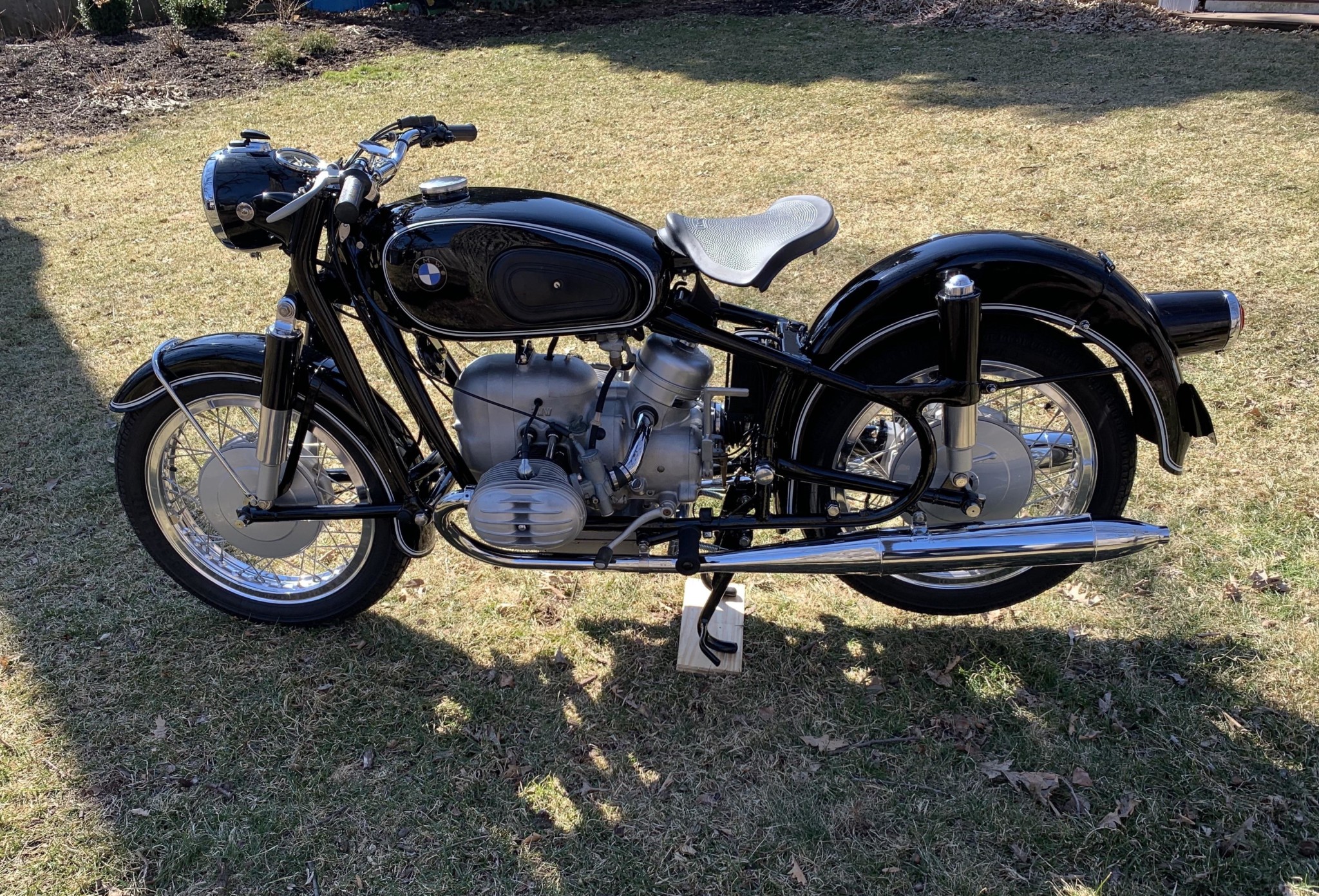 Braking is managed by reconditioned front and rear factory drums, which are laced to shouldered aluminum rims with stainless spokes. A set of Heidenau tires are currently installed.