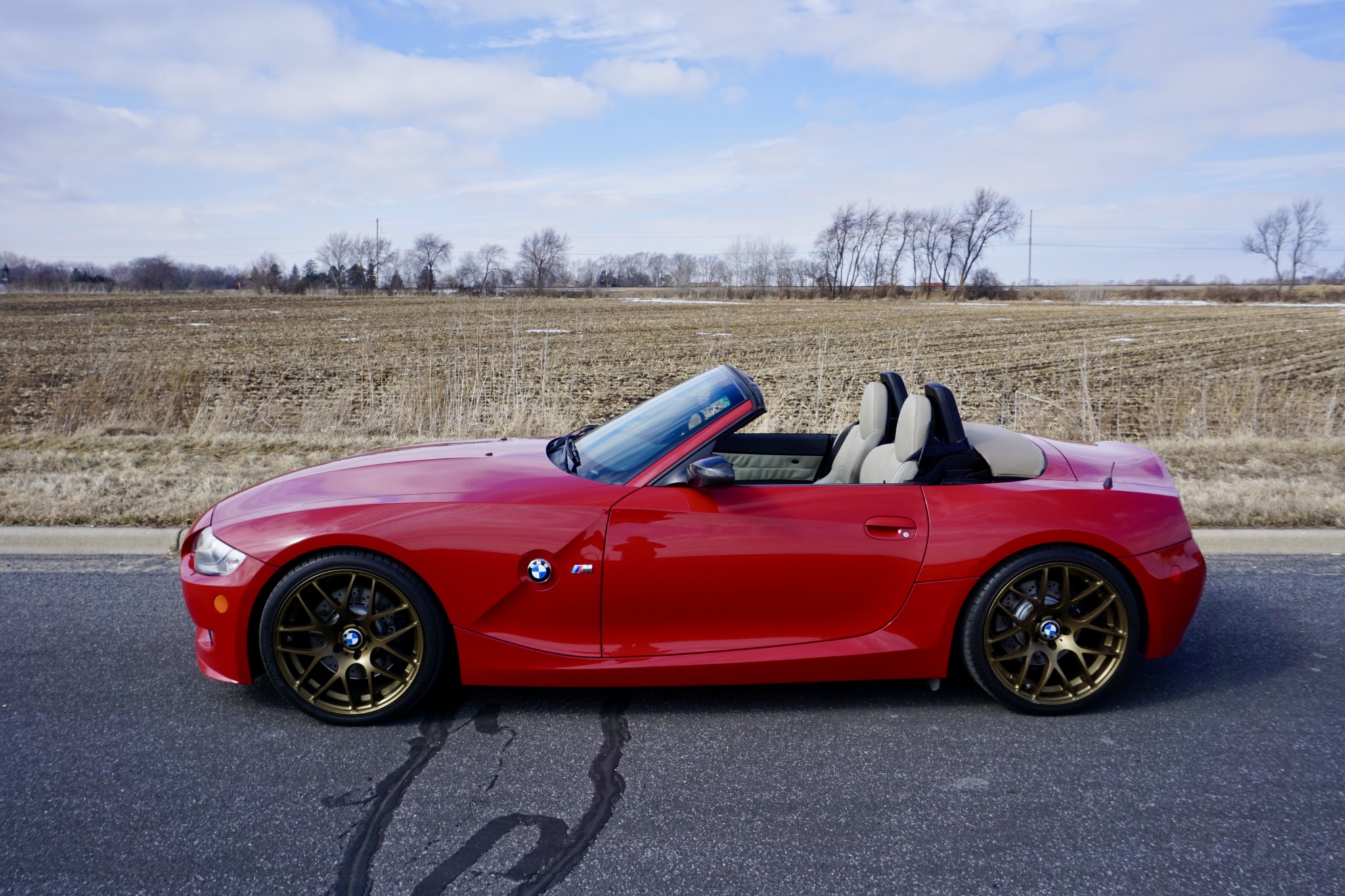 Competition-style 19″ wheels are finished in bronze and wrapped in Hankook Ventus V12 evo2 tires. Cross-drilled brake rotors came standard on the Z4M, and a brake fluid flush and alignment were performed by BMW of College Station, Texas in May 2019.