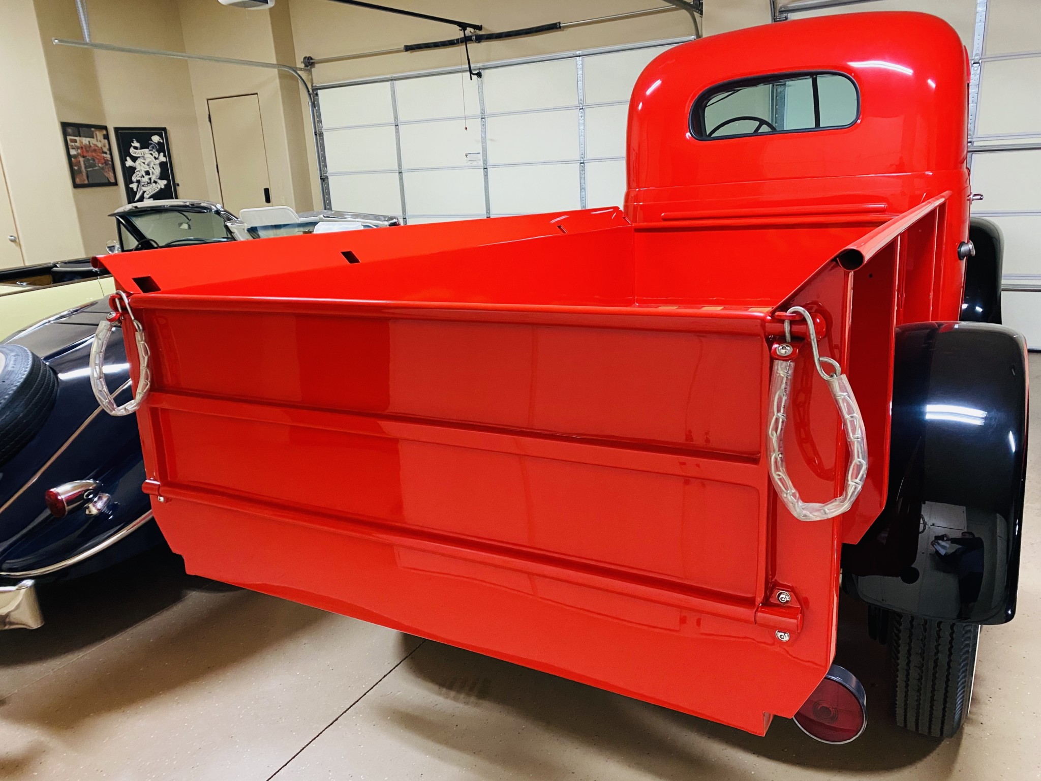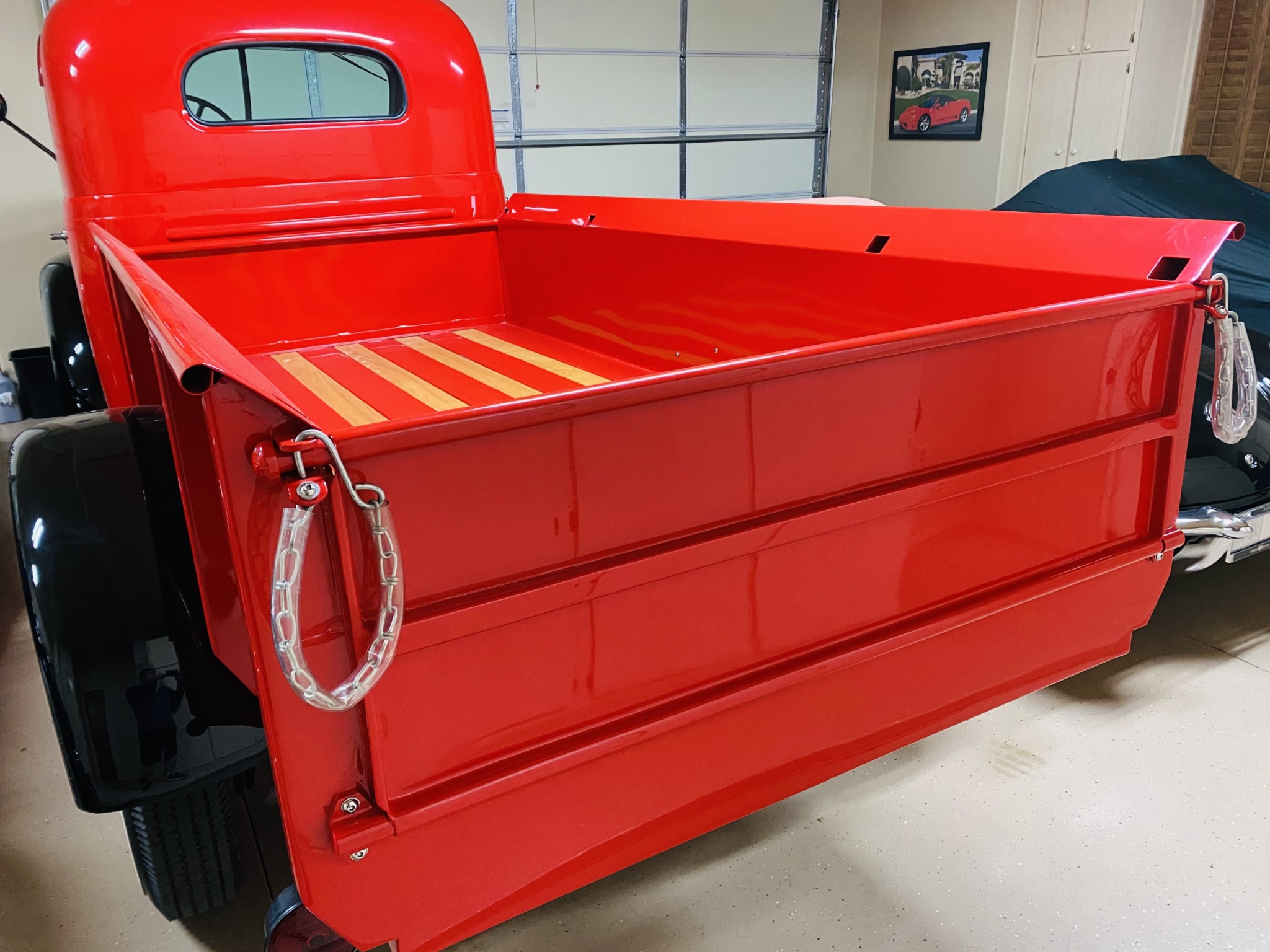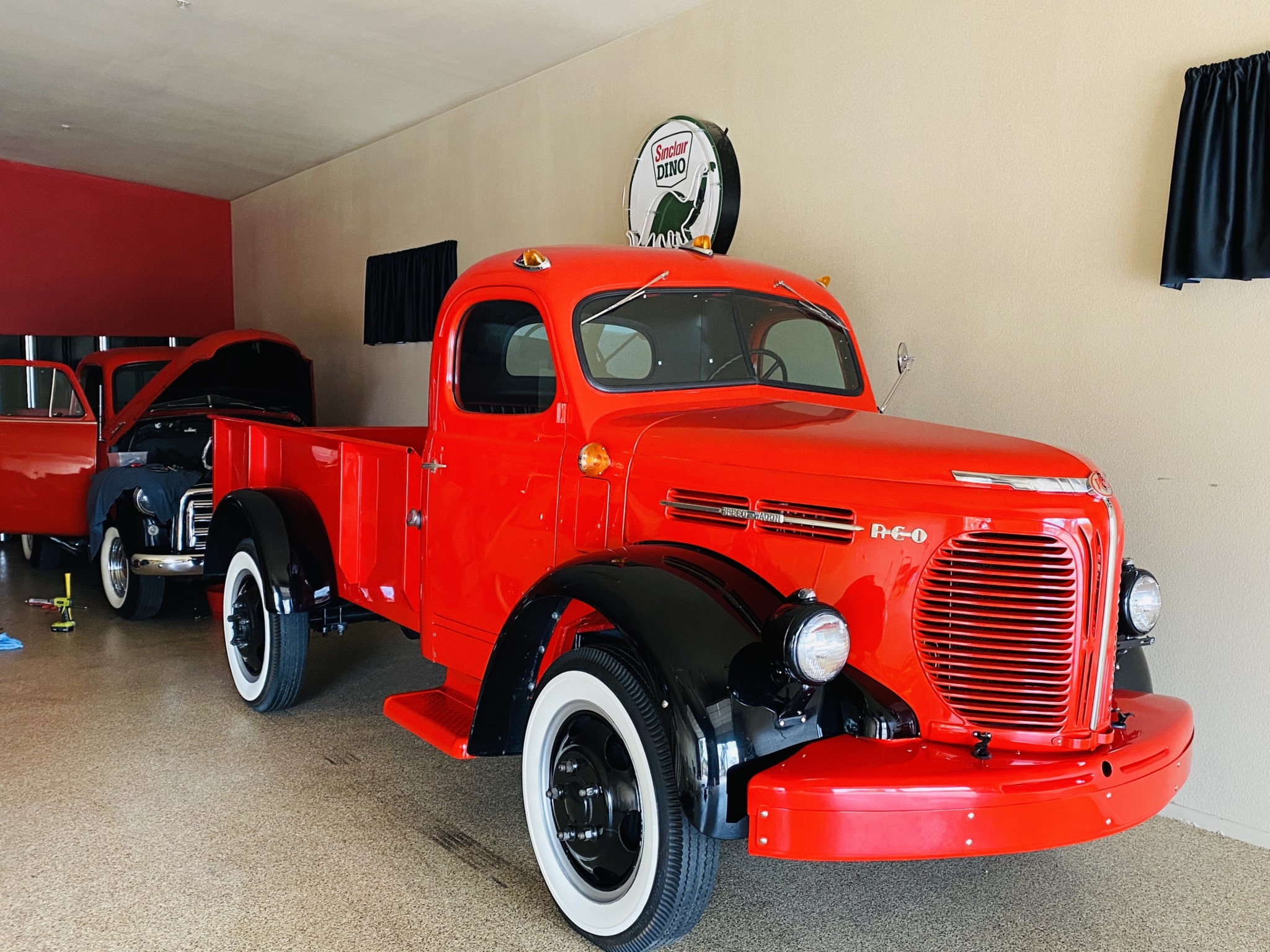 Black-painted five-lug 20″ steel wheels are mounted with BFGoodrich Silvertown wide whitewall tires, and one of the wheels shows a “12 48” stamping.