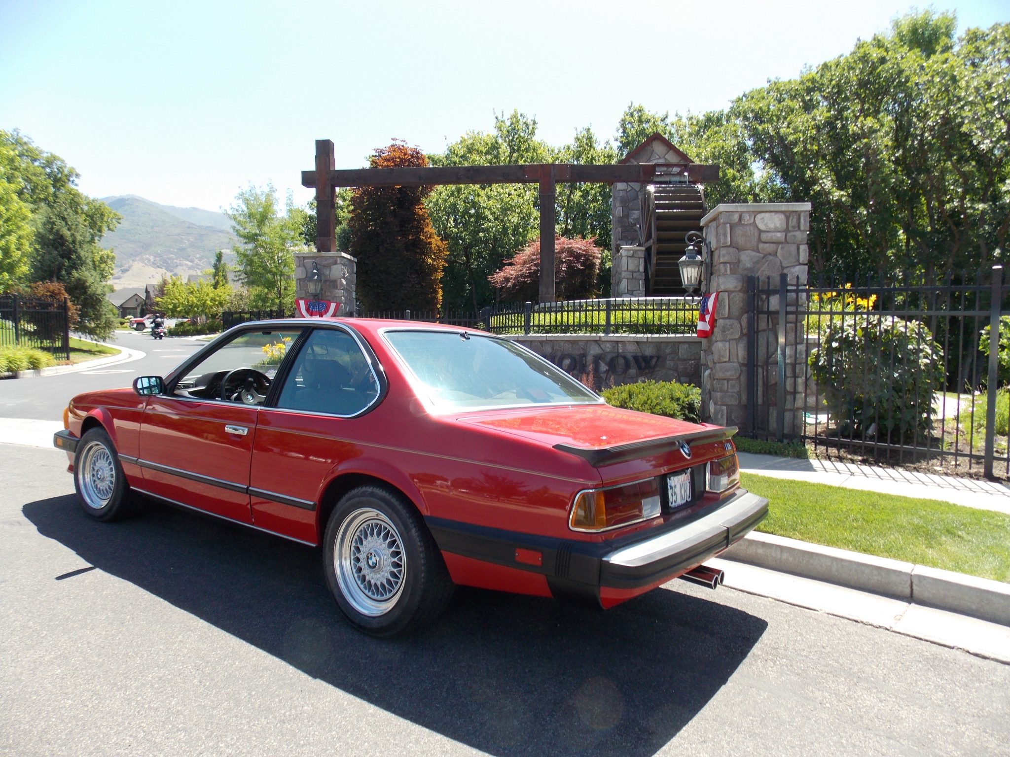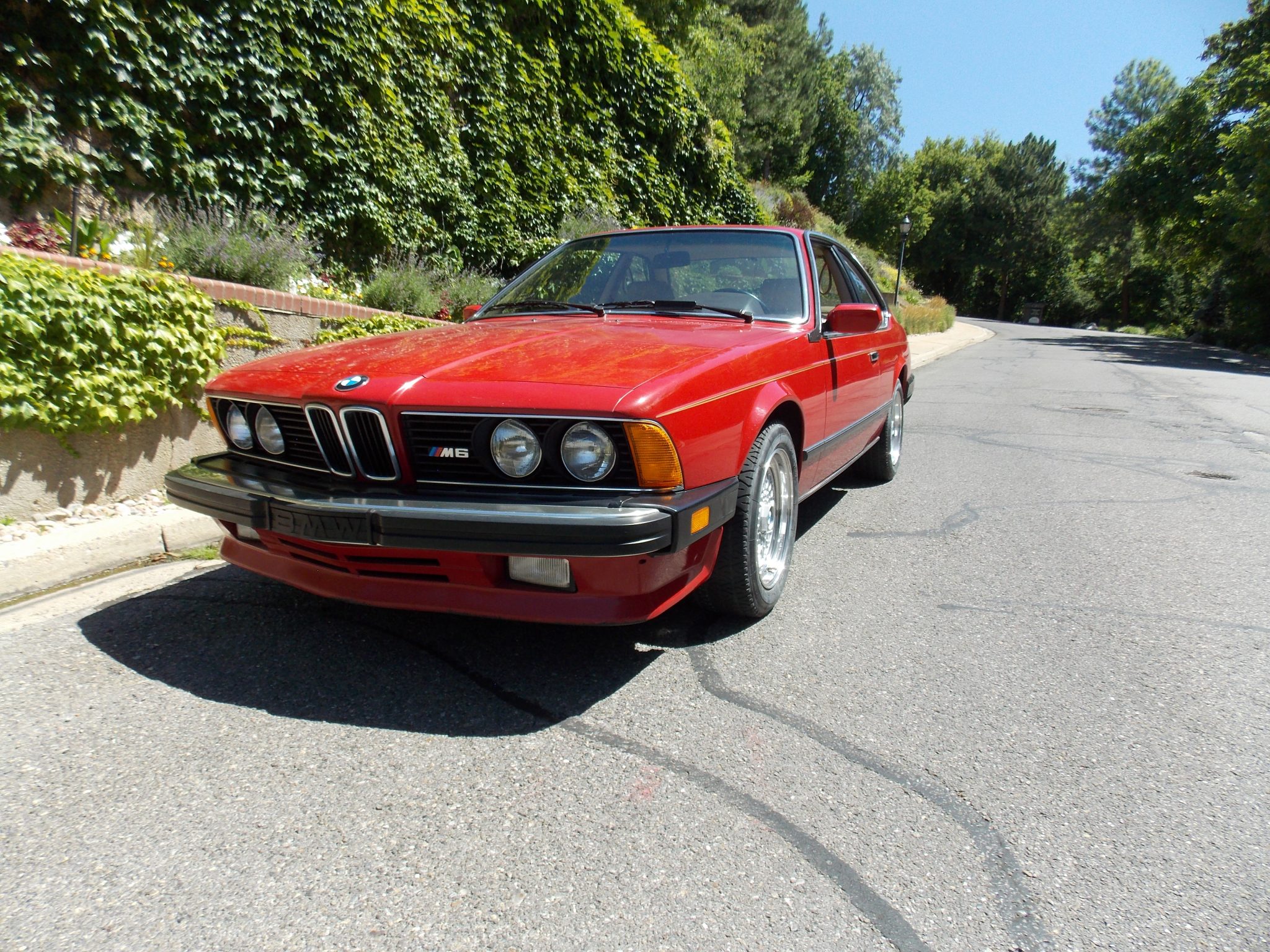 Factory 415mm cross-spoke wheels wear BMW center caps as well as 240/45 Michelin Radial X tires. The M6 features a lower ride height compared with the standard E24. In November 2018 the brake calipers were rebuilt, the rotors and pads were replaced, and the suspension was serviced.