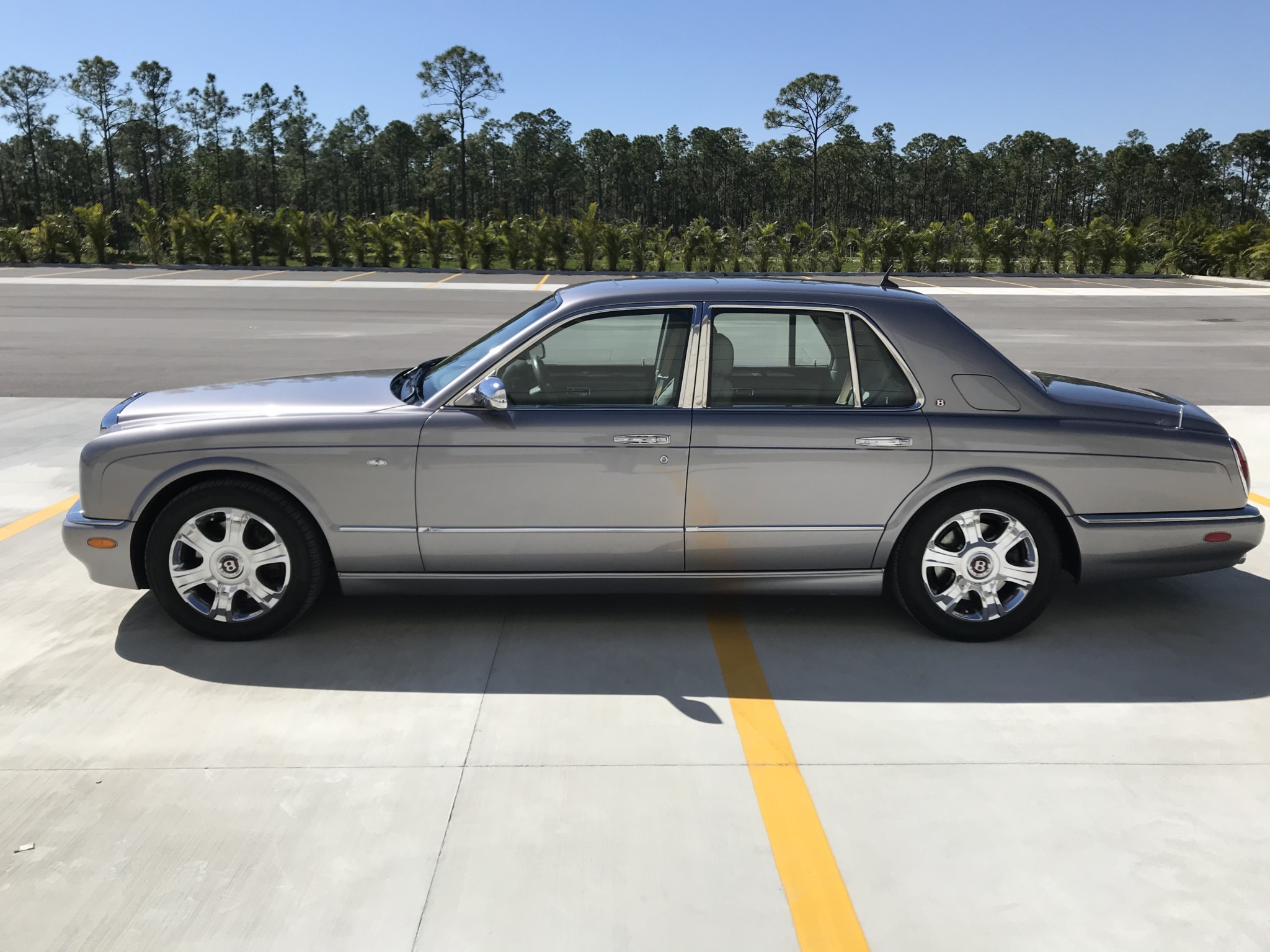 Chrome 18″ wheels wear Red Label center caps and Pirelli P Zero Rosso tires measuring 255/50 all around. The double-wishbone independent suspension featured an adaptive electro-hydraulic damping system from the factory, and the front upper ball joints were replaced by Braman Motorcars of West Palm Beach, Florida in July 2018 along with the sway bar end links.