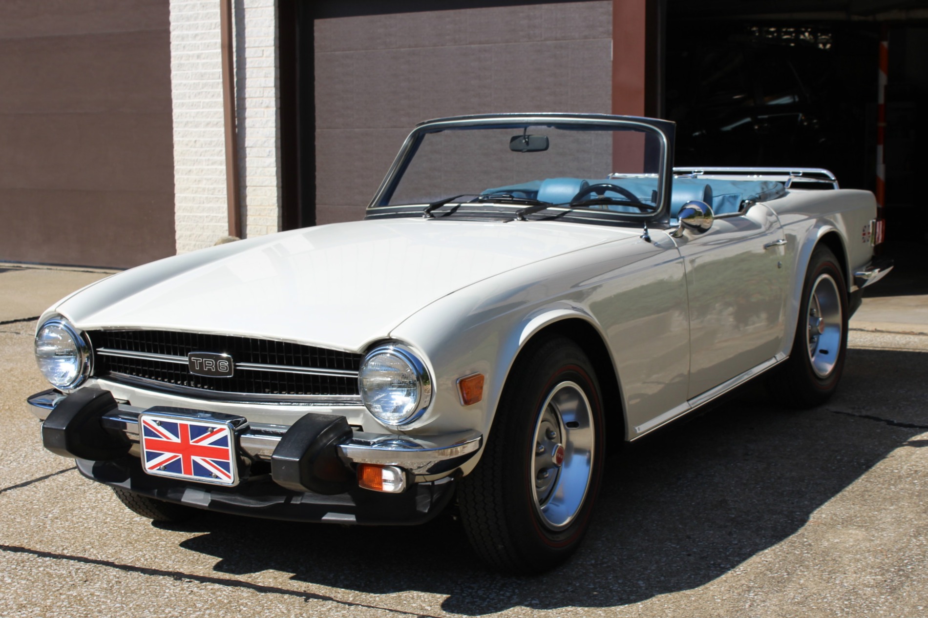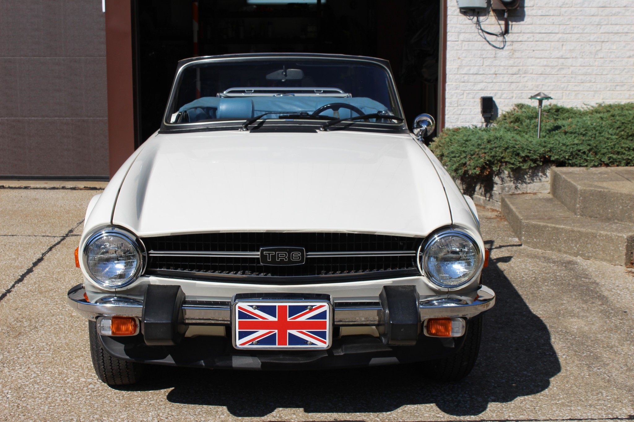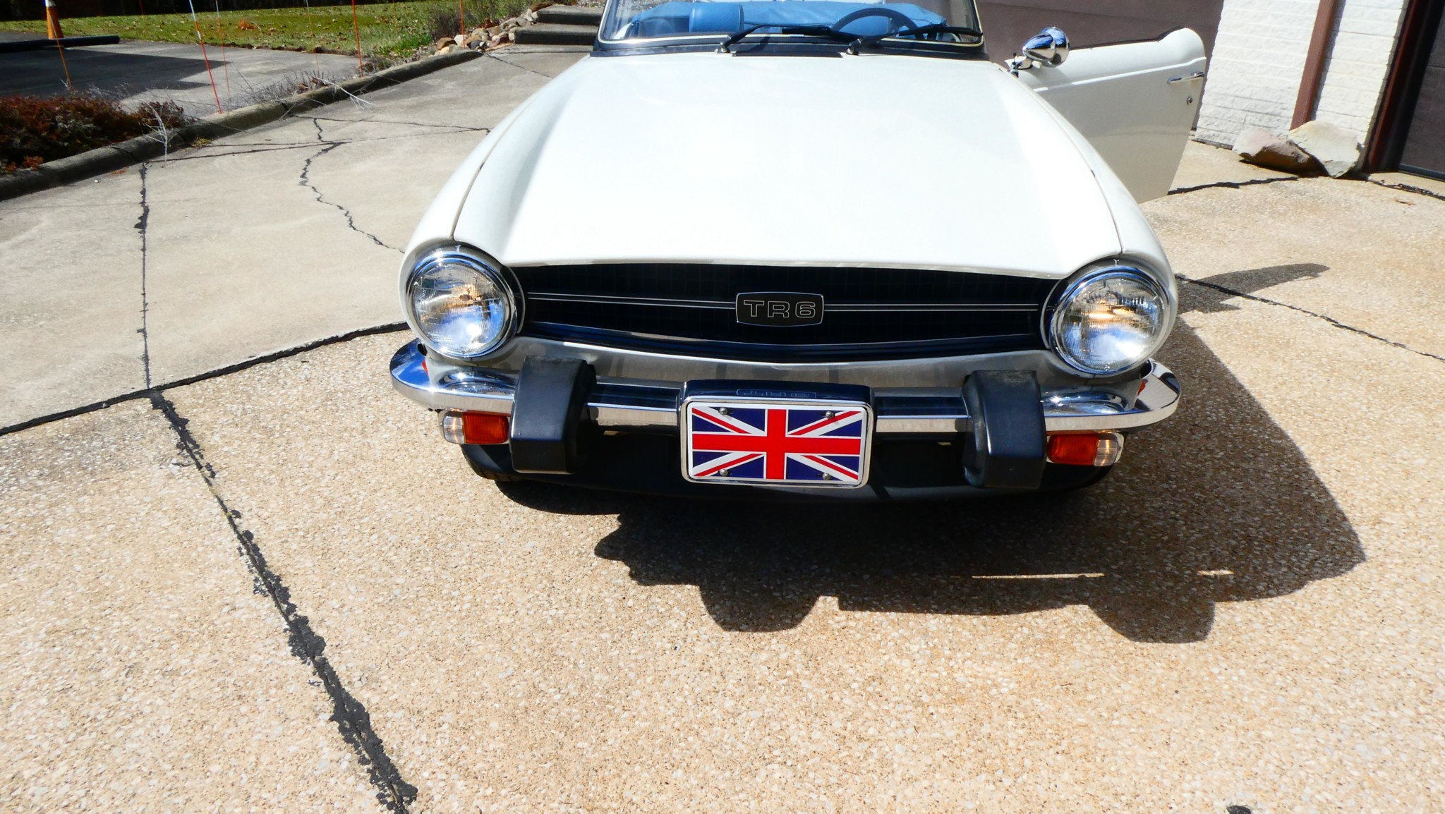 Factory 15″ four-lug wheels with polished trim rings are mounted with the reported original Michelin tires. The TR6 came standard with a four-wheel independent suspension and front disc brakes.