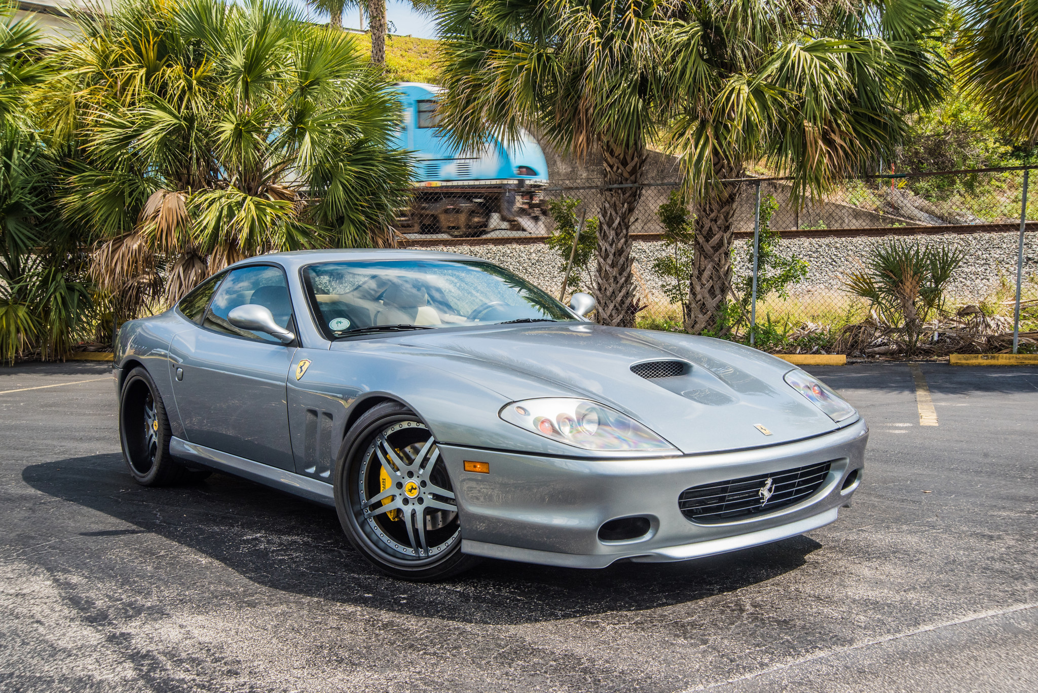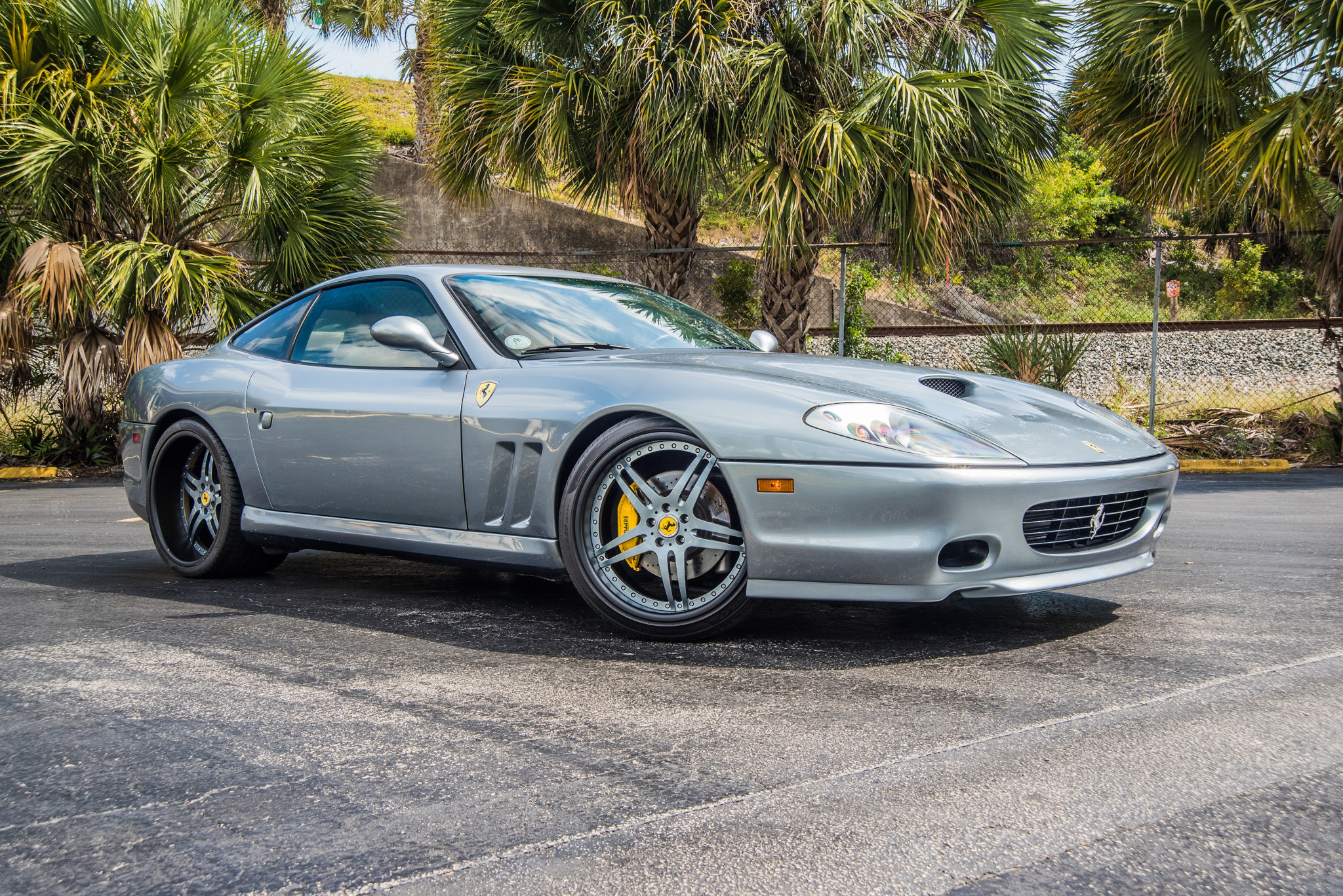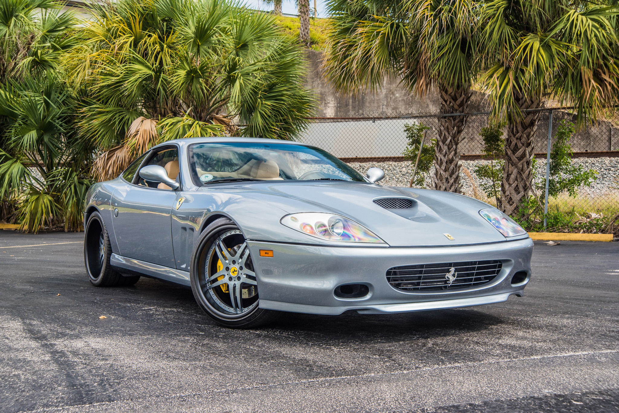 The seller states that the front of the car was damaged during the 2004 theft, and that the front bumper and right-front fender were subsequently repaired. The vehicle was in another collision in 2011 that resulted in replacement of the front bumper. Photos in the gallery show exterior blemishes, including a crack in the passenger-side mirror cover and yellowing in the clear wrap protection aft of the wheels.