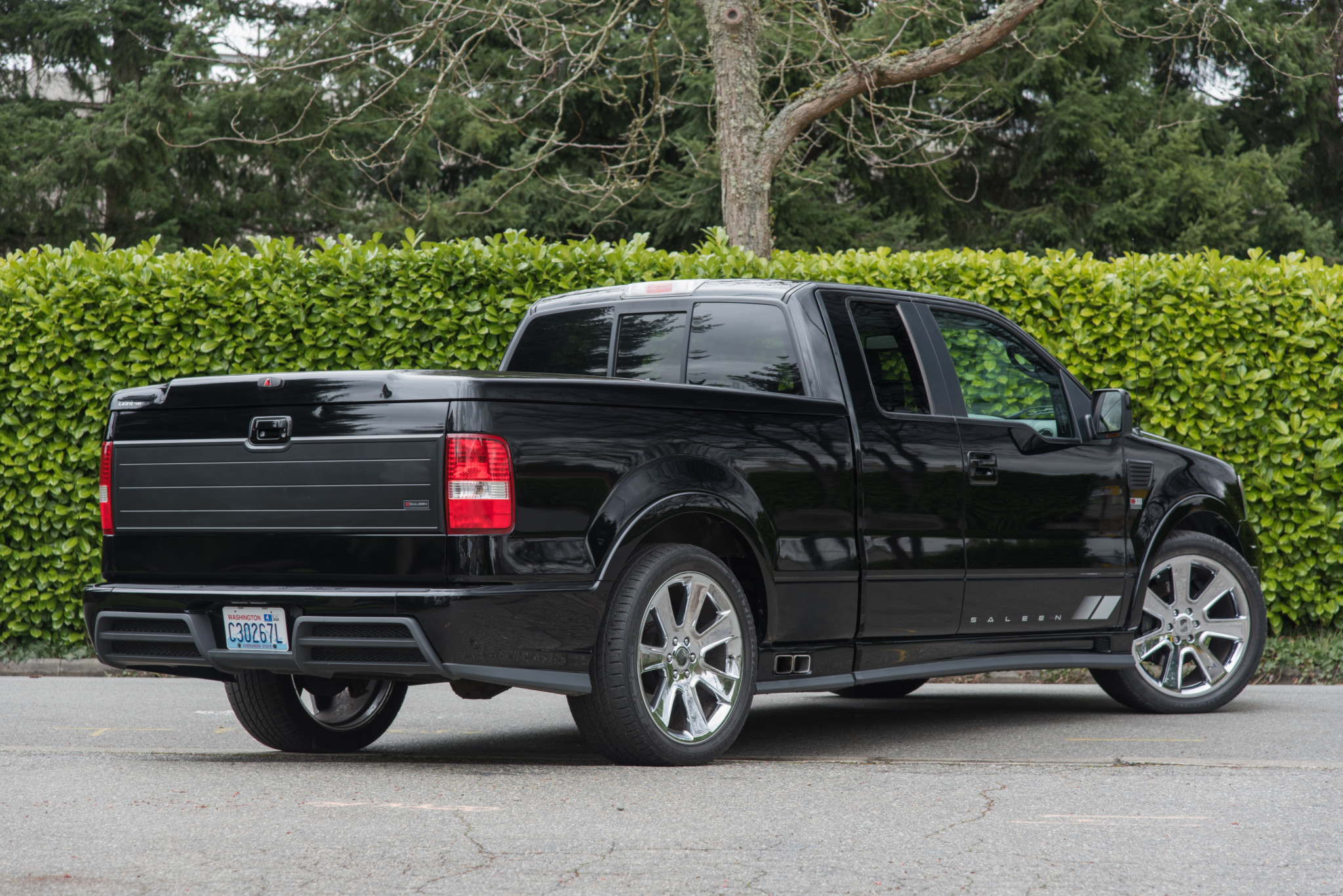 Saleen fitted the S331 with retuned dampers, springs, and sway bars. The chrome 23″ Saleen wheels wear Continental CrossContact tires measuring 305/40 and showing 2017 date codes, and Saleen brake calipers can be seen up front.