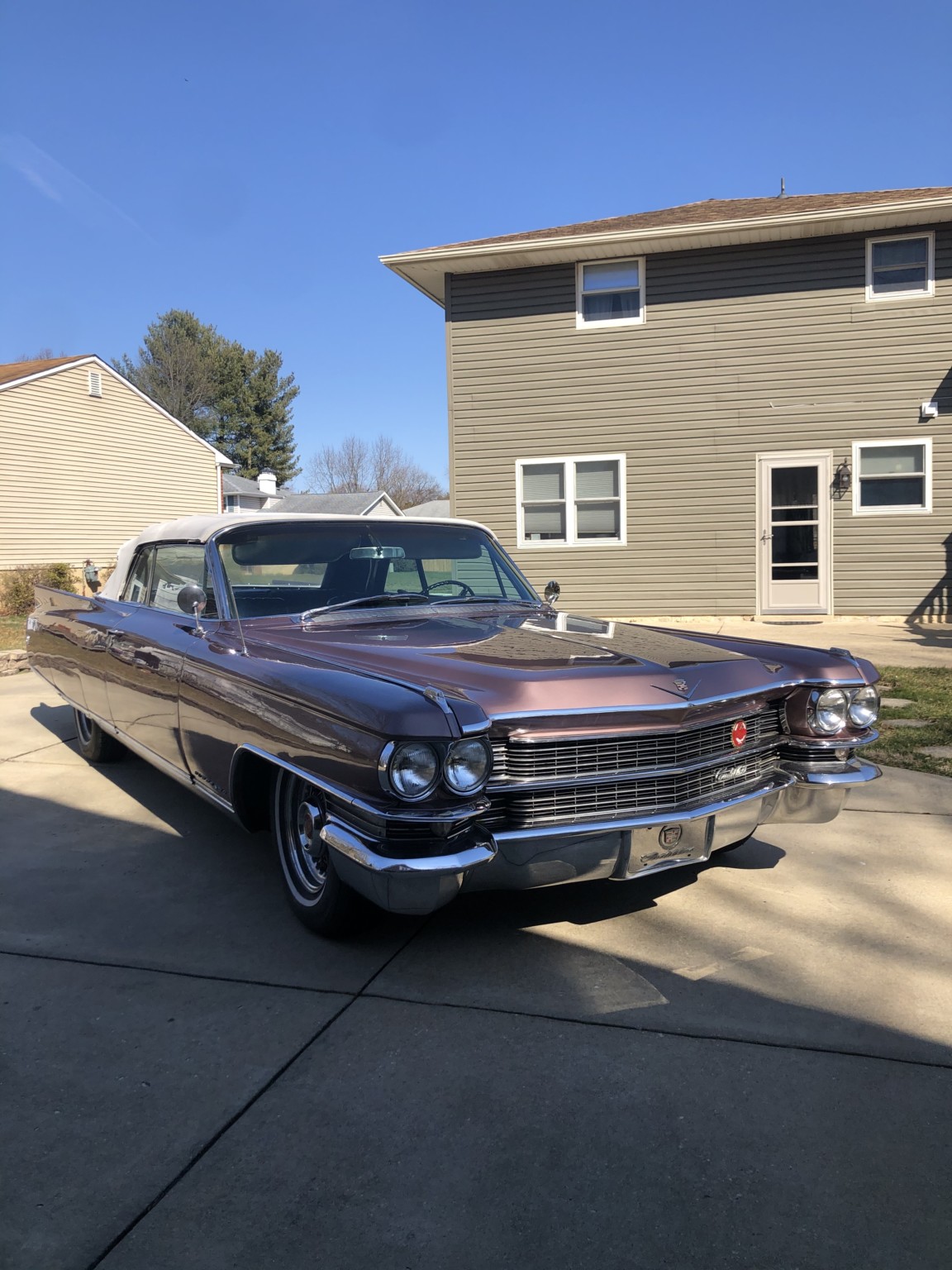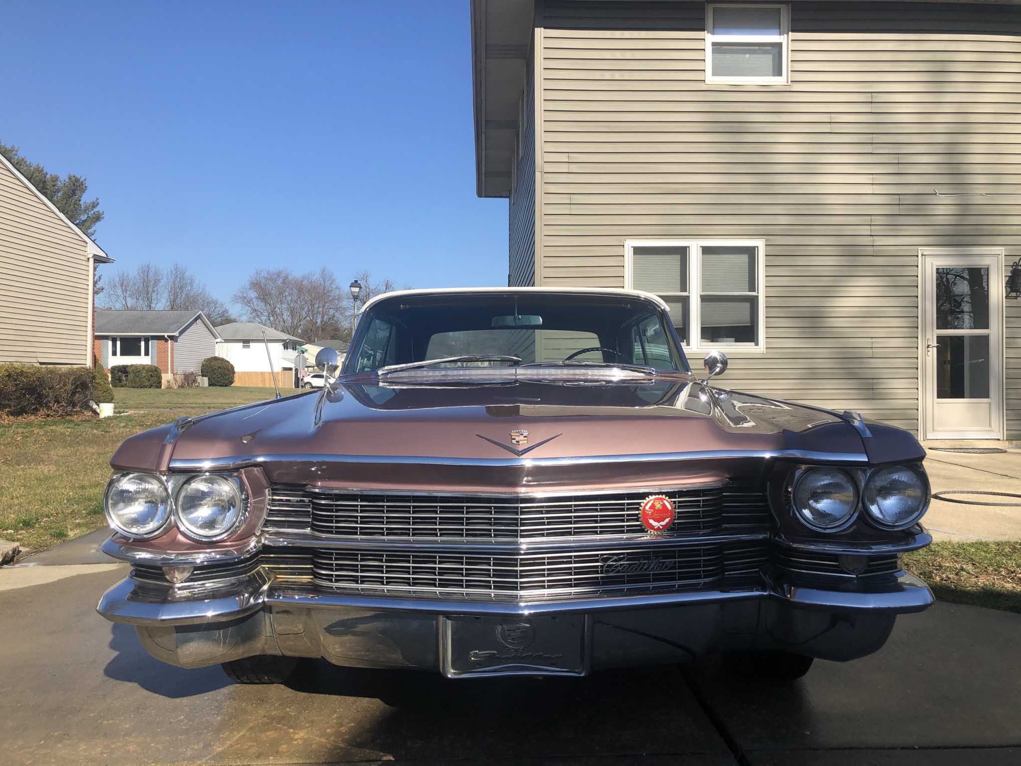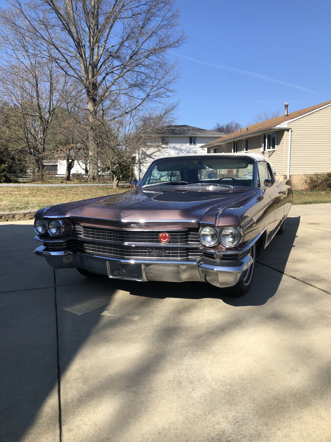 15″ wire wheels with Cadillac center caps are fitted with Cordovan Centron whitewall tires. Corrosion is noted on the wheels, and a spare tire is mounted in the trunk. The seller recommends replacing the shocks.