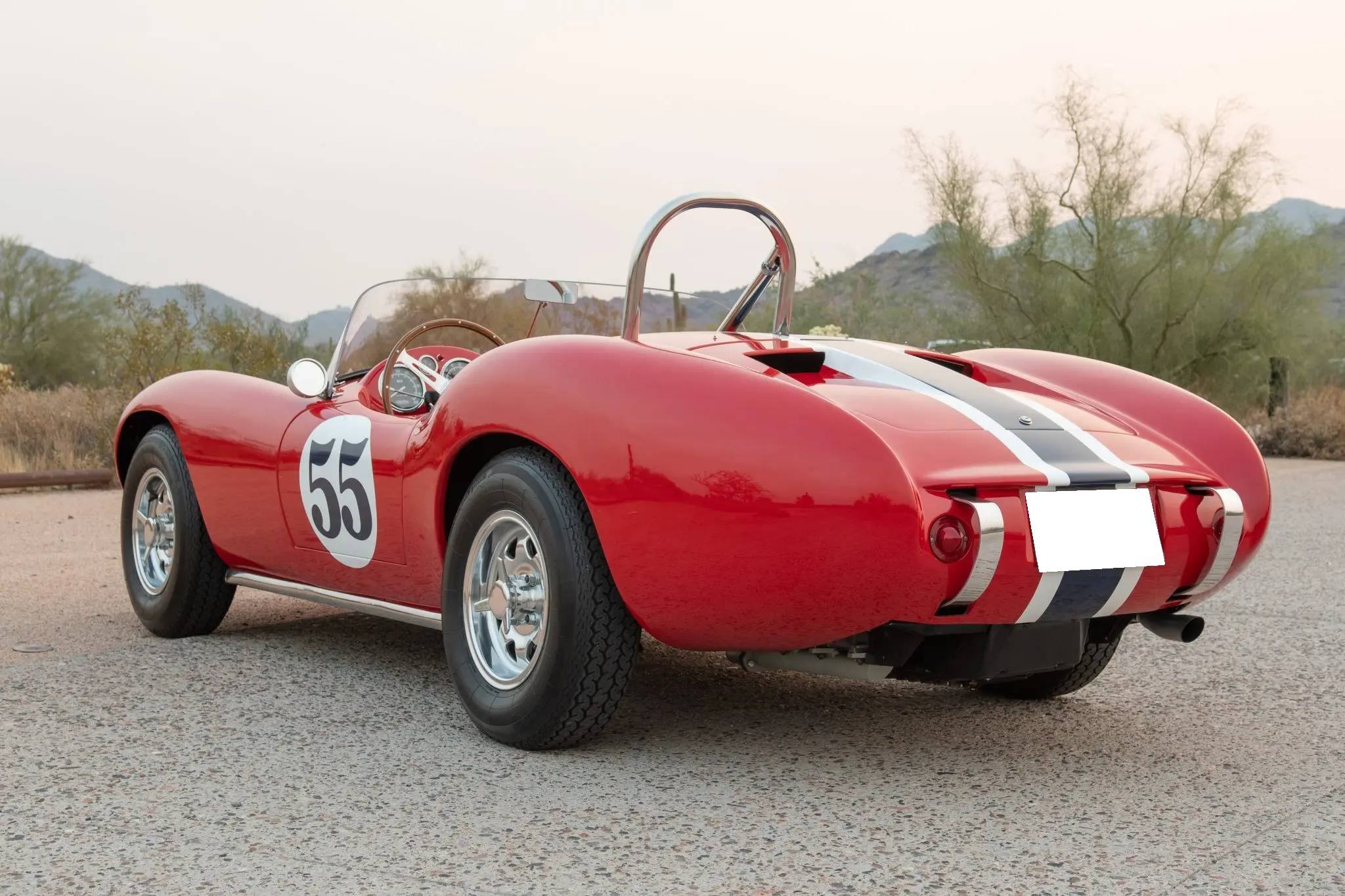 13″ Hands polished alloy wheels wear faux knock-off spinners and are wrapped in 6.40-13″ Vredestein Sprint Classic tires. The rear swing-axle suspension and hydraulic drum brake system were sourced from the Chevrolet Corvair, from which the “C” designation in the Devin’s model name was derived, while the front end retained the Volkswagen underpinnings of its predecessor, the Devin D. The seller states that the brakes were adjusted and the chassis lubrication points serviced in February 2020.