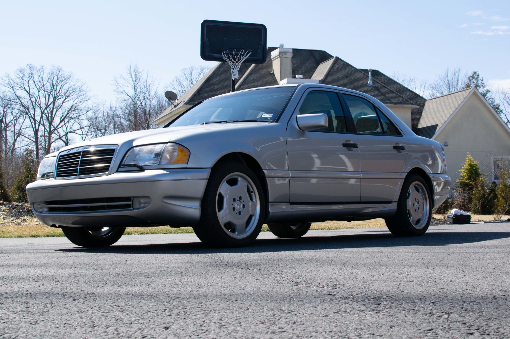 17” AMG Monoblock wheels wear Michelin Pilot A/S 3+ tires measuring 225/45 up front and 245/40 out back with August 2018 date codes.