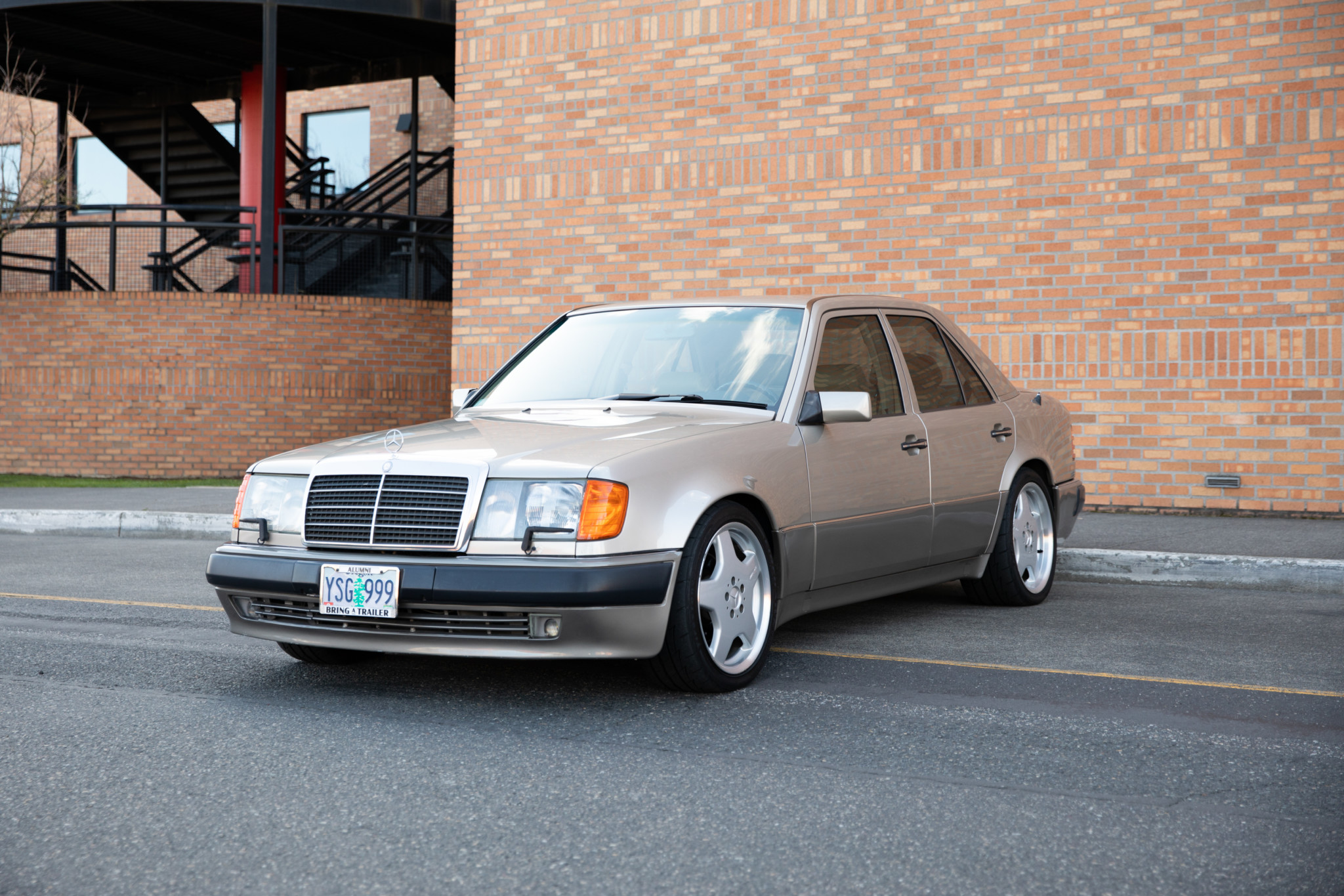 The suspension is fitted with a set of H&R lowering springs, and factory alloys are replaced by 18″ AMG wheels wrapped in Firestone Firehawk Indy 500 tires. An alignment was reportedly performed recently.