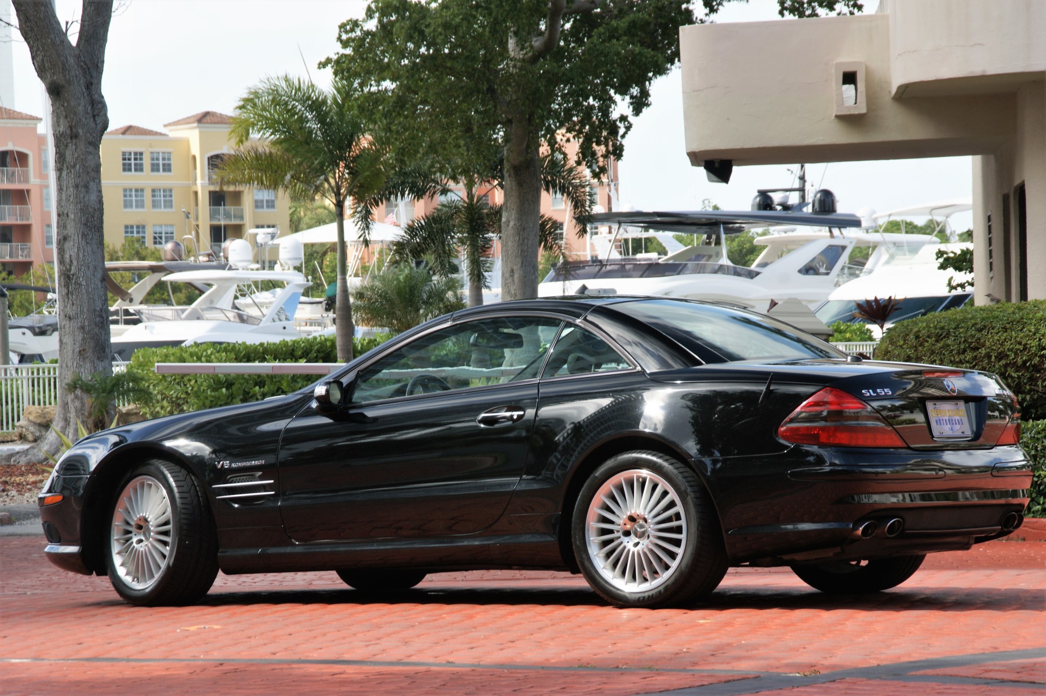 18″ AMG wheels wear 255/40 front and 285/35 rear Pirelli P Zero tires. The SL55 featured an upgraded AMG braking system comprised of silver calipers and cross-drilled rotors at each corner.