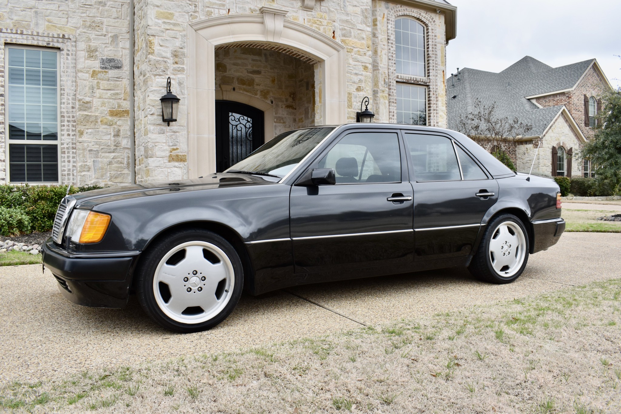 Staggered 18” AMG Monoblock wheels wear Sumitomo HTR Z III tires showing 2017 date codes. The center link tie rod assembly was replaced and a four-wheel alignment was performed in June 2019. Refinished factory 16” wheels with Uniroyal Tigerpaw tires from 2017 are included in the sale.