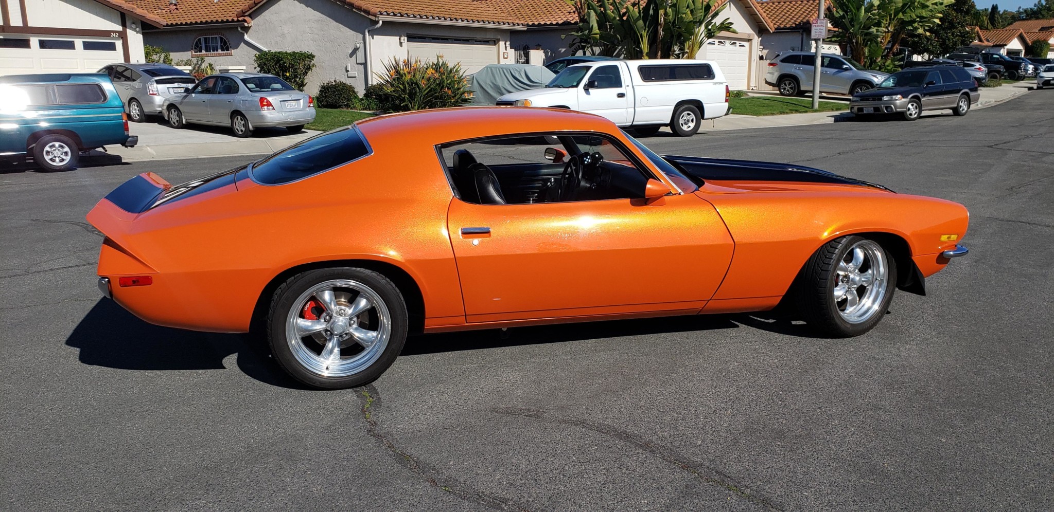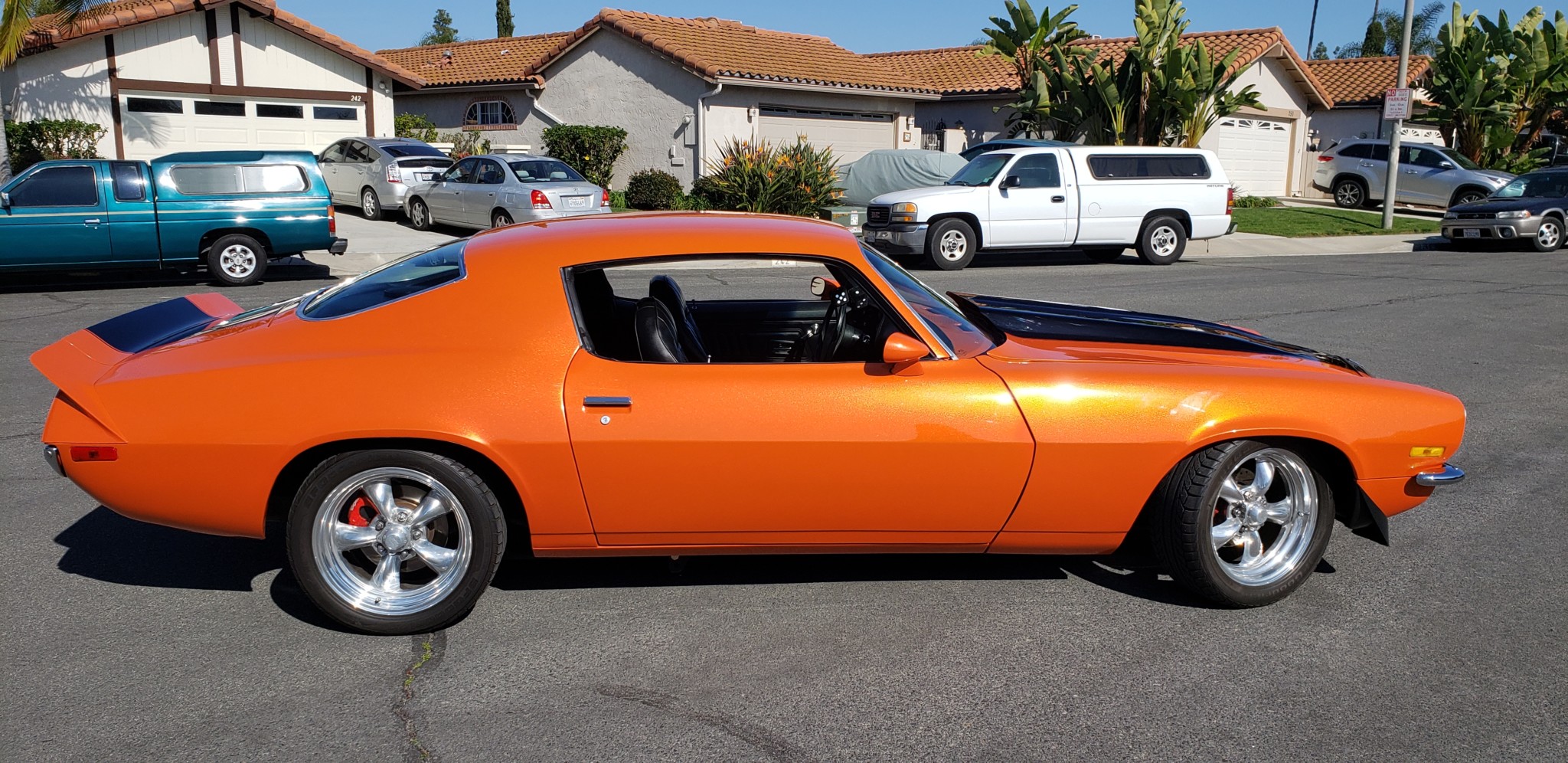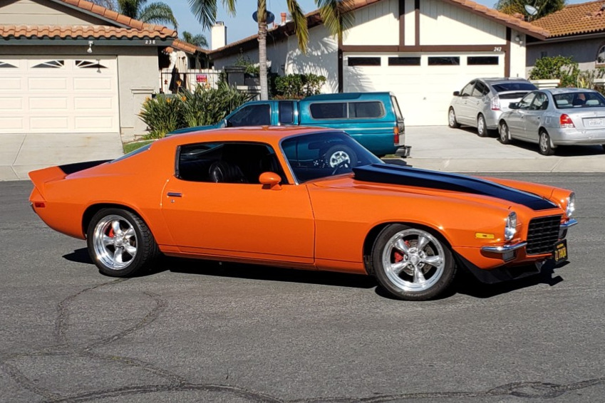 Staggered-width 17″ American Racing Torq Thrust wheels feature a polished finish and wear BFGoodrich g-Force Sport tires measuring 245/40 in the front and 275/40 at the rear. Disc brakes are fitted at all four corners.