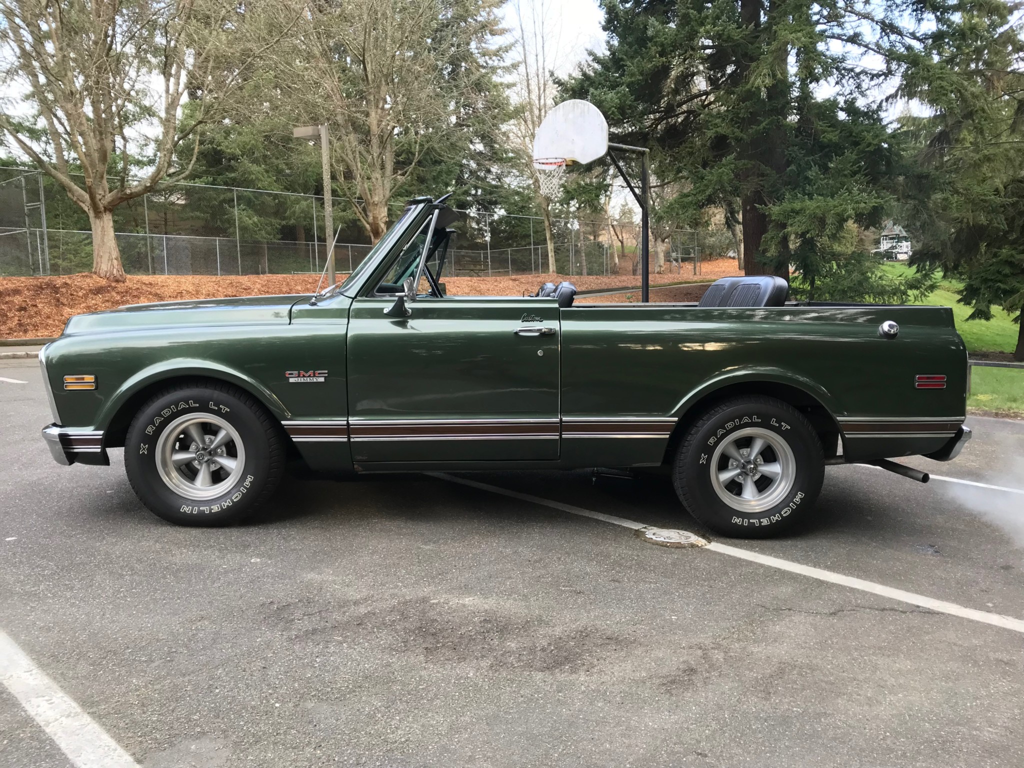 Aftermarket 15” five-spoke wheels are wrapped in white-letter Michelin X Radial LT tires sized 235/75. The truck has reportedly been lowered 3″ up front and 4″ out back. Braking is handled by front discs with rear drums. The seller reports that the factory sway bar and springs will be included with the sale.