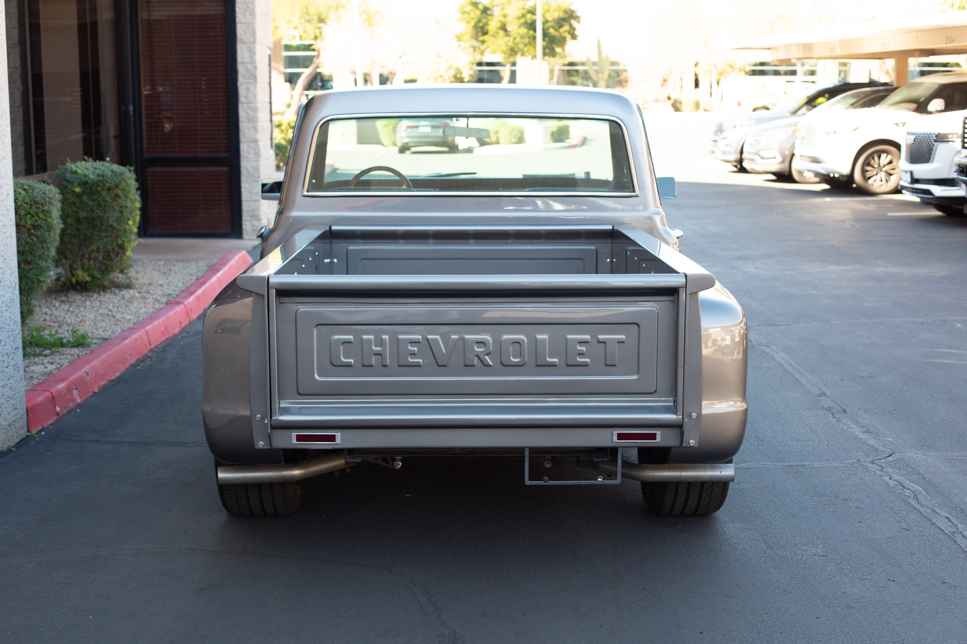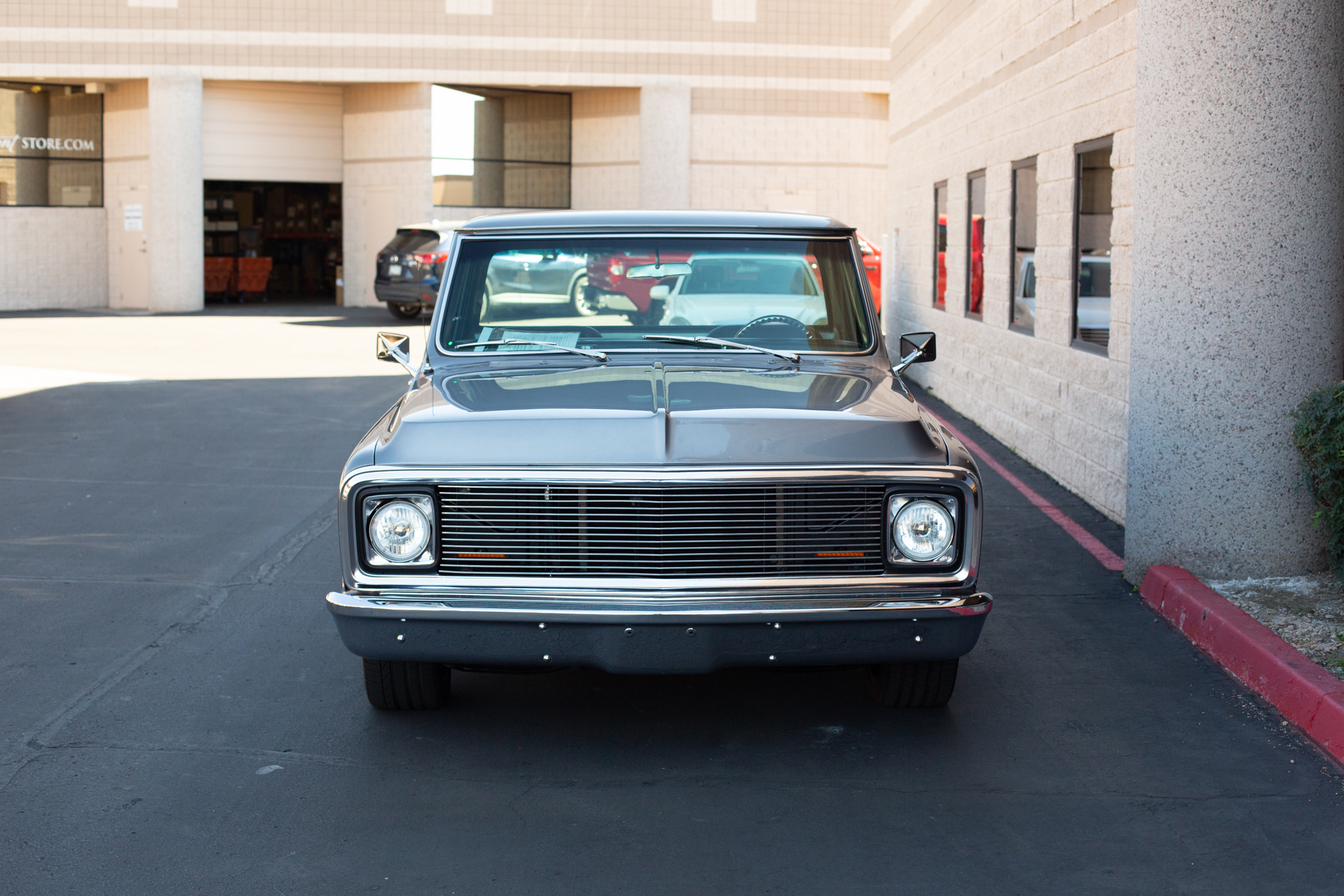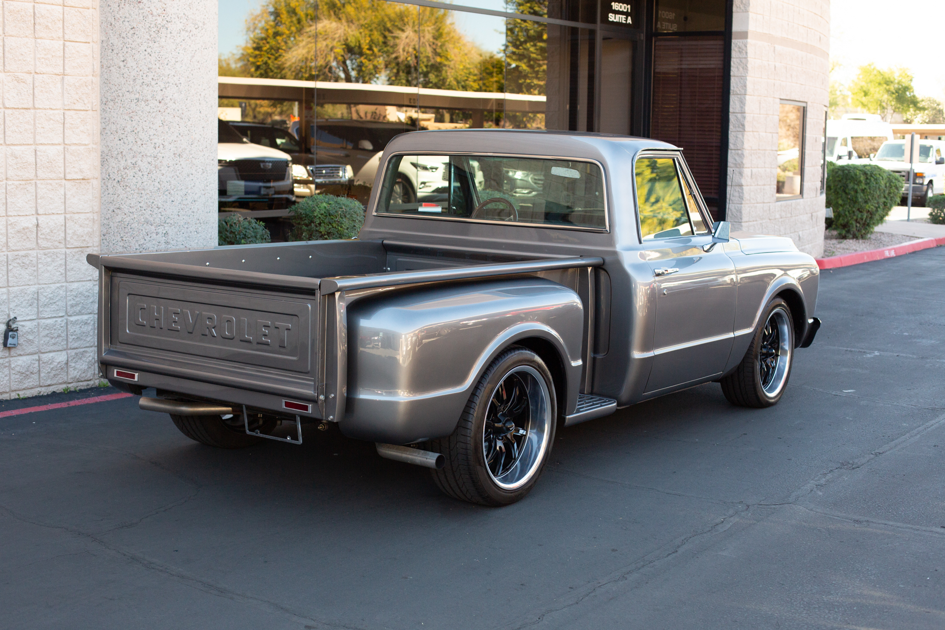 The 20″ Ridler wheels are mounted with Pirelli P-Zero tires measuring 245/45 up front and 275/40 out back. Features include a Belltech lowering kit with a 4″ front and 6″ rear drop, Dead End Garage frame notch and rear shock relocation kit, and power steering. Braking is handled by power-assisted four-wheel disc brakes.