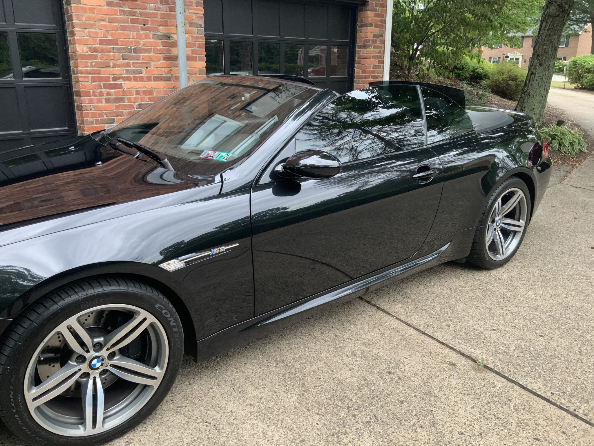 Factory 19″ Style 167 forged wheels wear 255/40 and 285/35 Continental ExtremeContact DWS-06 tires. The M6 features four-link integral independent rear suspension, front and rear stabilizer bars, twin-tube gas-pressure shock absorbers, and Electronic Damping Control. Aftermarket tint film has been applied to the rear and side windows.