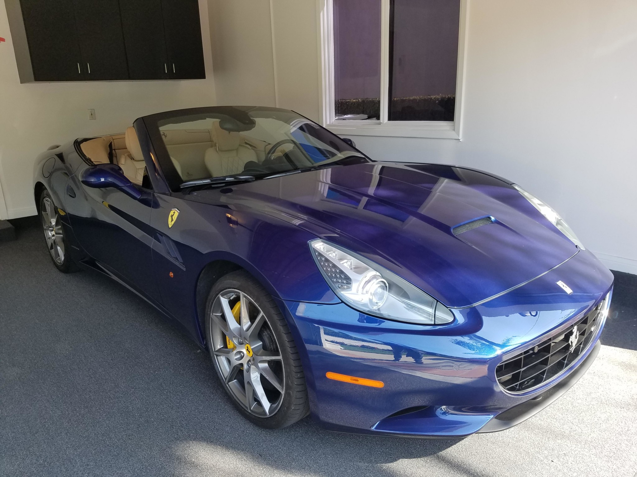 Factory 20″ alloy wheels wear prancing-horse center caps as well as Pirelli P Zero tires. Carbon-ceramic brake discs are paired with yellow calipers at each corner.