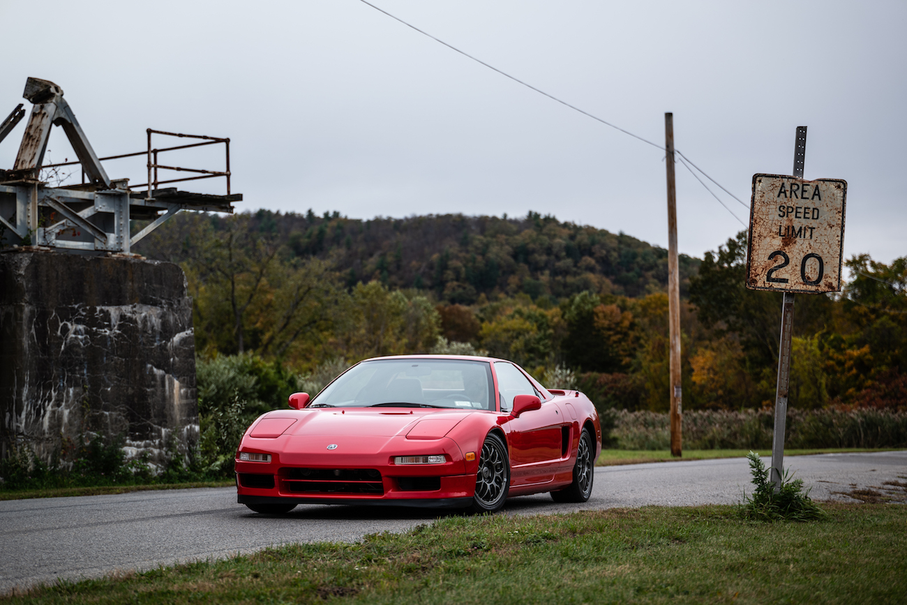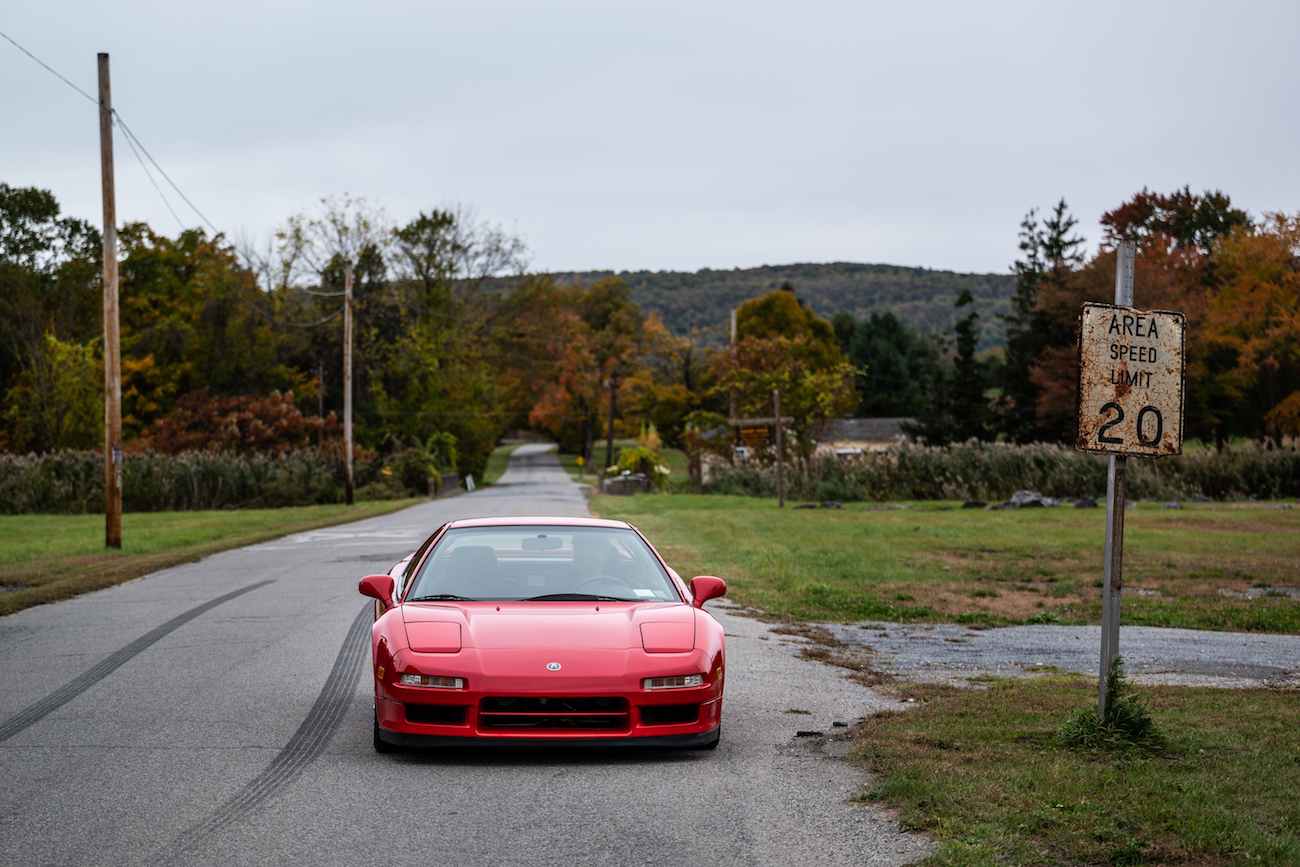 Dark gray BBS wheels measure 16″ in diameter up front and 17″ out back and wear Yokohama tires manufactured in 1998. The previous owner used a set of aftermarket wheels and tires, and seller reinstalled the factory wheels and tires when he purchased the car and also repainted the brake calipers the factory color. The Zanardi Edition also has a firmer suspension than a standard NSX.