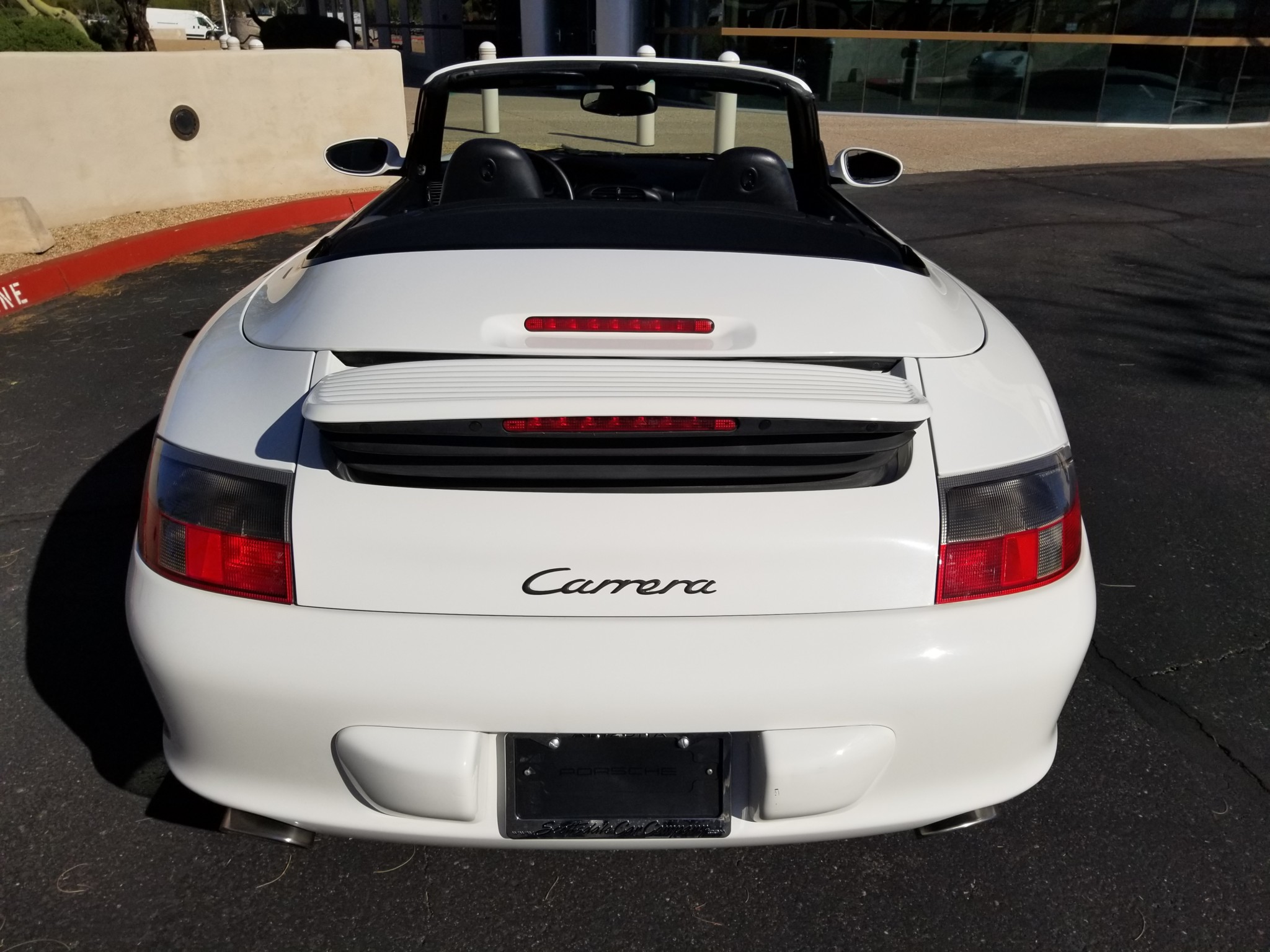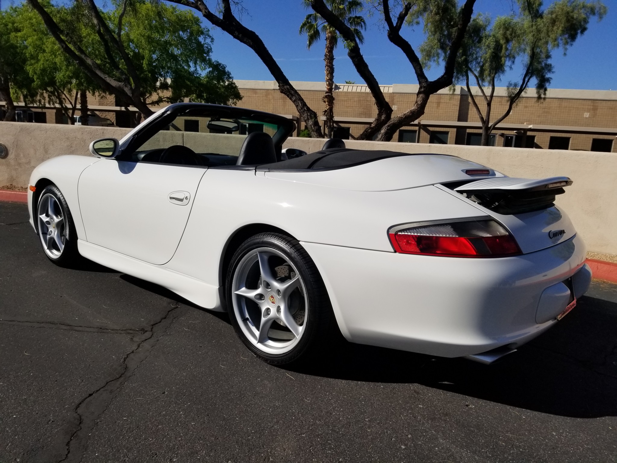 Factory 18″ Carrera five-spoke wheels show curb rash and are fitted with Pirelli P Zero All Season Plus tires up front and Pirelli P Zero Rosso tires at the rear. A brake service in February 2020 consisted of replacing the front and rear pads and sensors and truing the rotors.