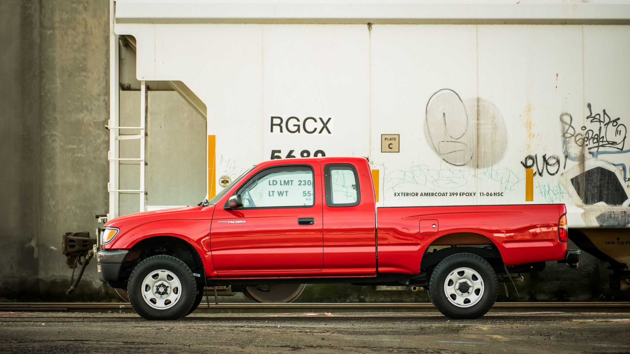 Factory 15″ styled steel wheels are mounted with original Dunlop Grandtrek tires measuring 225/75 and showing 1997 date codes. Braking is handled by front discs and rear drums.