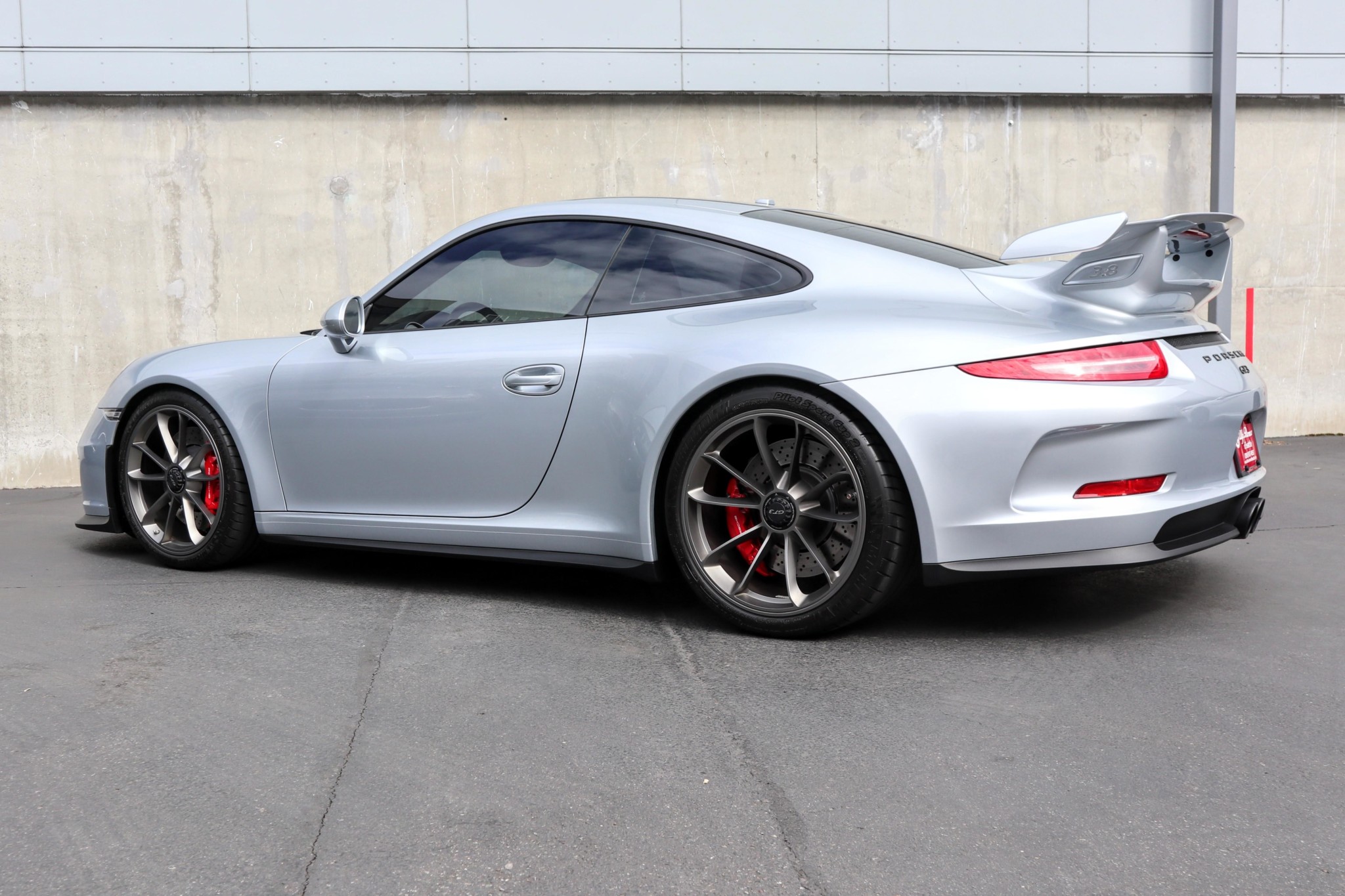 Factory center-lock 20″ wheels are finished in graphite and wear Michelin Pilot Sport Cup 2 tires. Braking is handled by red calipers paired with drilled and vented rotors all around.