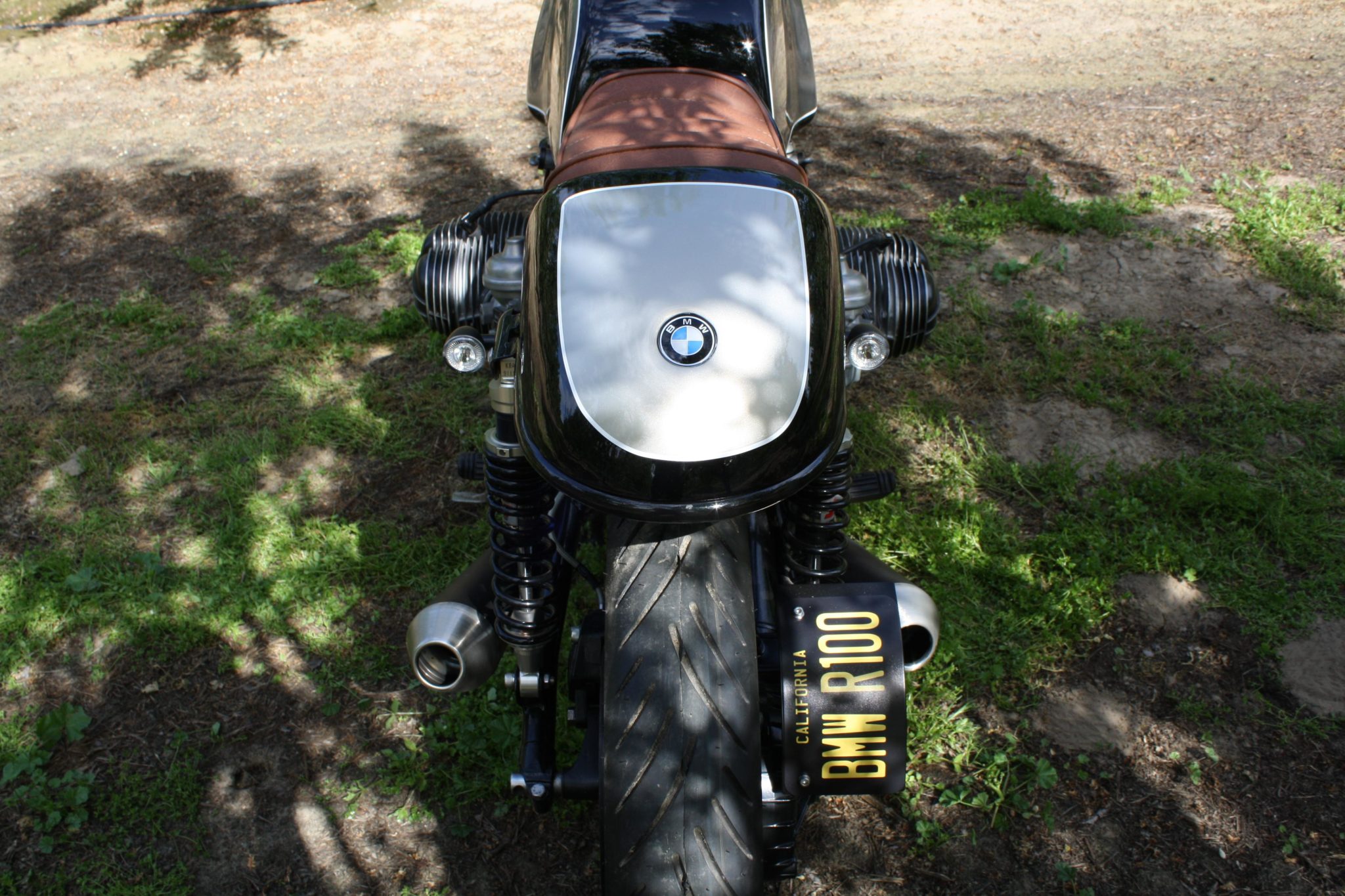 Black snowflake wheels wear Metzeler Sportec Klassik tires with white lettering that are said to have been installed in the past year. Suspension consists of a conventional front fork mounted in a lowered Toaster Tan triple tree as well as replacement rear shocks affixed to the swingarm on the left and the driveshaft housing on the right. Brembo brakes feature rebuilt calipers at both ends, a replacement rear master cylinder, and stainless steel lines.