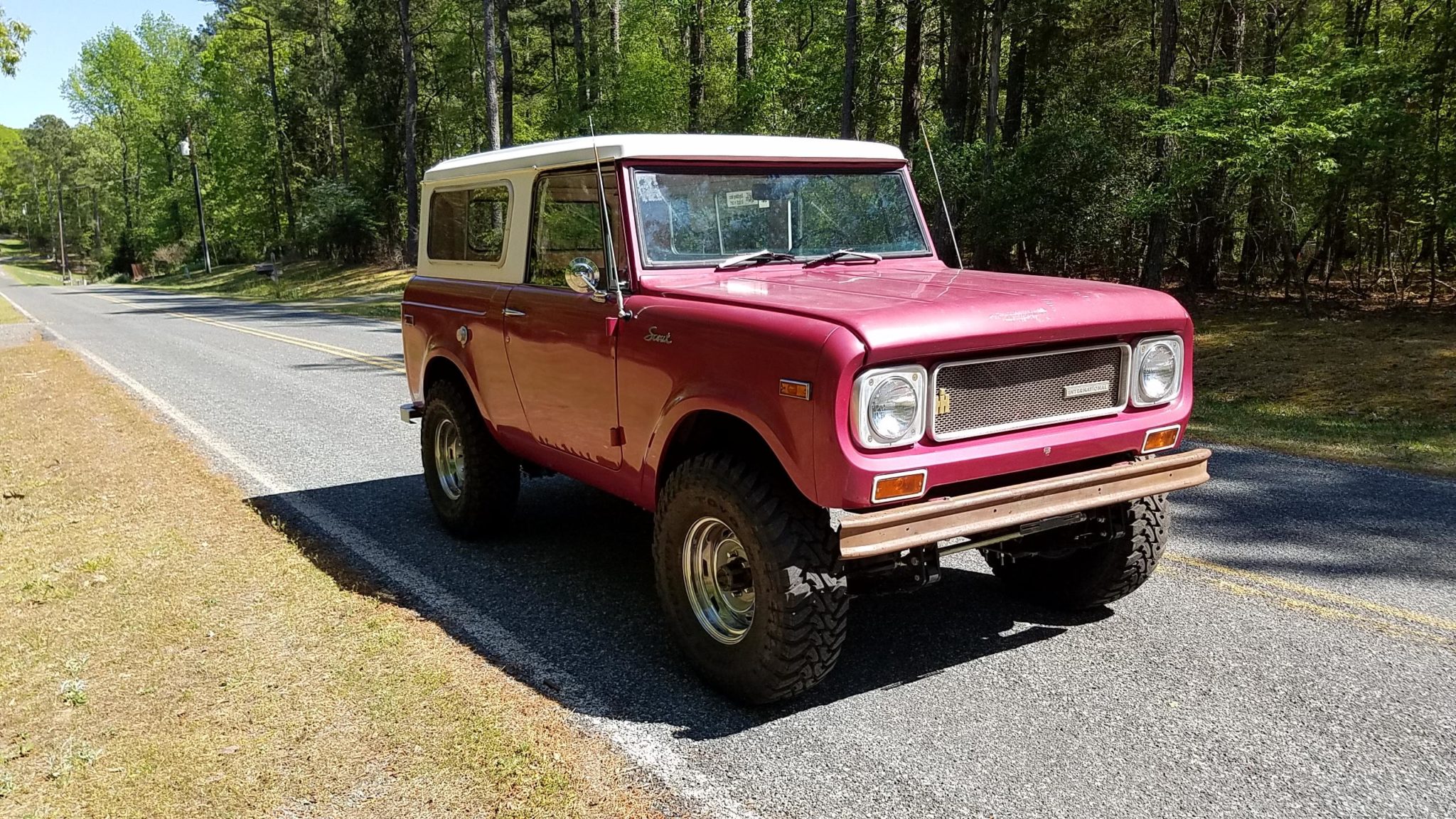 Chrome-finished steel wheels are mounted with Toyo Open Country M/T tires. The wheels and tires reportedly were replaced by the previous owner, who also rebuilt the steering box, replaced the brake master cylinder, added four-wheel disc brakes and braided hoses, overhauled the suspension, and fitted Bilstein shocks. The front axle features locking hubs.