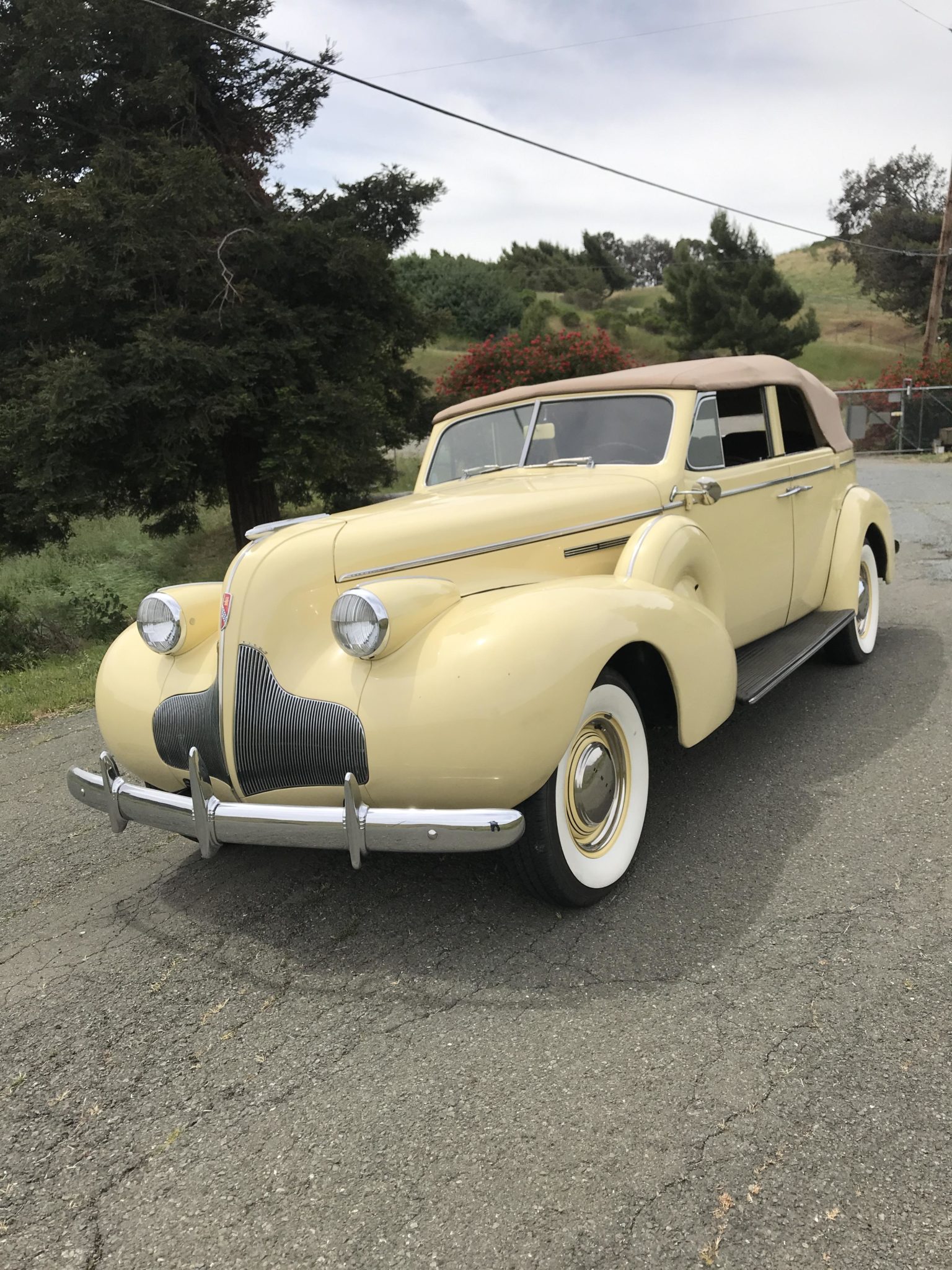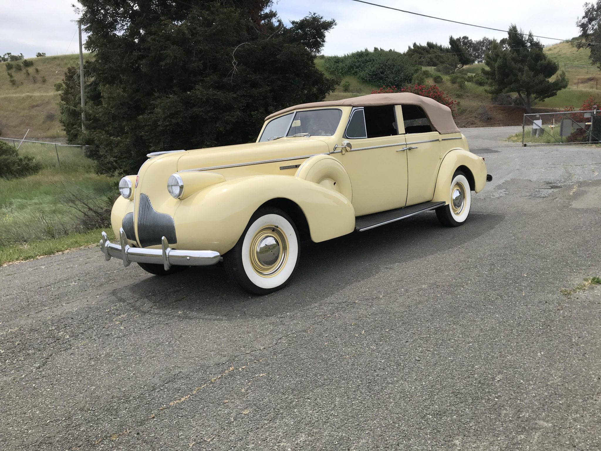Color-matched 15″steel wheels wear chrome hubcaps and wide-whitewall tires. Hard covers for dual spares are mounted in each of the front fenders. The suspension features coil springs all around, and stopping power is provided by hydraulic drum brakes.
