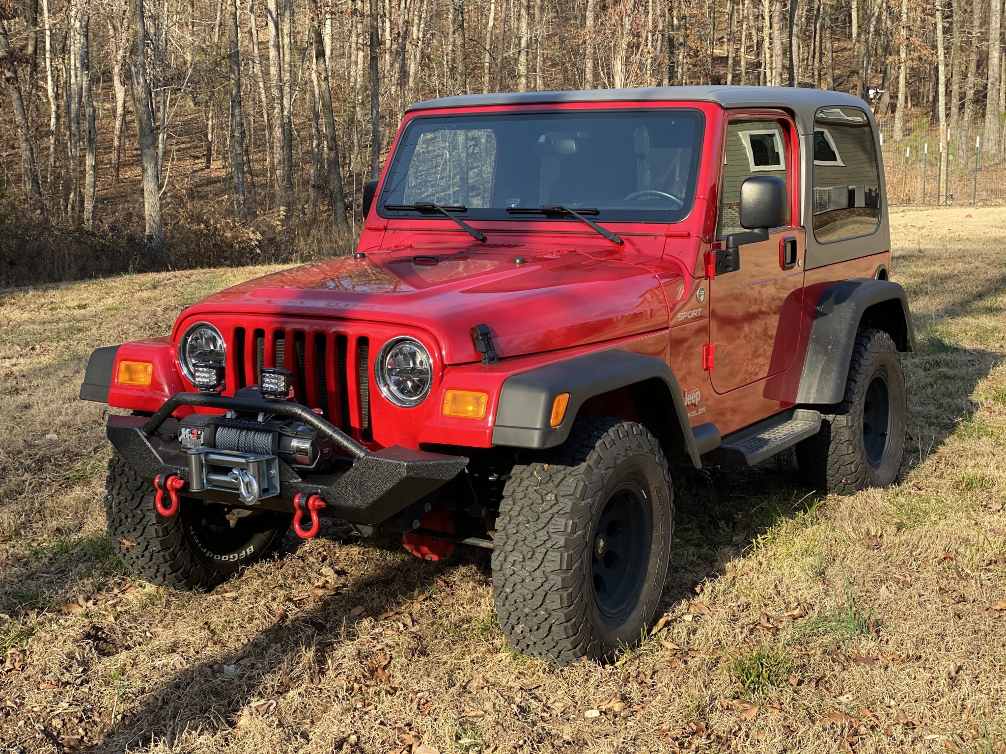 Black 15″ Pro Comp alloy wheels are fitted with 32″ BFGoodrich All-Terrain TA K02 tires. A 2″ Pro Comp suspension lift kit has been added, and the track bars were replaced under current ownership.