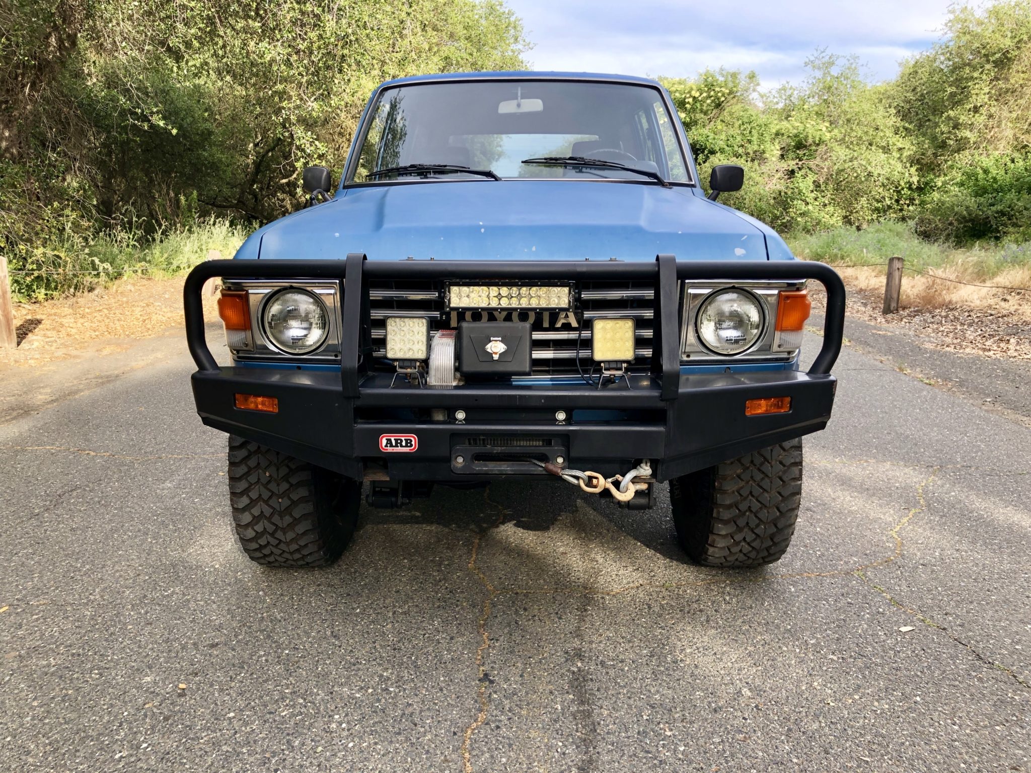 Old Man Emu leaf spring shackle extensions provide clearance for the aftermarket chrome 15″ wheels wearing 33″ Hankook DynaPro MT tires. A matching spare is located under the truck and Aisin manually-locking hubs are equipped on the front axle. Service performed in the fall of 2019 reportedly included rebuilding the steering box and front knuckles as well as replacement of the brake hoses and fluid.