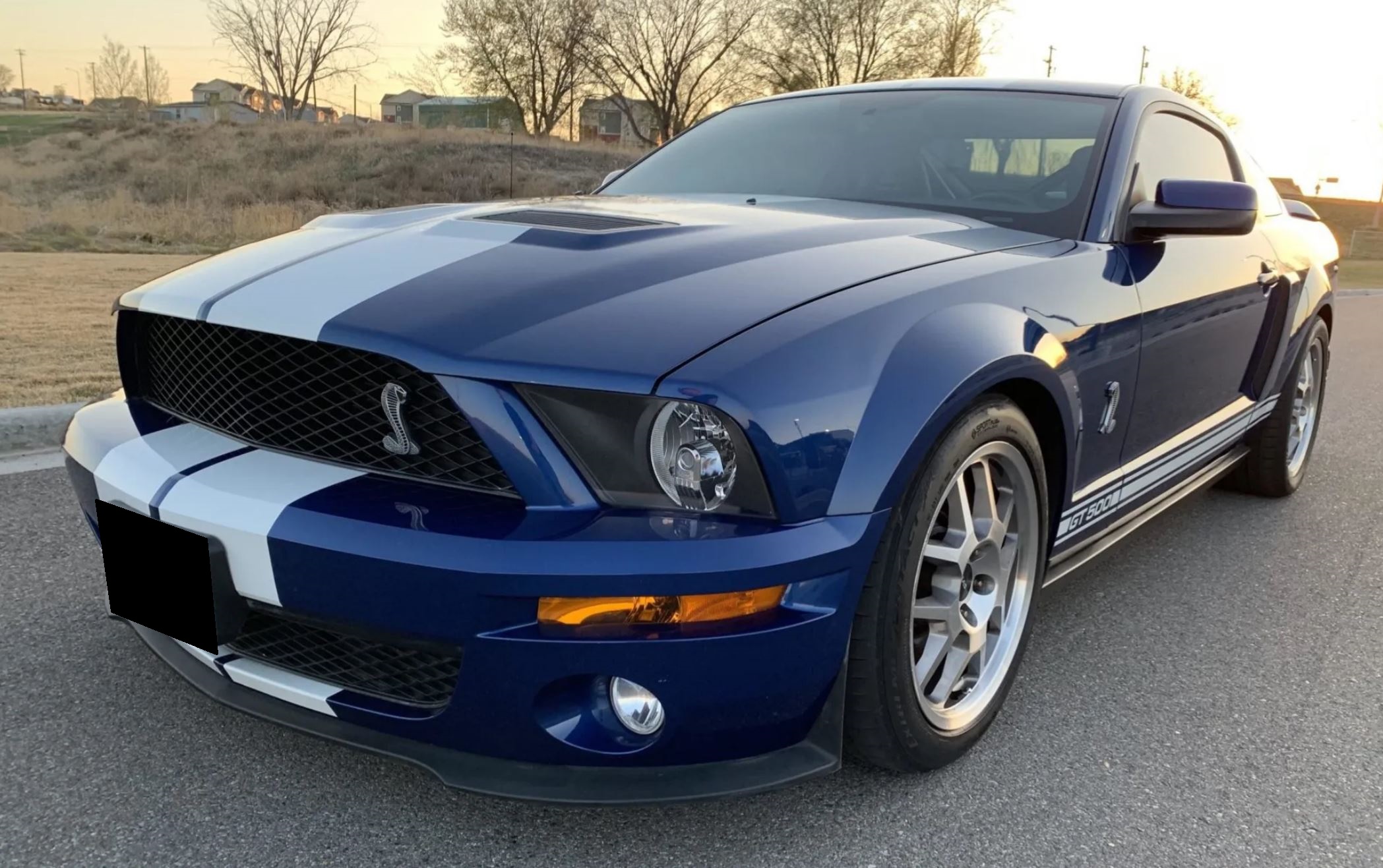 Factory 18″ SVT wheels are mounted with staggered-width Continental ExtremeContact Sport tires. The suspension is fitted with Koni Yellow adjustable shocks, Eibach springs, adjustable camber and caster plates, a BMR Panhard bar, and adjustable rear toe links. The braking system features Brembo calipers with vented 14″ front rotors.