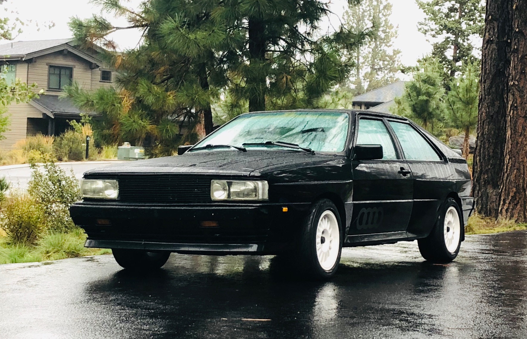 Factory 15″ Ronal R8 wheels were powdercoated white and are wrapped in Yokohama AVS ES100 tires that the seller states are in need of replacement. Power rack-and-pinion steering and four-wheel disc brakes were standard equipment on the Ur-Quattro. A set of 15″ Fuchs wheels with Continental WinterContact SI snow tires are included in the sale.
