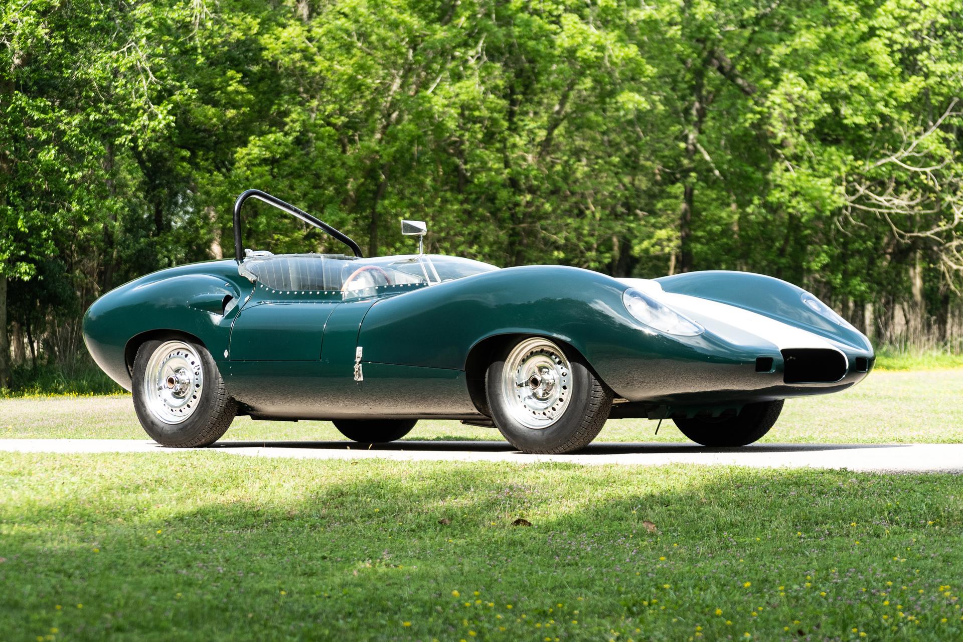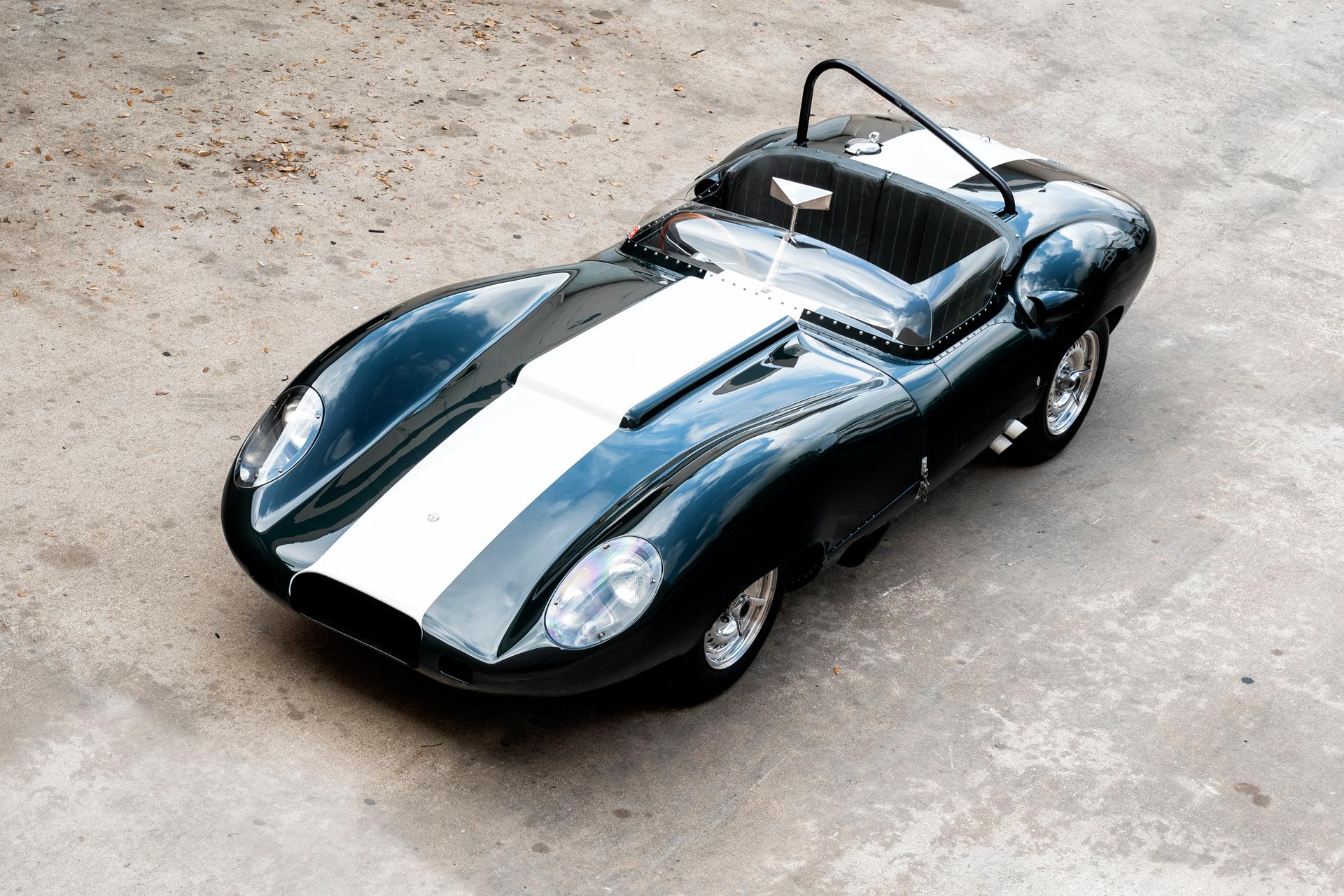 Originally finished in blue, the car was campaigned in hillclimbs and road races around New Zealand in the 1990s before being refurbished by Tempero in 2002. The aluminum body was repainted in its current British Racing Green at that time. Features include a louvered rear decklid, white racing stripe, roll hoop, side-exit exhaust, covered headlamps, external hood latches, and a polished fuel-filler cap.