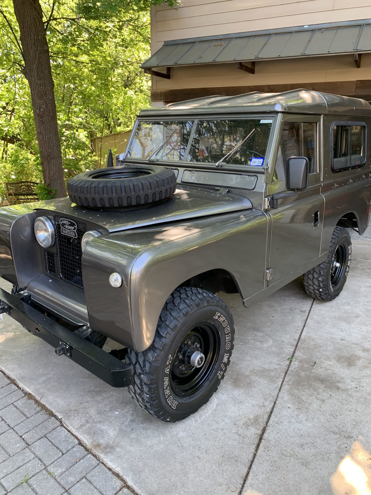 Black steel wheels wear older Runway Enduro M/T tires, and a smaller spare is mounted to the hood. The truck is equipped with manually-locking front hubs, and the braking and steering systems have been modified with power assistance.