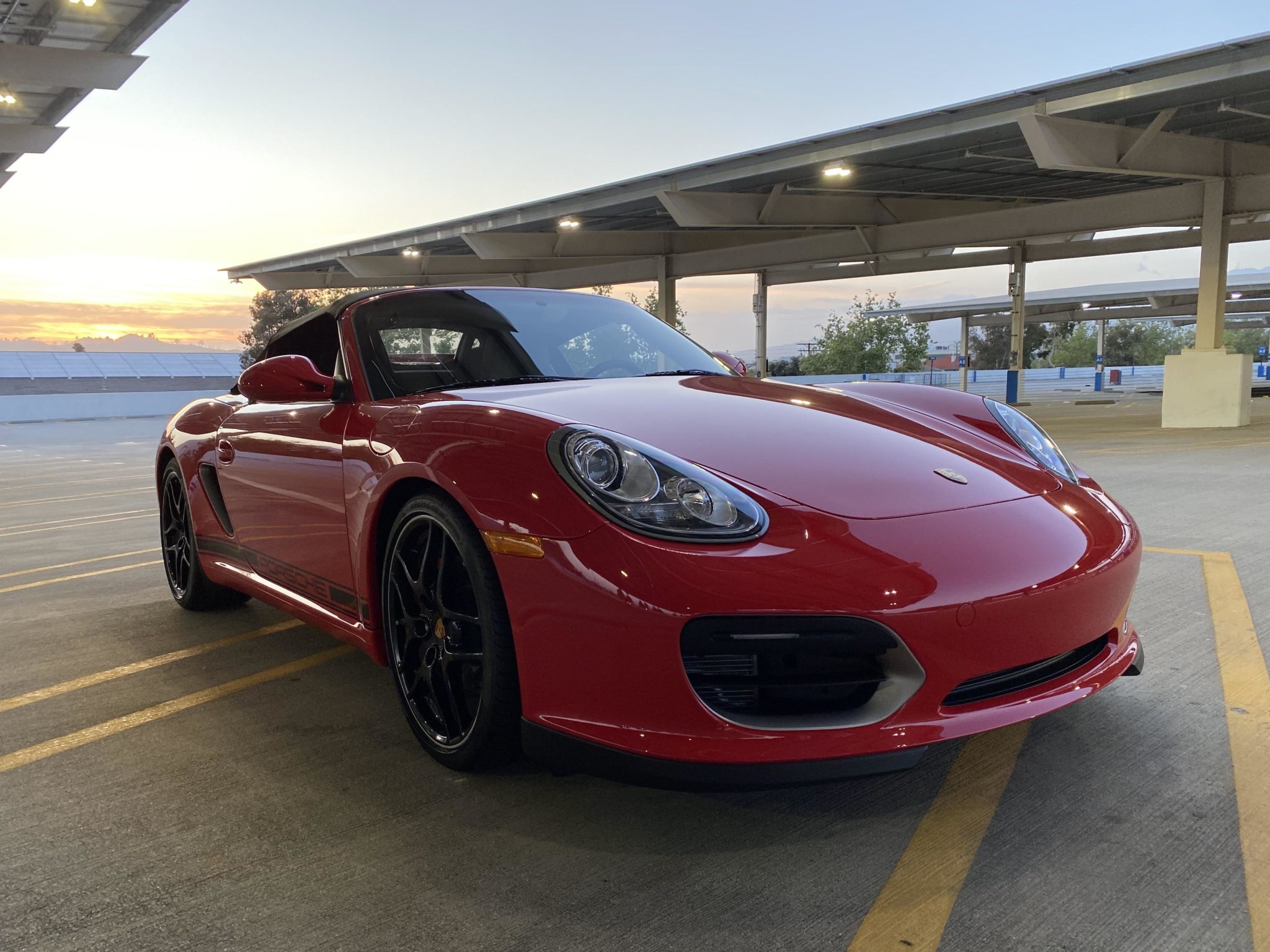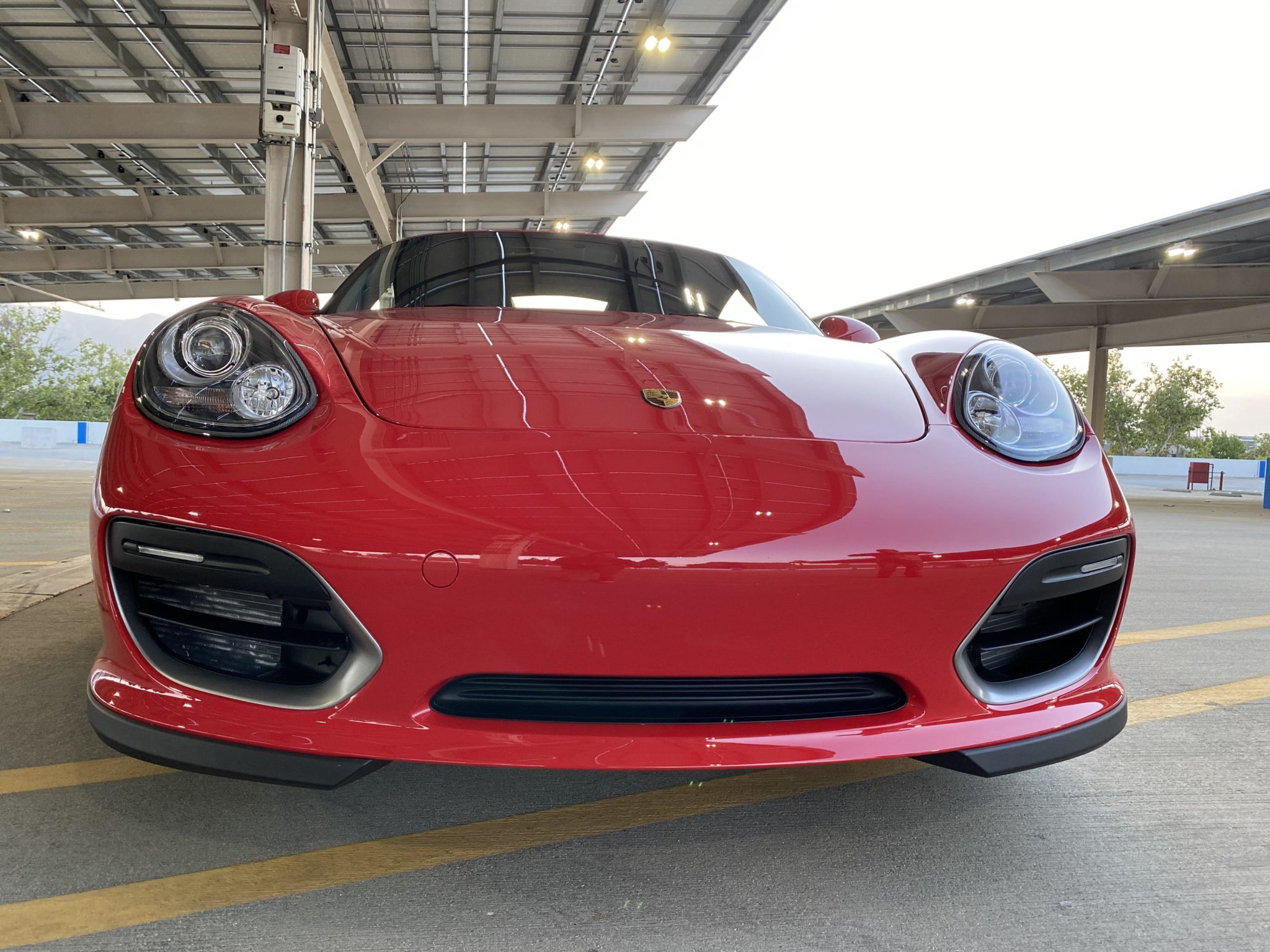 Porsche Exclusive Black 19″ wheels with silver lips wear colored-crest center caps and Pirelli tires showing 2010 date codes. A brake flush was carried out in December 2019 along with replacement of the right rear strut support arm. The side windows have been tinted.