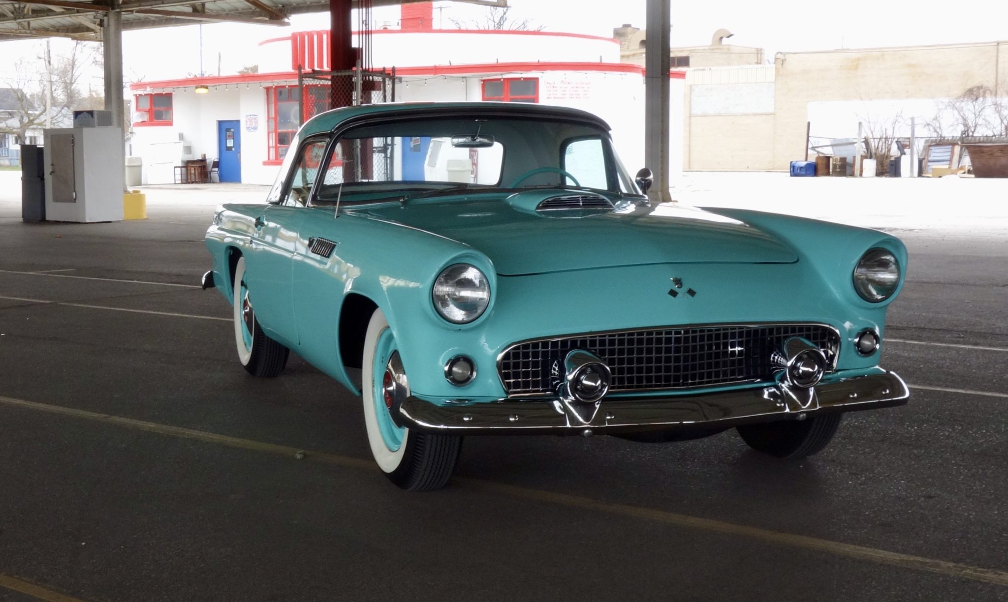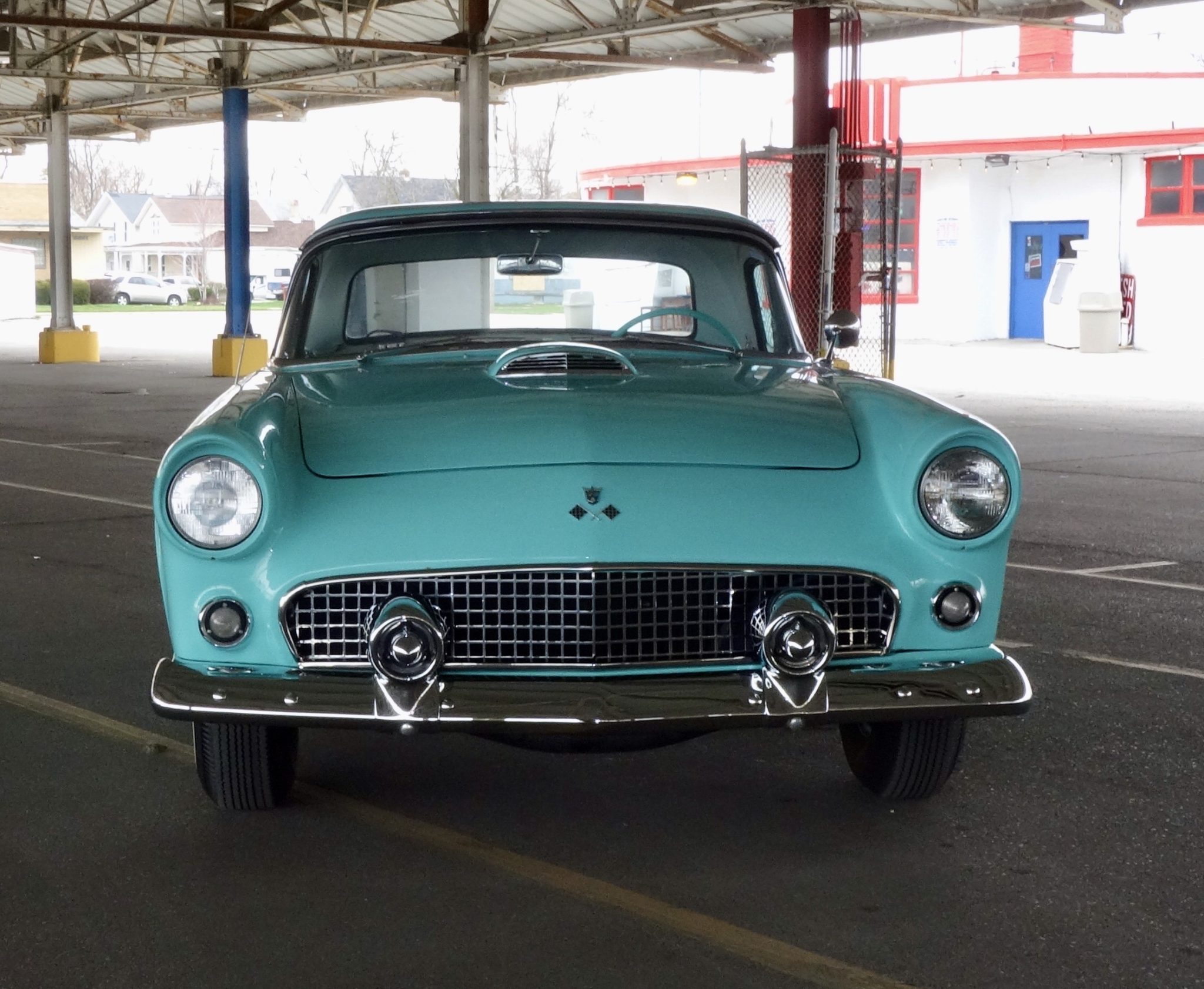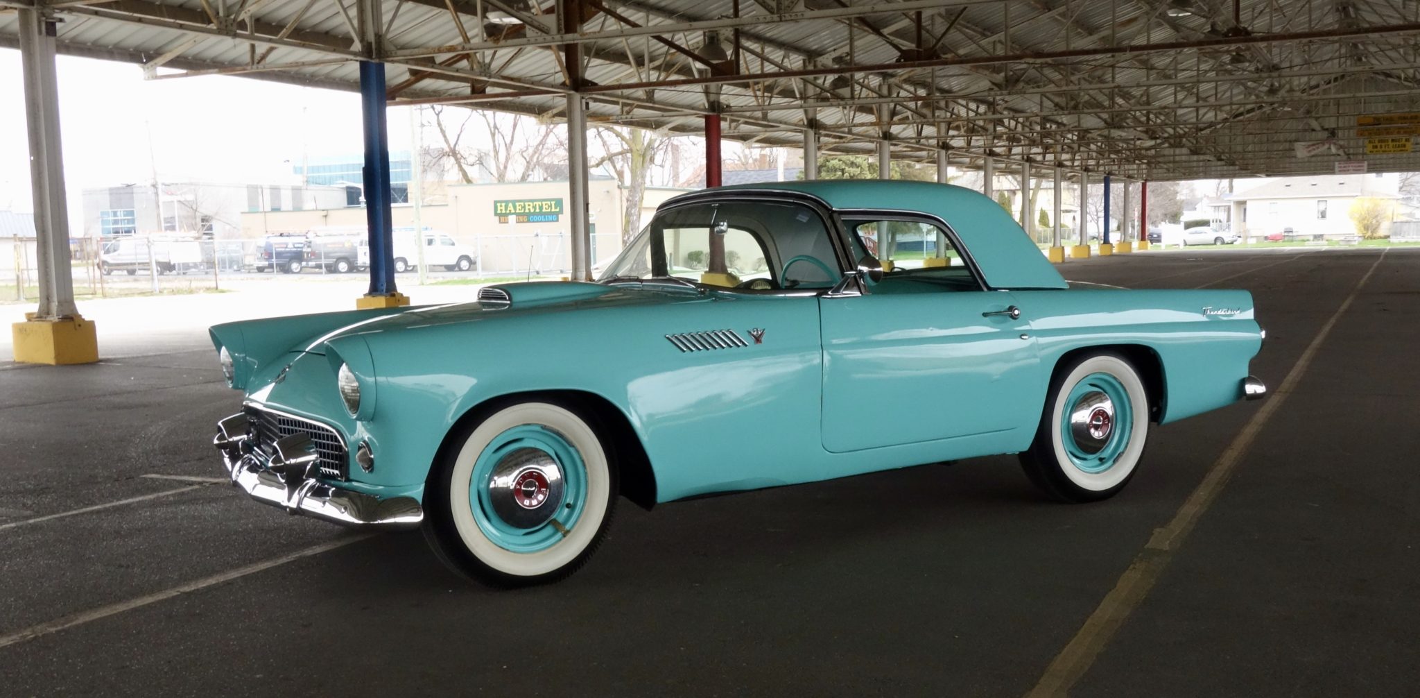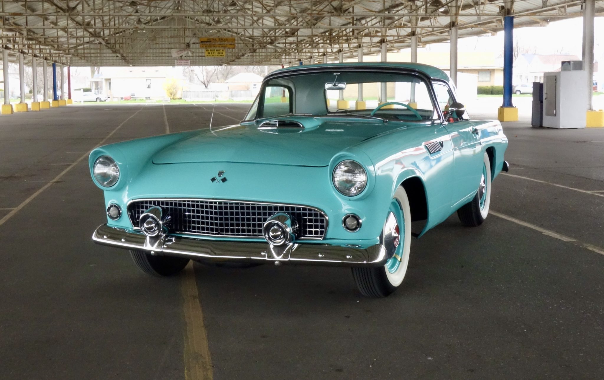 Body-colored 15″ steel wheels wear chrome hubcaps and Denman Deluxe bias-ply whitewall tires. Dual exhaust pipes exit through the rear bumperettes. An uninstalled white soft top with a vinyl backlight is included in the sale and pictured in the gallery below, as are sets of wire wheel covers and rear fender skirts. The turn signals are inoperative.
