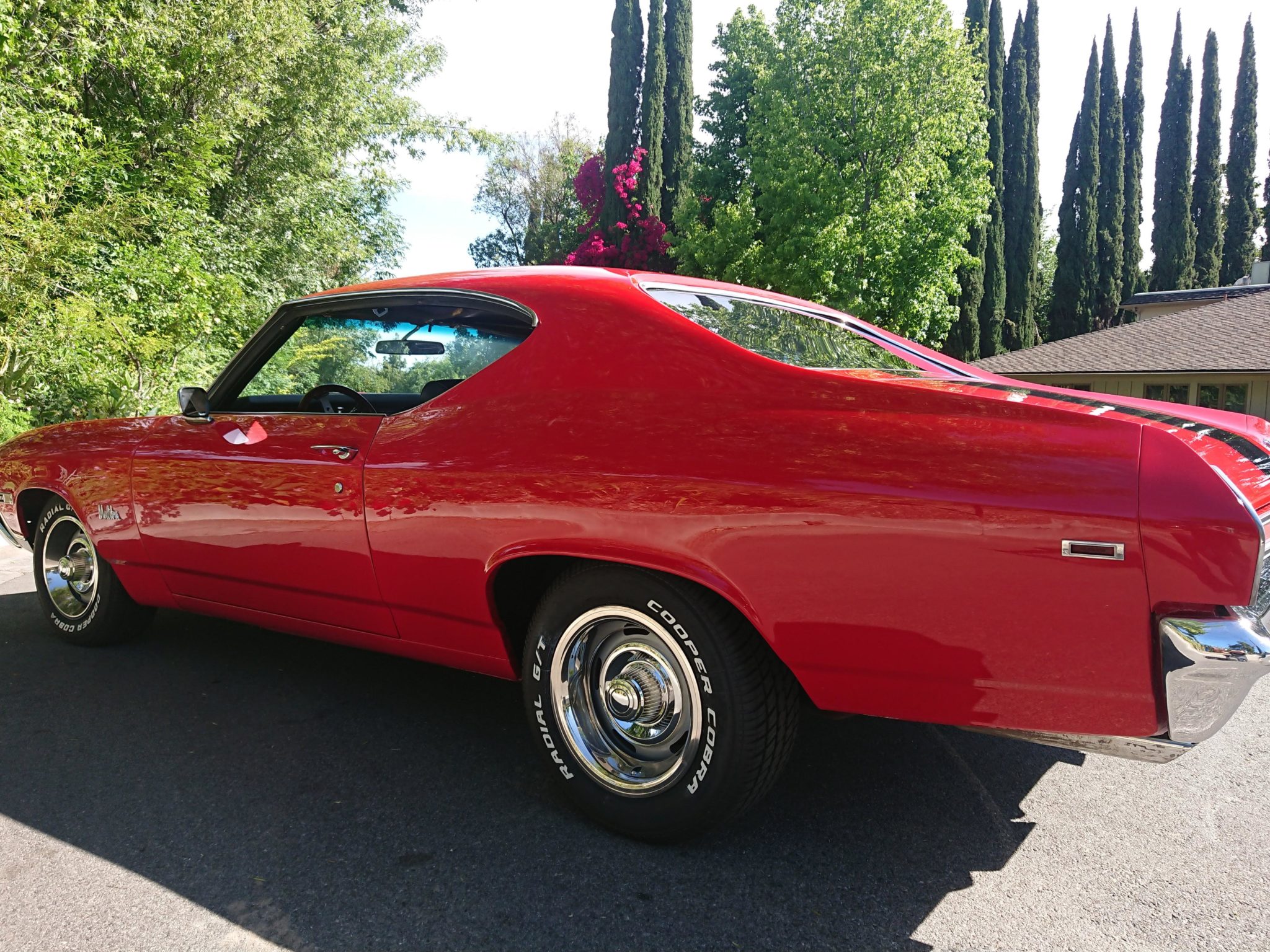 15″ Rallye-style wheels and 215/70 front and 235/60 rear Cooper Cobra Radial R/T tires were installed in February 2020. The seller reports that the front brake pads were recently replaced.