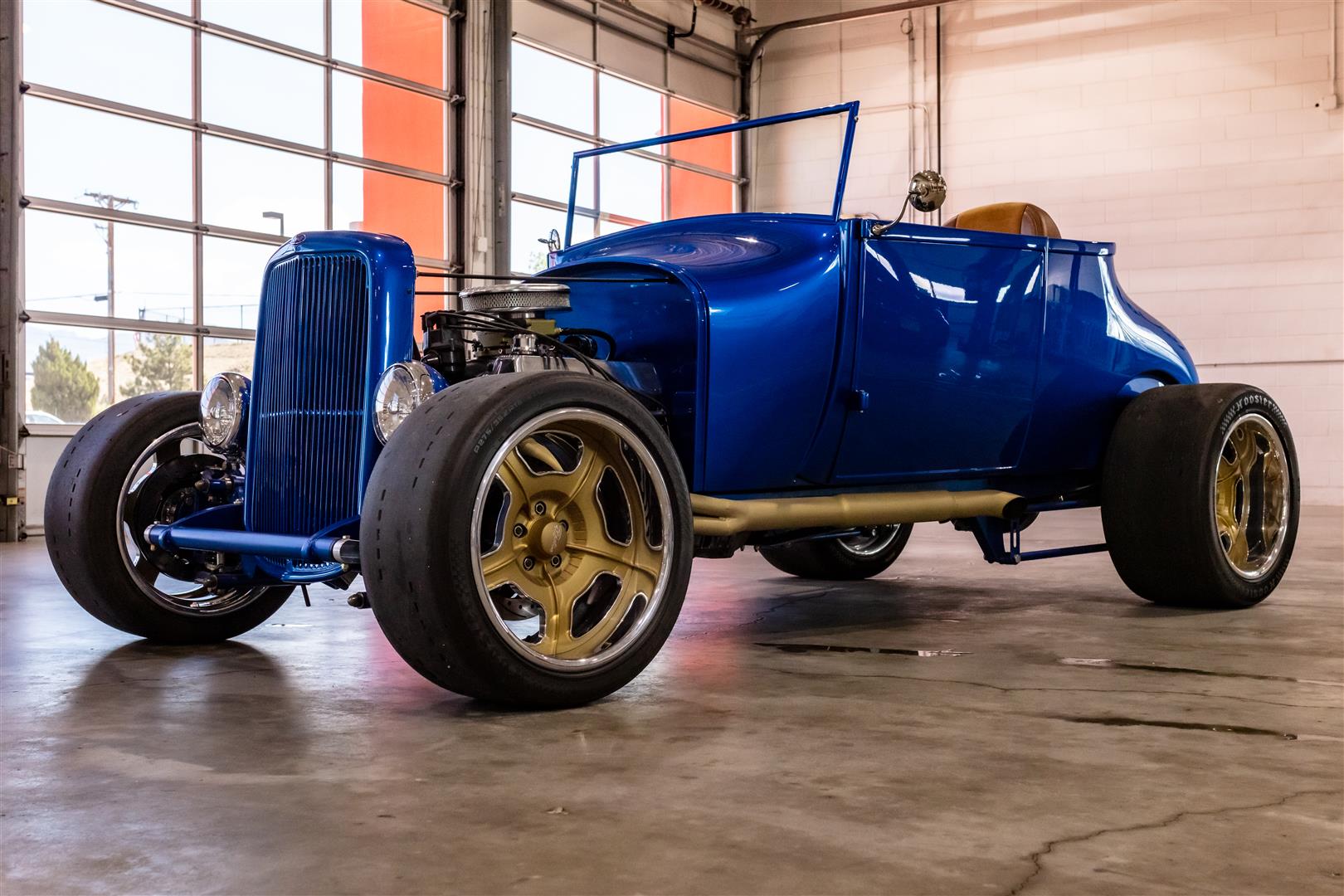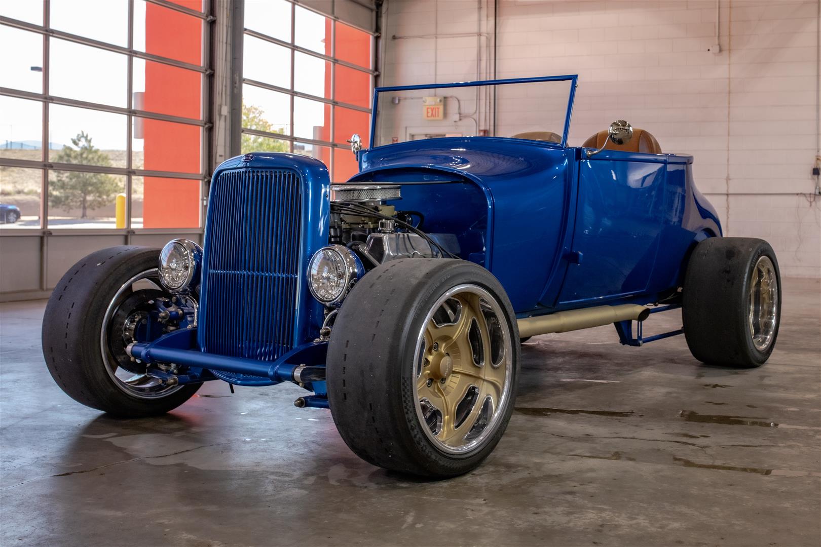 Gold 18″ Raceline wheels feature polished barrels and are mounted with Hoosier slick tires measuring 275/35 up front and 315/40 out back. The independent front suspension features damping- and height-adjustable coilovers as well as a sway bar, while the live rear axle is located by a four-link setup with a Panhard bar. Braking is handled by six-piston front and four-piston rear Wilwood calipers with vented discs and an E-Stop emergency brake.