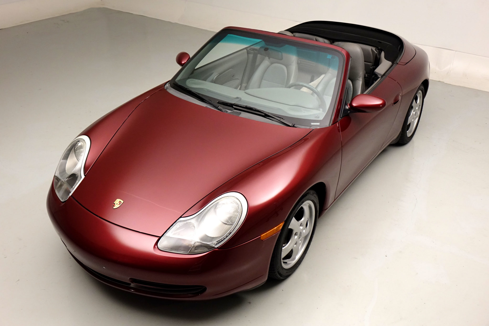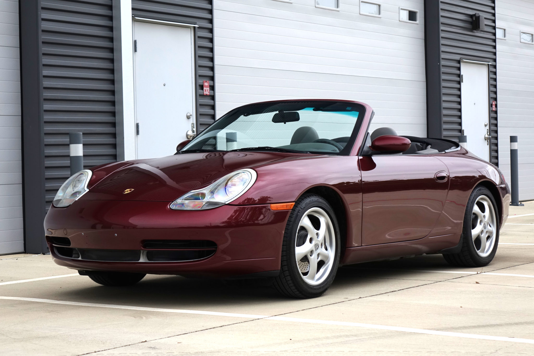 Factory staggered-width 17″ wheels wear Michelin Pilot Sport tires which are said to have been mounted 2k miles ago. A color-matched hardtop will reportedly accompany the car, though is not pictured in gallery photographs.