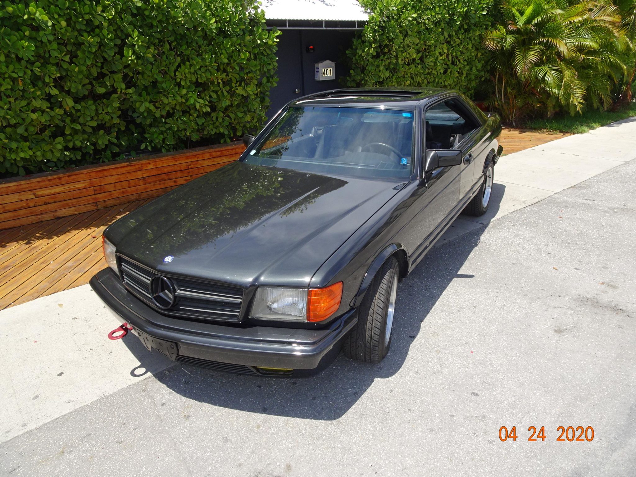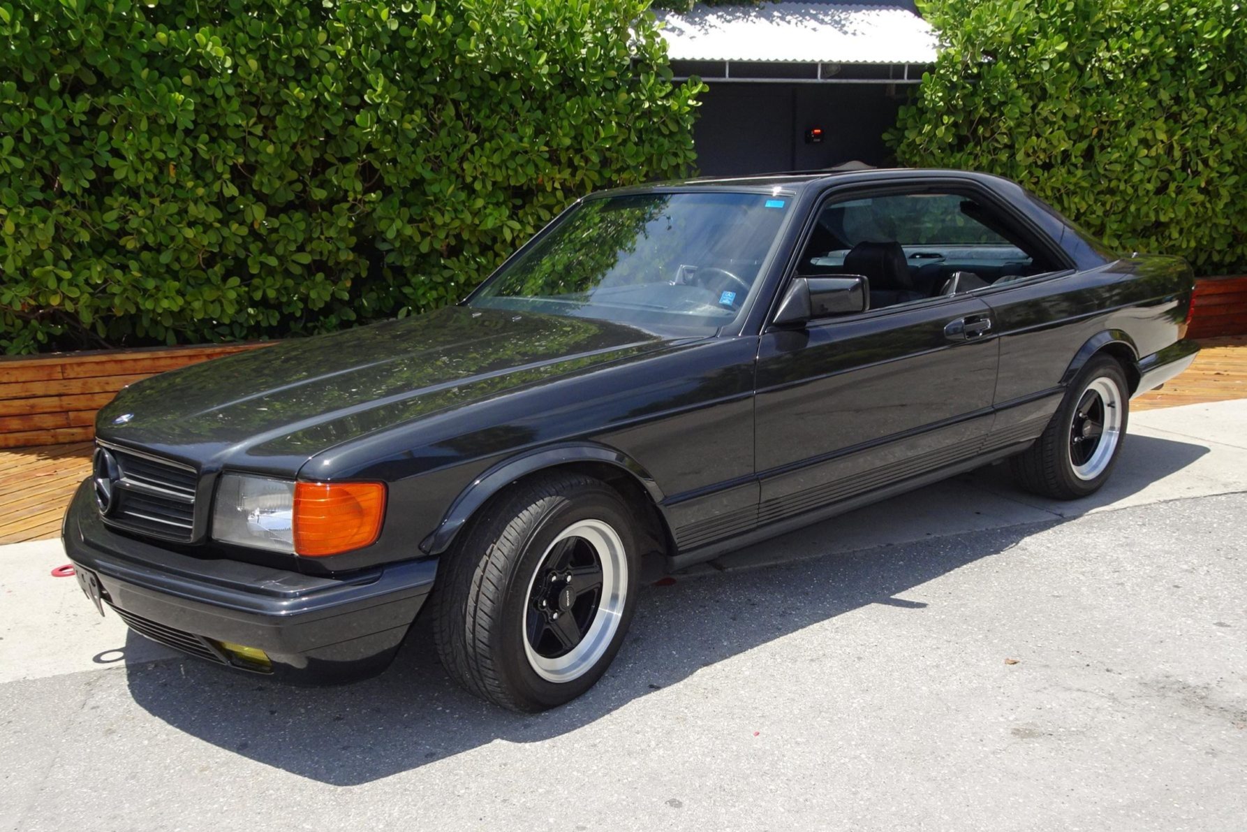 16″ AMG Penta wheels with black centers are wrapped in Yokohama AVID ENVigor tires that show 2018 date codes. The self-leveling rear suspension has been retained, and braking is handled by four-wheel disc brakes with ABS.