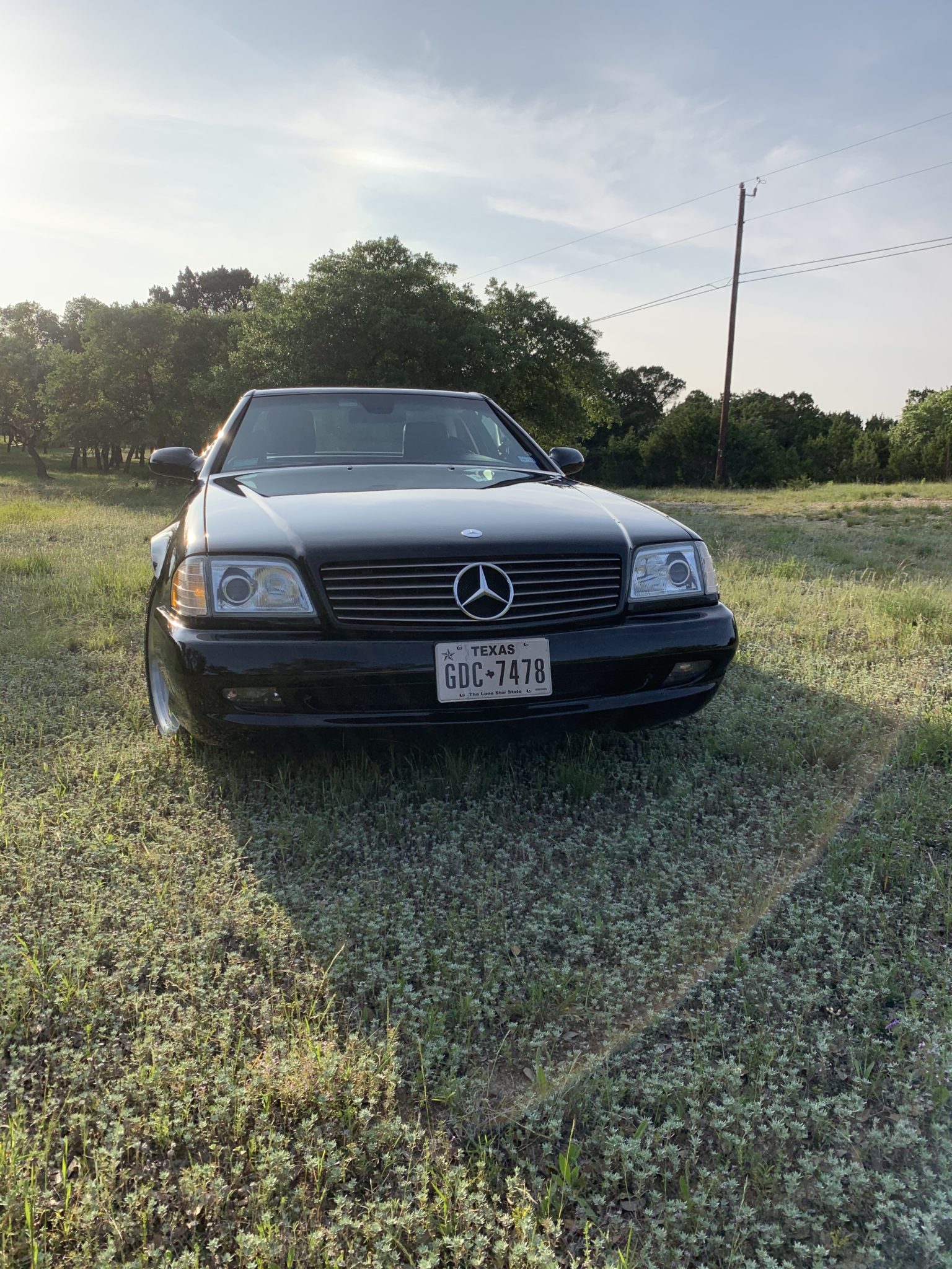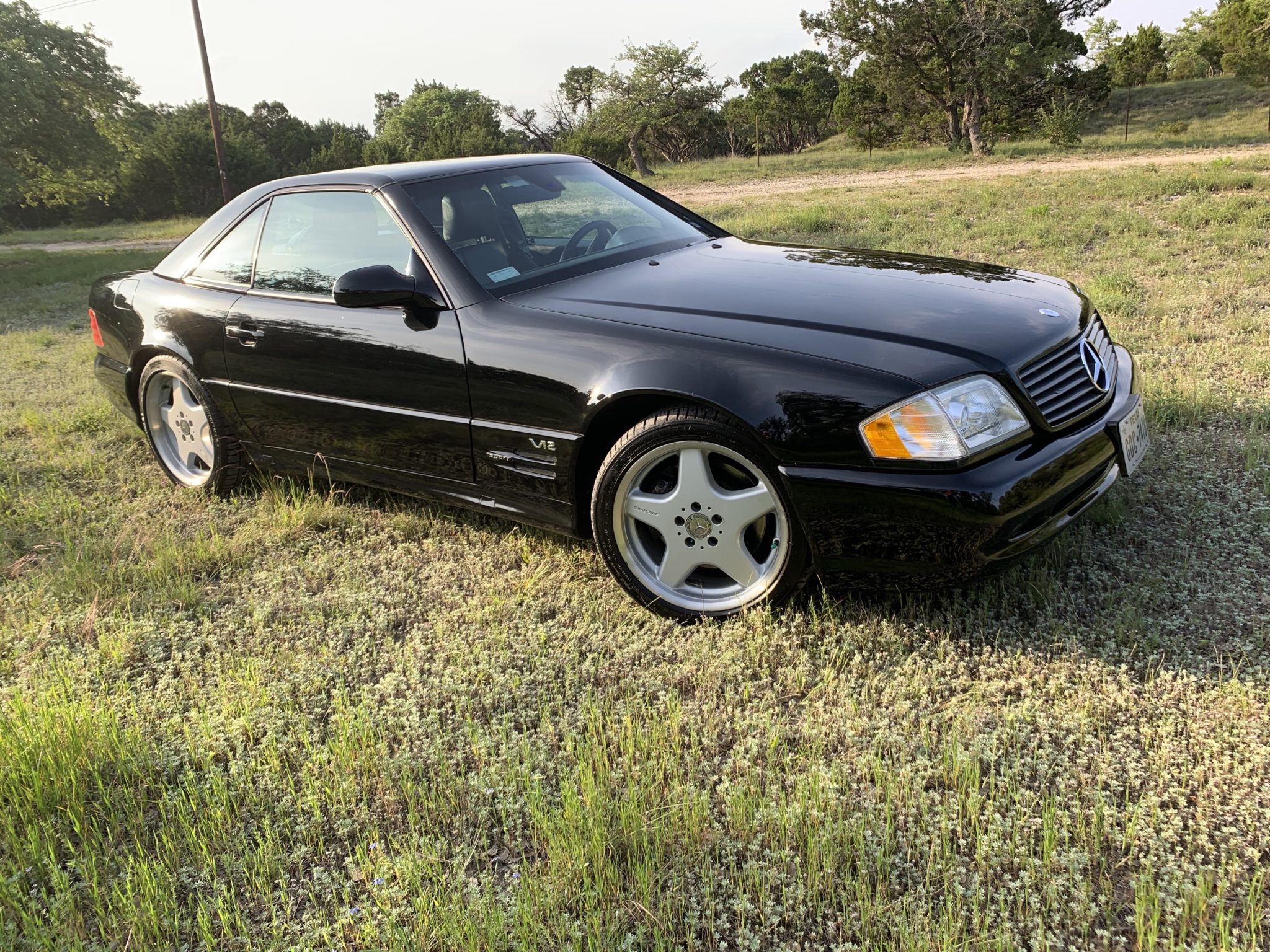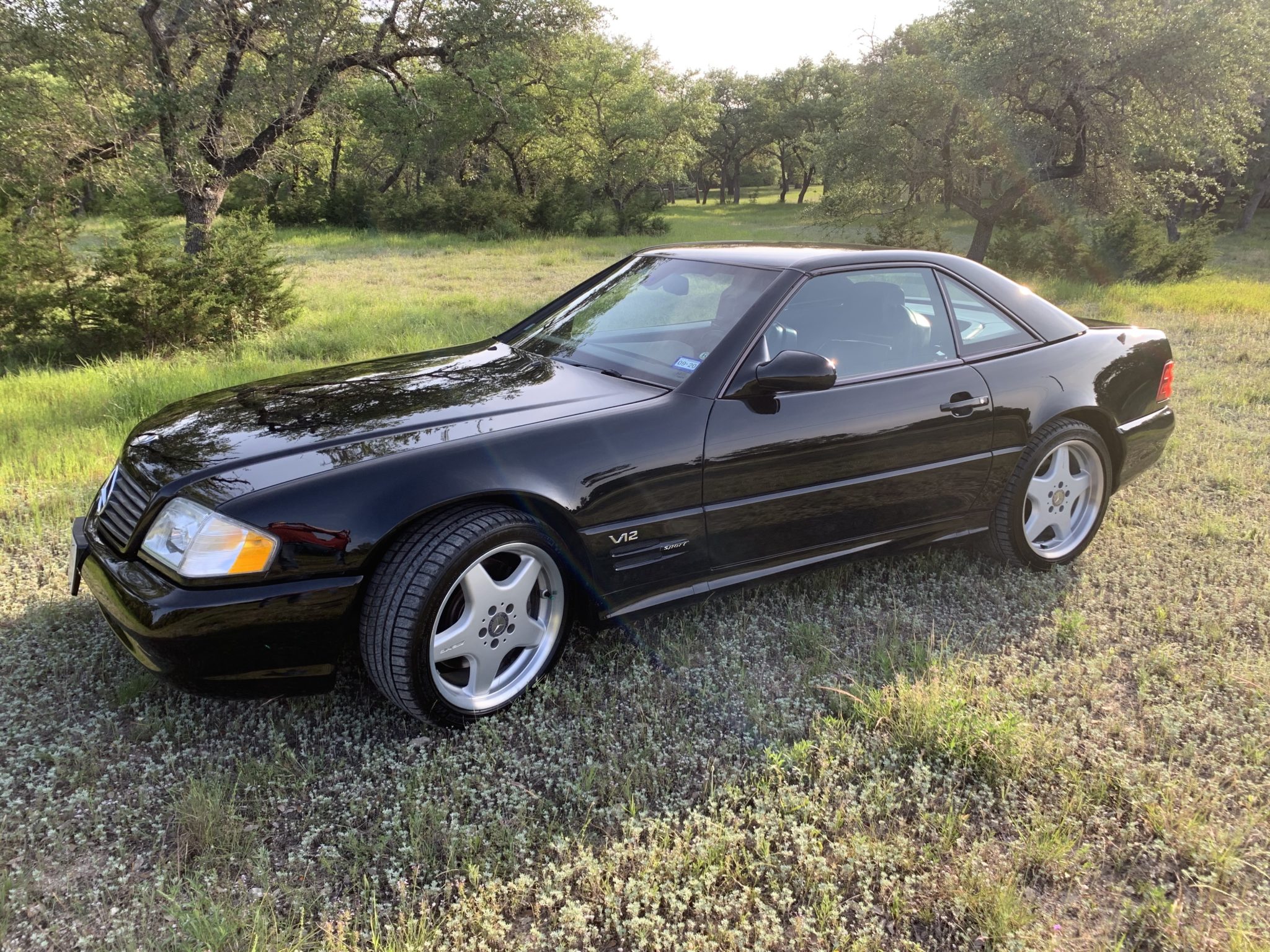 18″ five-spoke AMG wheels are fitted with Michelin Pilot Sport A/S 3+ tires measuring 245/40 up front and 275/35 out back. The car is equipped with electronic stability control and a spare tire mounted in the trunk. The convertible soft top is shown opening and closing, and the seller notes that the convertible top hydraulic cylinders have been rebuilt.