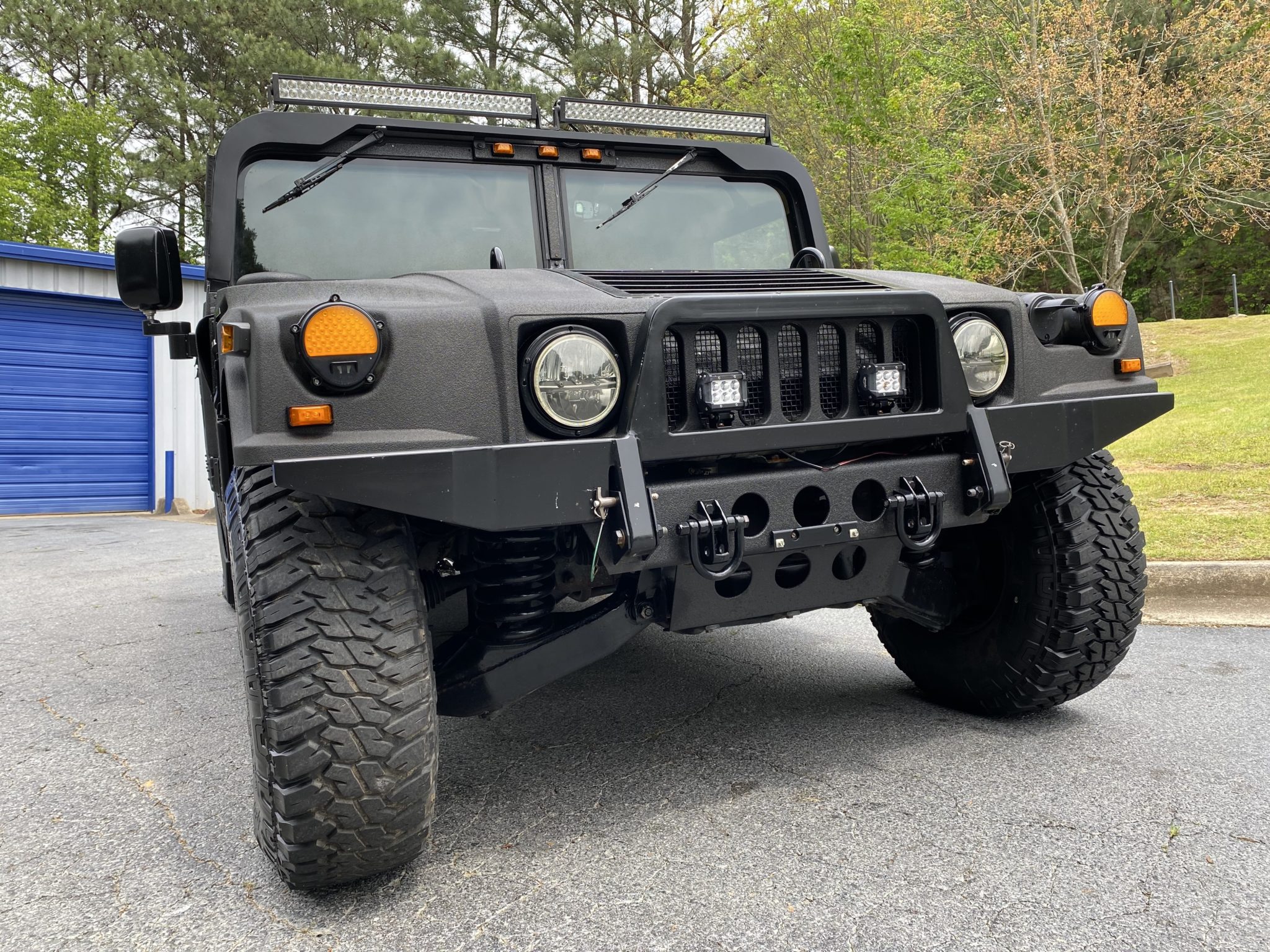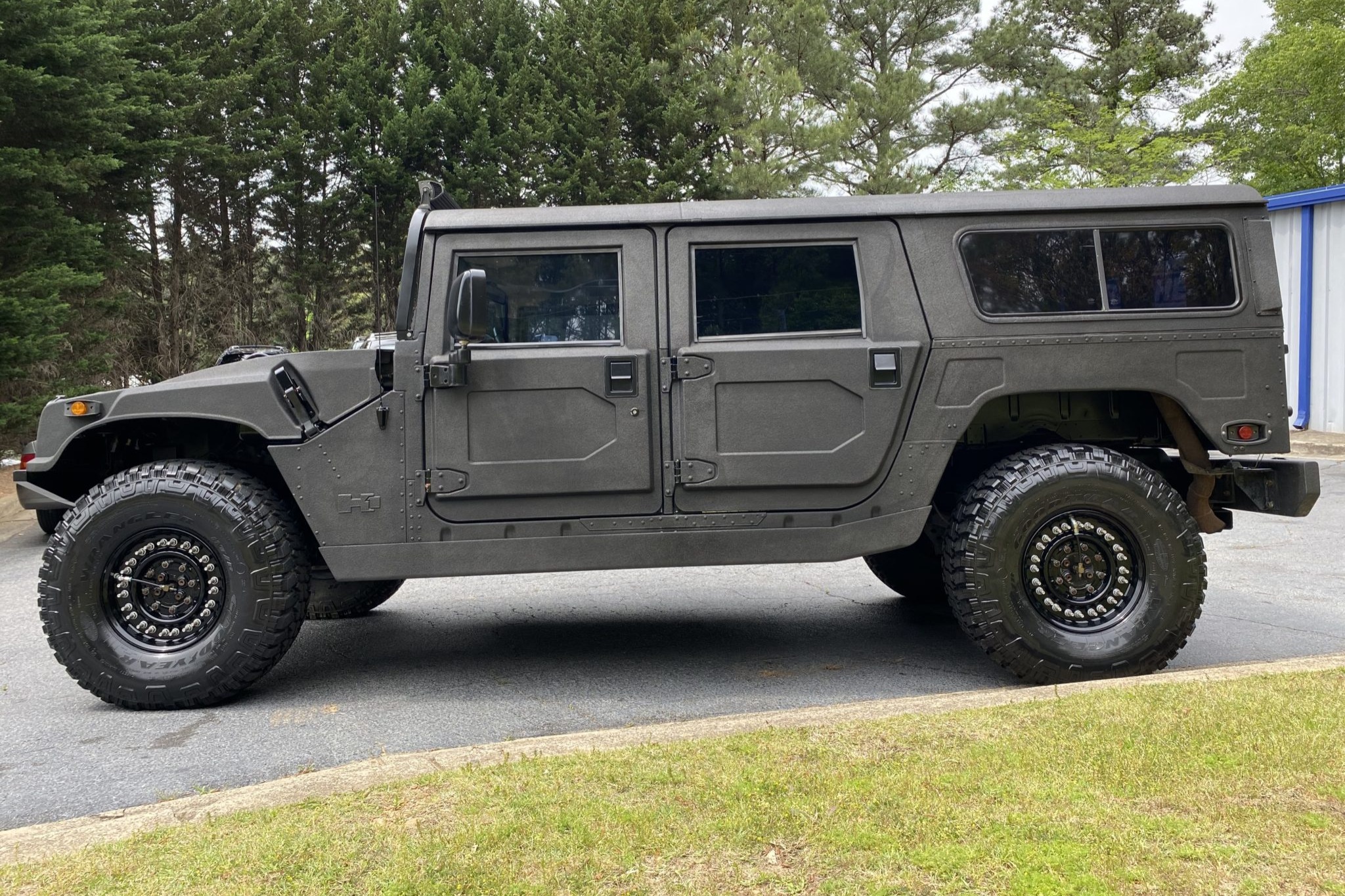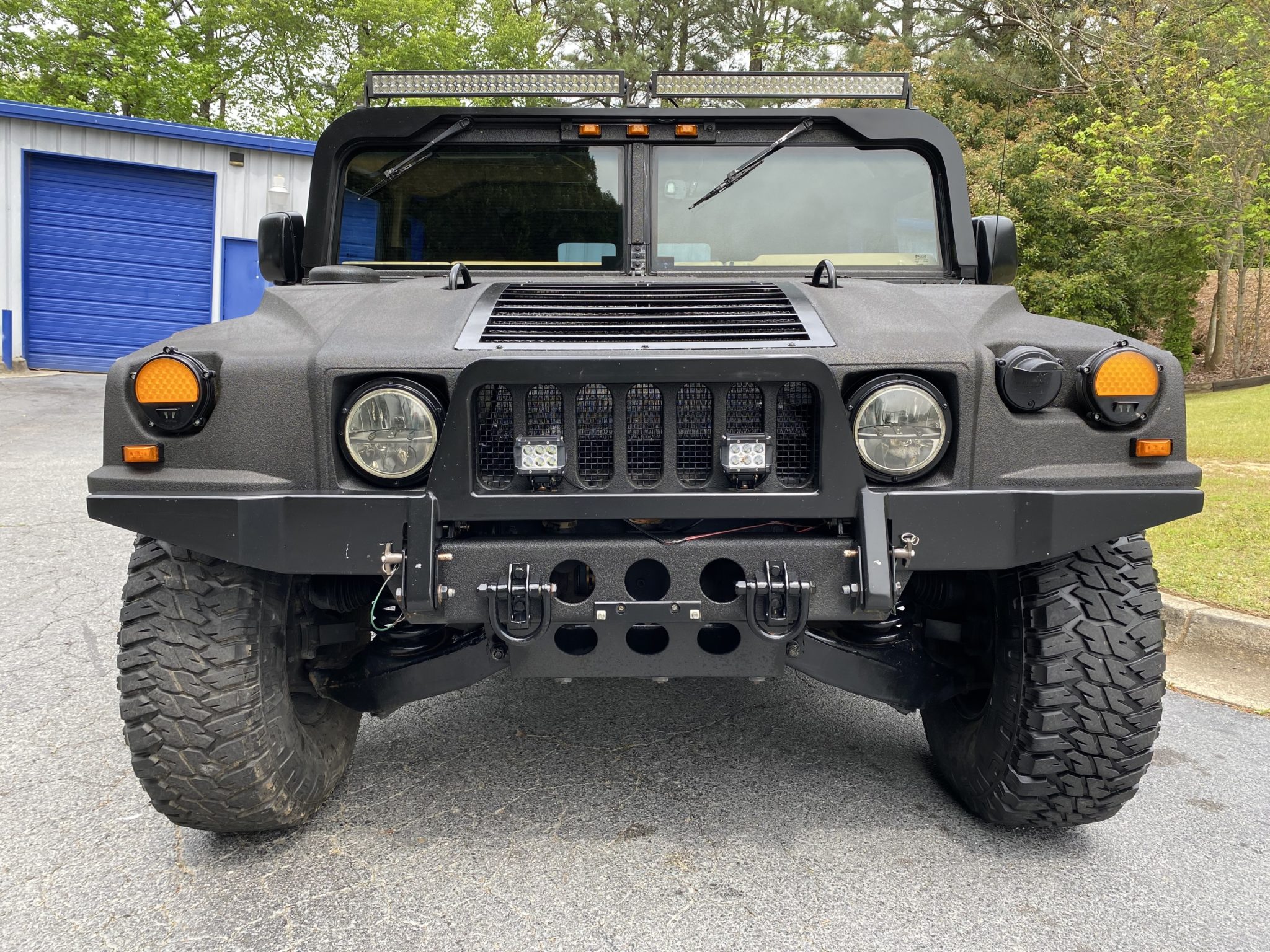 Black steel eight-lug 16″ wheels with 24-bolt beadlocks wear 37″x12.5″ Goodyear Wrangler mud-terrain tires showing 2008 and 2009 date codes. The truck is equipped with a central tire inflation system. Brake work in April 2020 is said to have included replacement of the rotors and pads as well as a single rear caliper.
