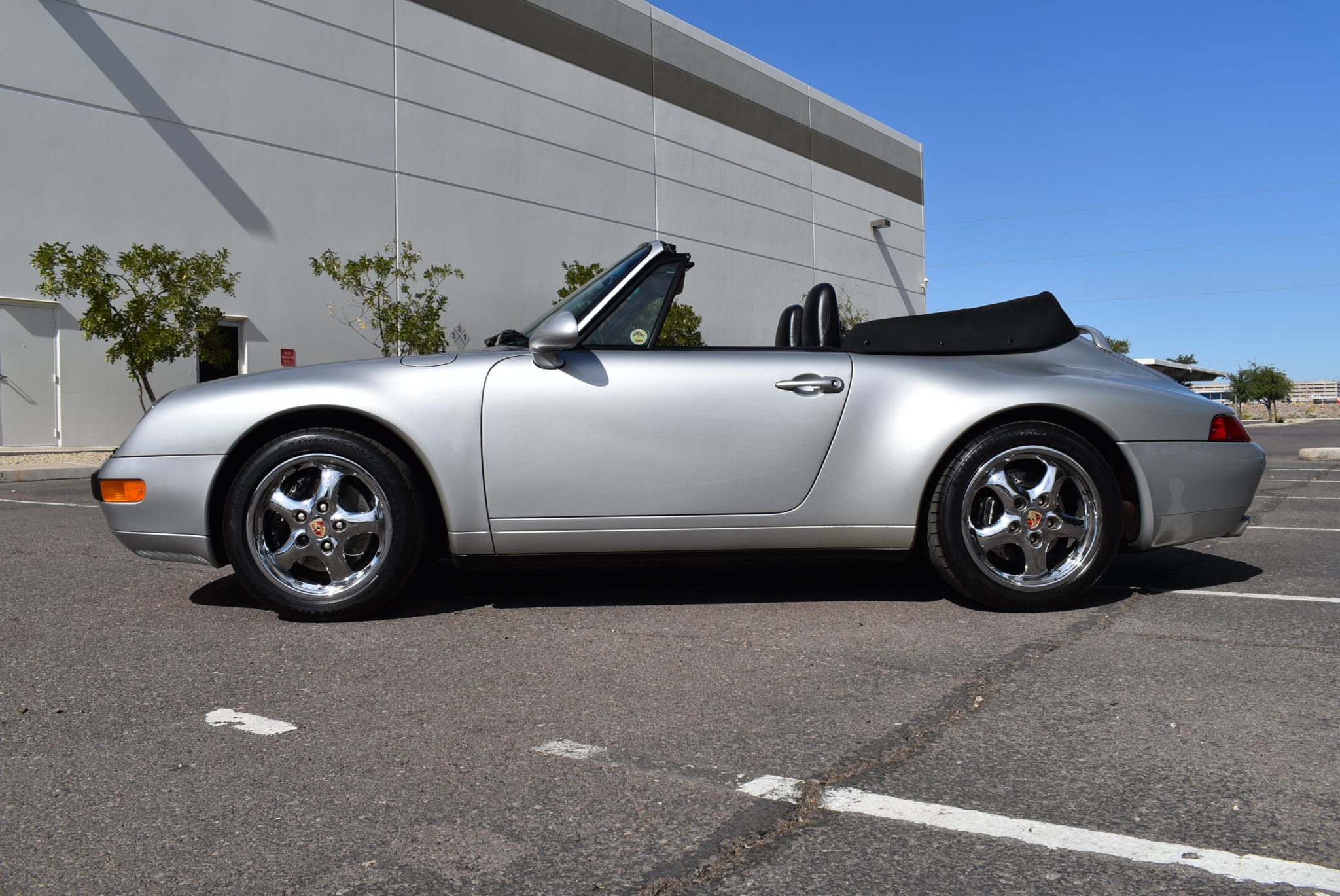 Equipment includes Litronic headlights with washers, fog lights, and a basket-handle rear spoiler with an integrated brake light. Chrome 17″ Cup 2 wheels wear colored Porsche-crest center caps and Continental ExtremeContact Sport tires.