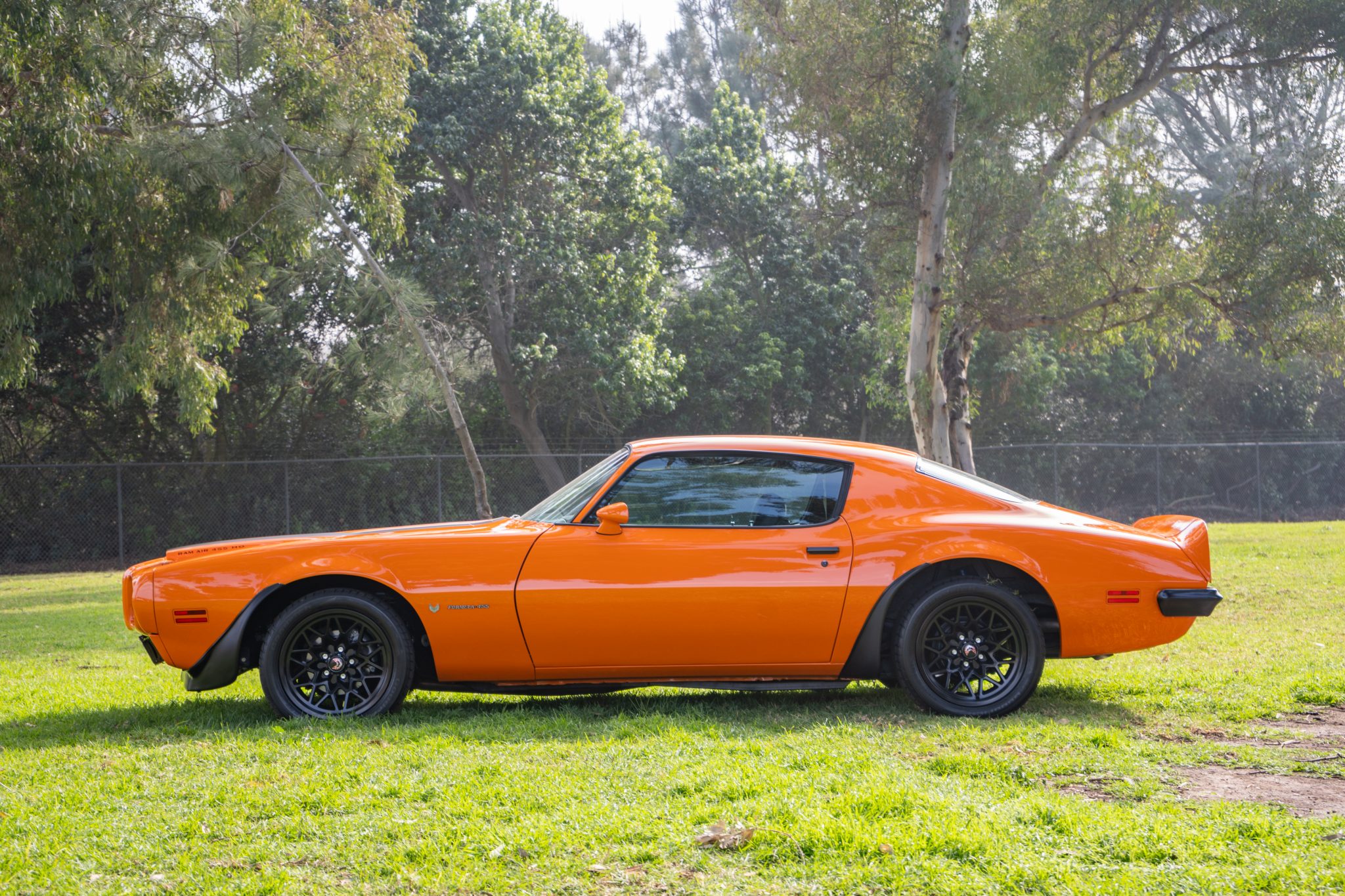 Black 17″ wheels with Firebird center caps are wrapped in 275/40 BFGoodrich g-Force Sport tires displaying 2011 date codes. Disc brakes are fitted up front, with drums at the rear.